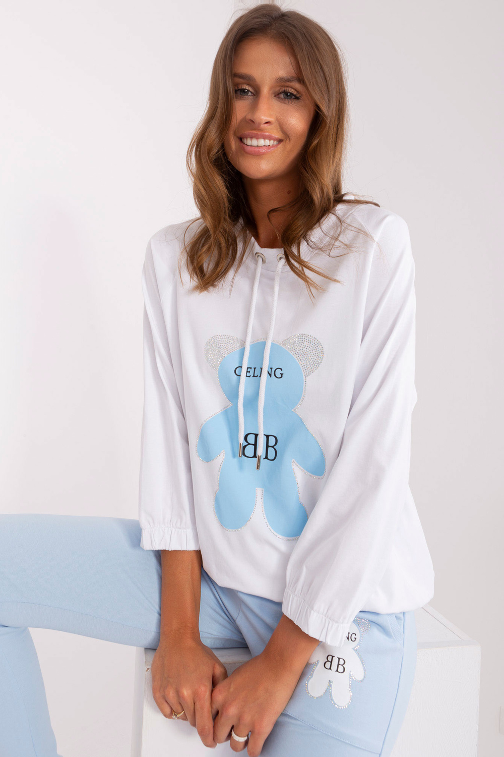 - Modelis dėvi S/M dydį. Modelio išmatavimai: ūgis 176 cm, krūtinė 85 cm, juosmuo 64 cm, klubai 92 cm