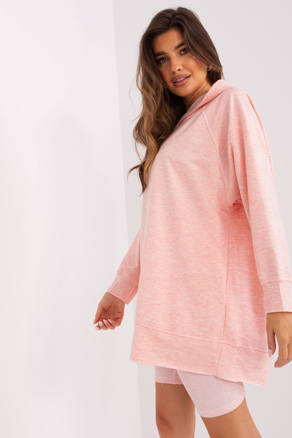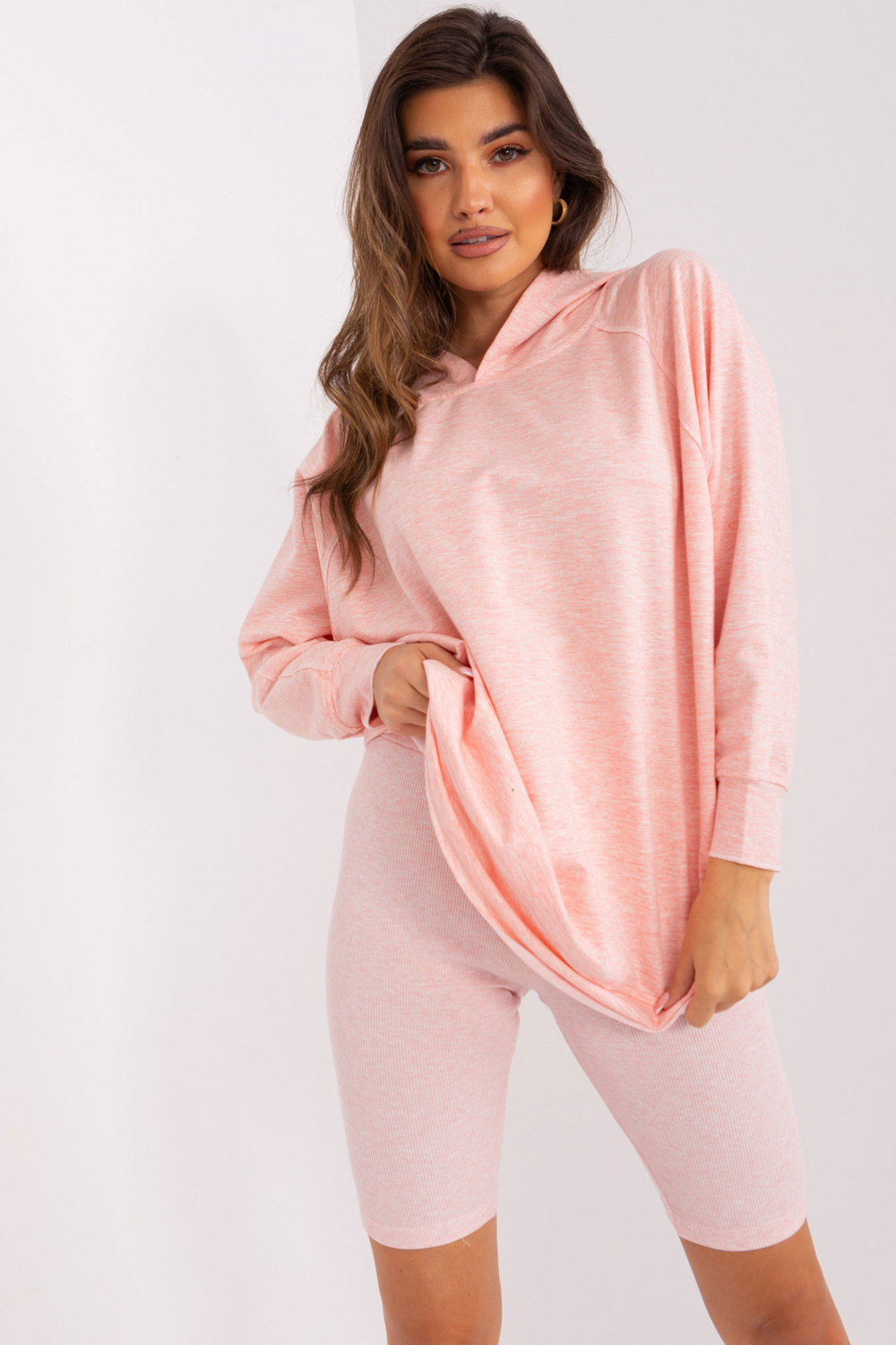 Komplekto matmenys vieno dydžio, matuojamas plokščias: plotis po pažastimis - 64 cm, rankovių ilgis - 56 cm, megztinio ilgis - 78 cm, juosmens plotis - 32 cm, dviratininko ilgis - 50 cm.