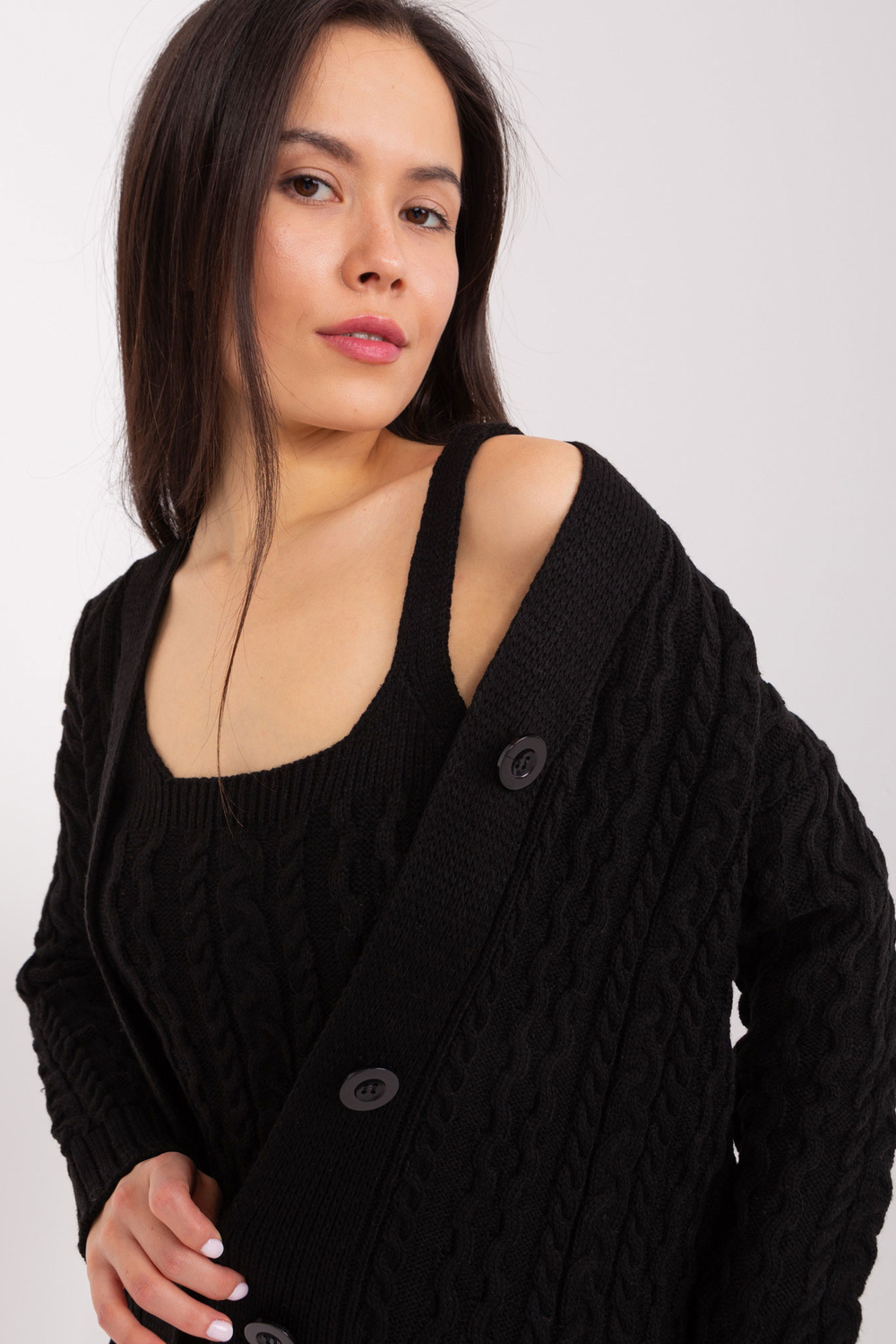 Merztinio matmenys vieno dydžio, matuojamas plokščias: viršutinės dalies plotis apačioje rankos - 45 cm, viršutinės dalies ilgis - 55 cm, megztinio plotis po pažastimis - 60 cm, rankovių ilgis - 60 cm, megztinio ilgis - 59 cm.
