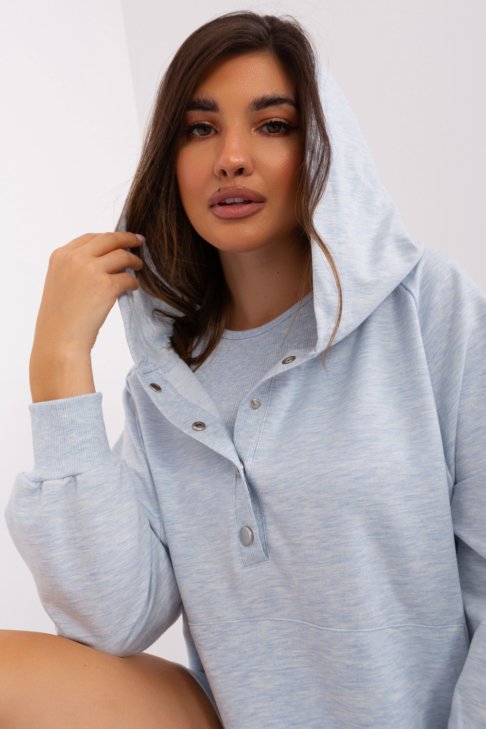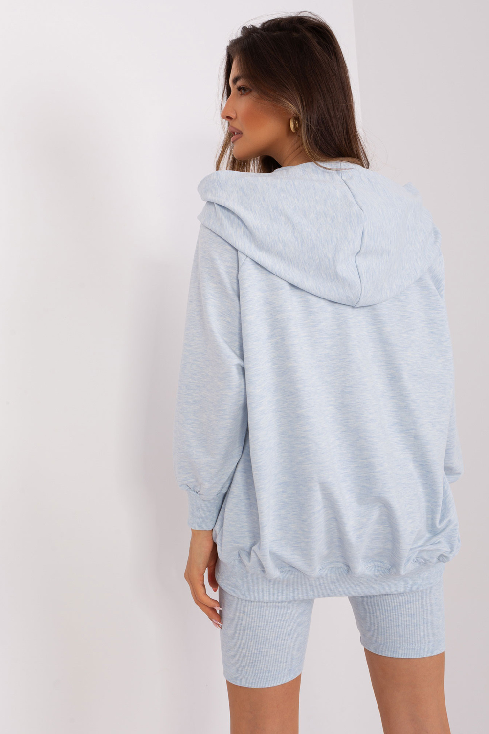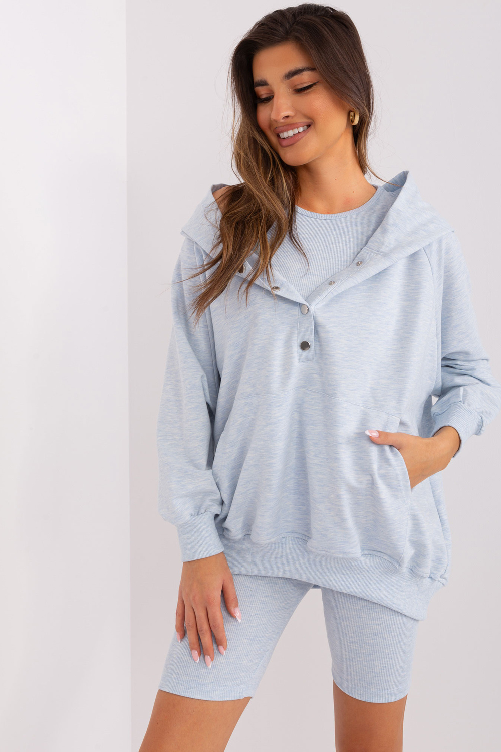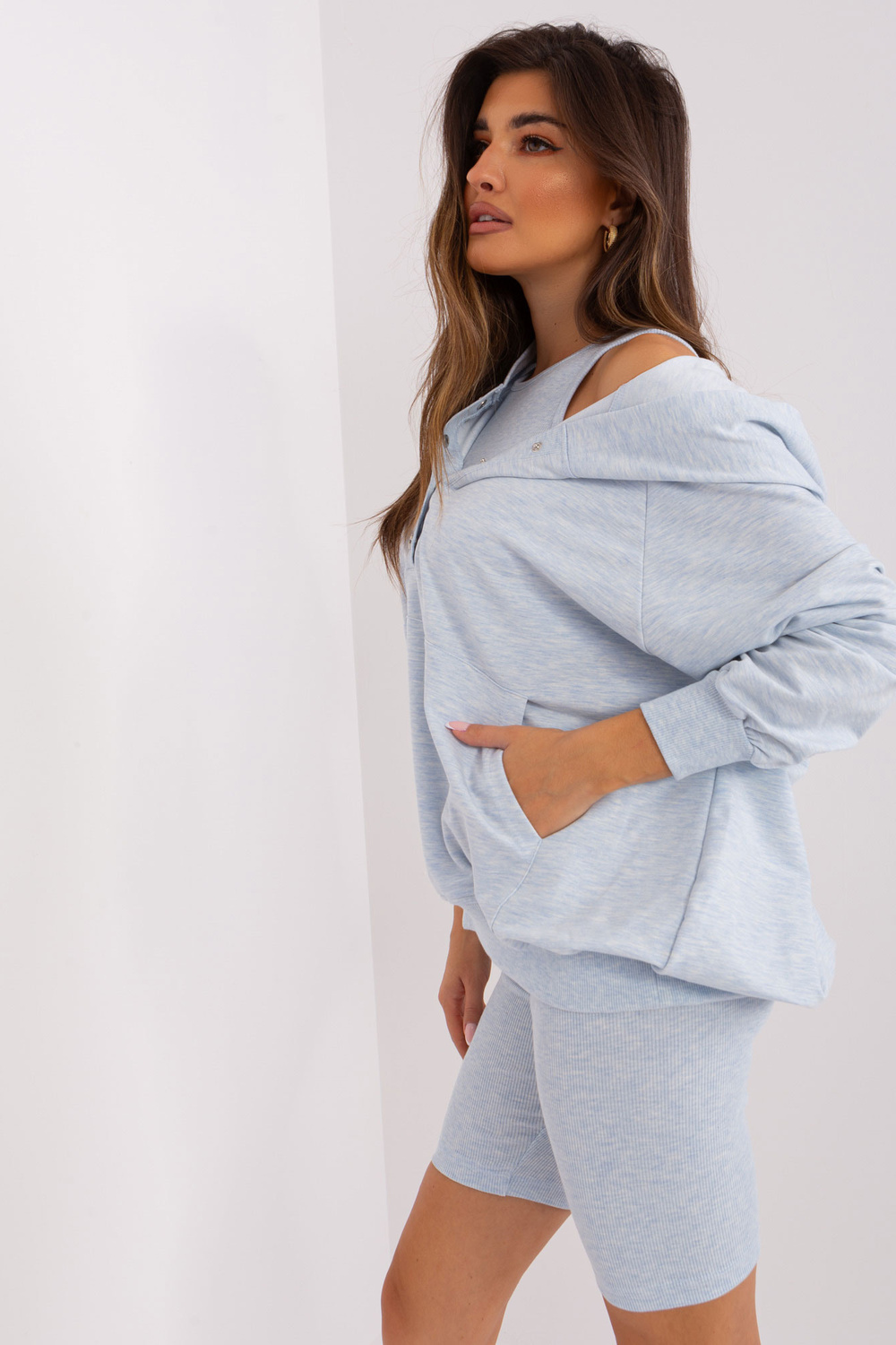 Komplekto matmenys vieno dydžio, matuojamas plokščias: megztinio plotis po apačia rankos - 65 cm, rankovių ilgis - 59 cm, megztinio ilgis - 63 cm, viršaus plotis po pažastimis - 29 cm, viršaus ilgis - 42 cm, juosmens plotis - 29 cm, dviratininko ilgis - 47 cm.