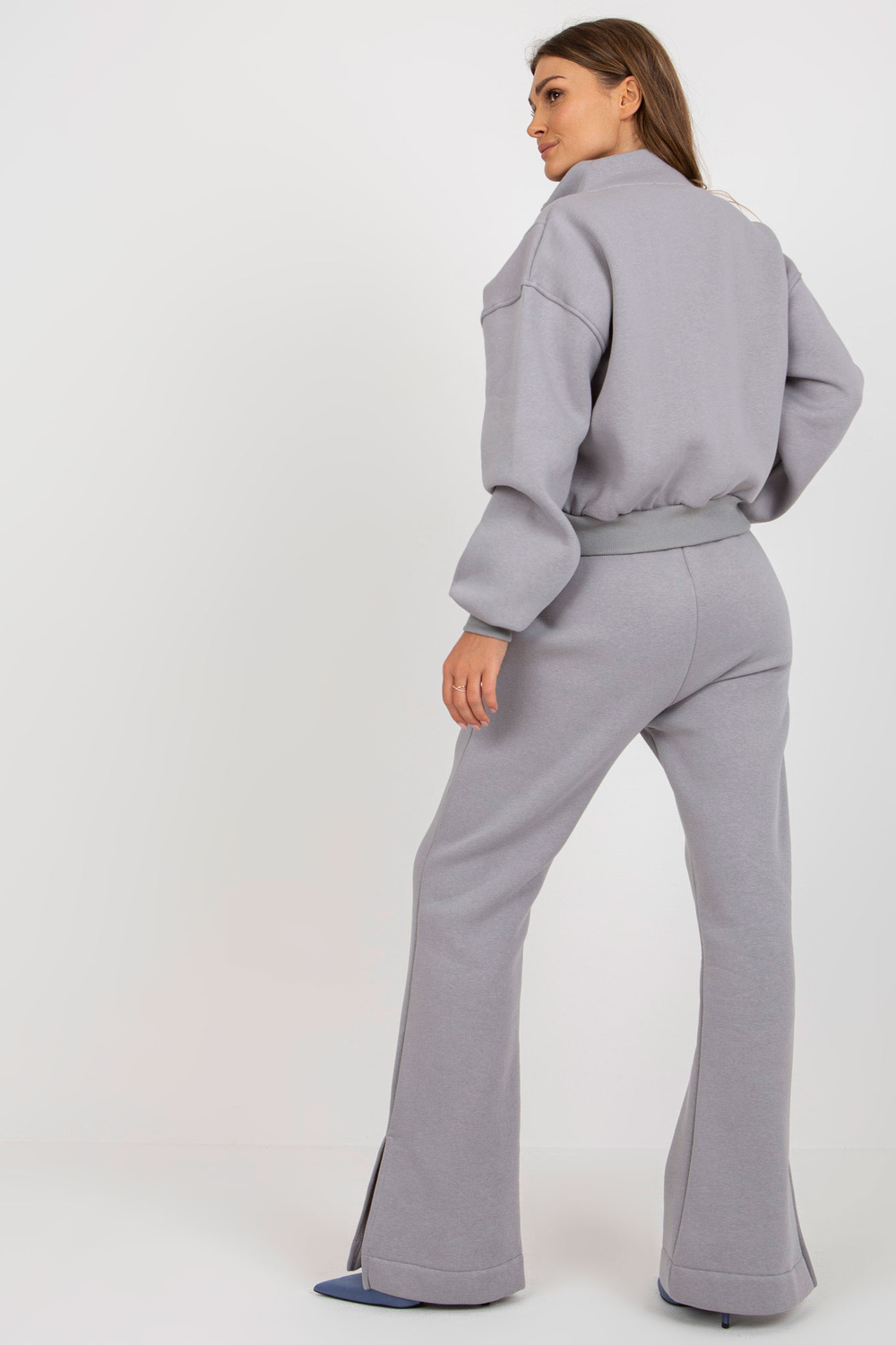 Komplekto matmenys vieno dydžio, matuojamas plokščias: megztinio plotis po apačia rankos - 60 cm, rankovių ilgis - 66 cm, megztinio ilgis - 58 cm, kelnių juosmens plotis - 35 cm, juosmens aukštis - 34 cm, kelnių ilgis - 107 cm.