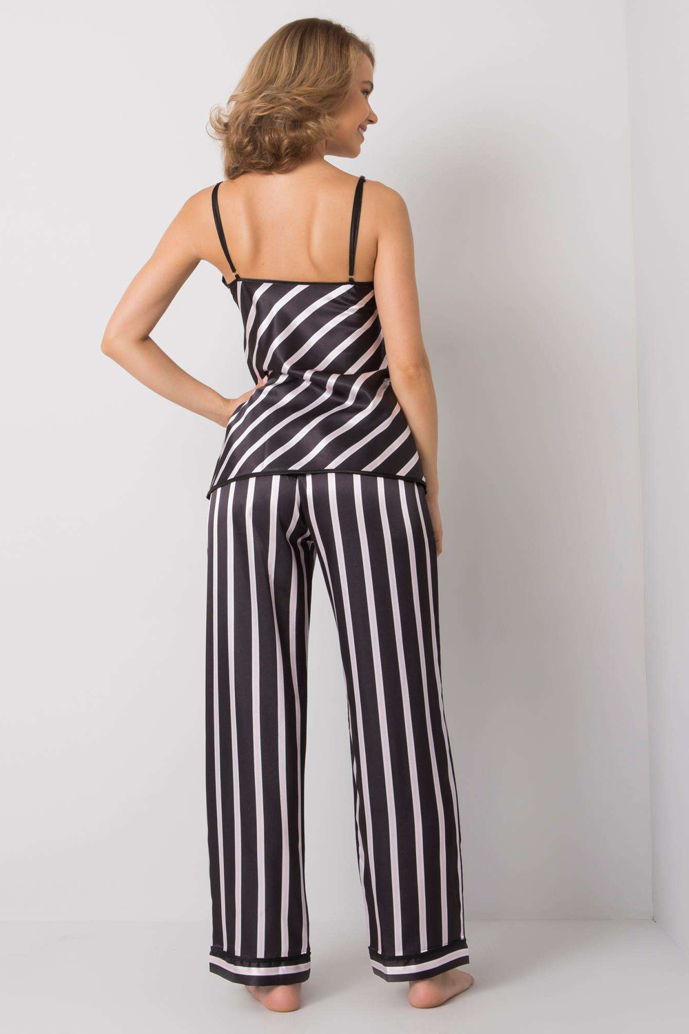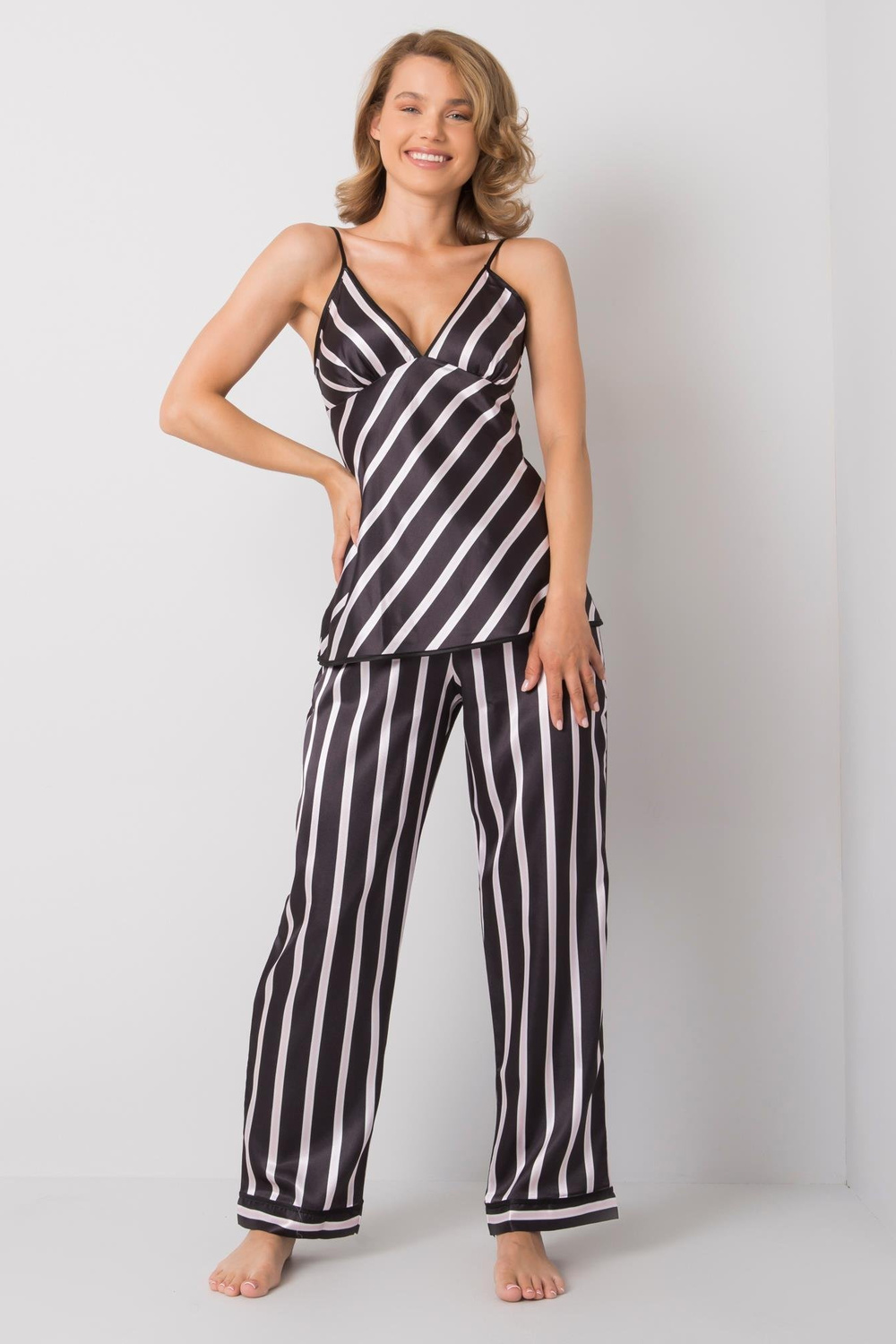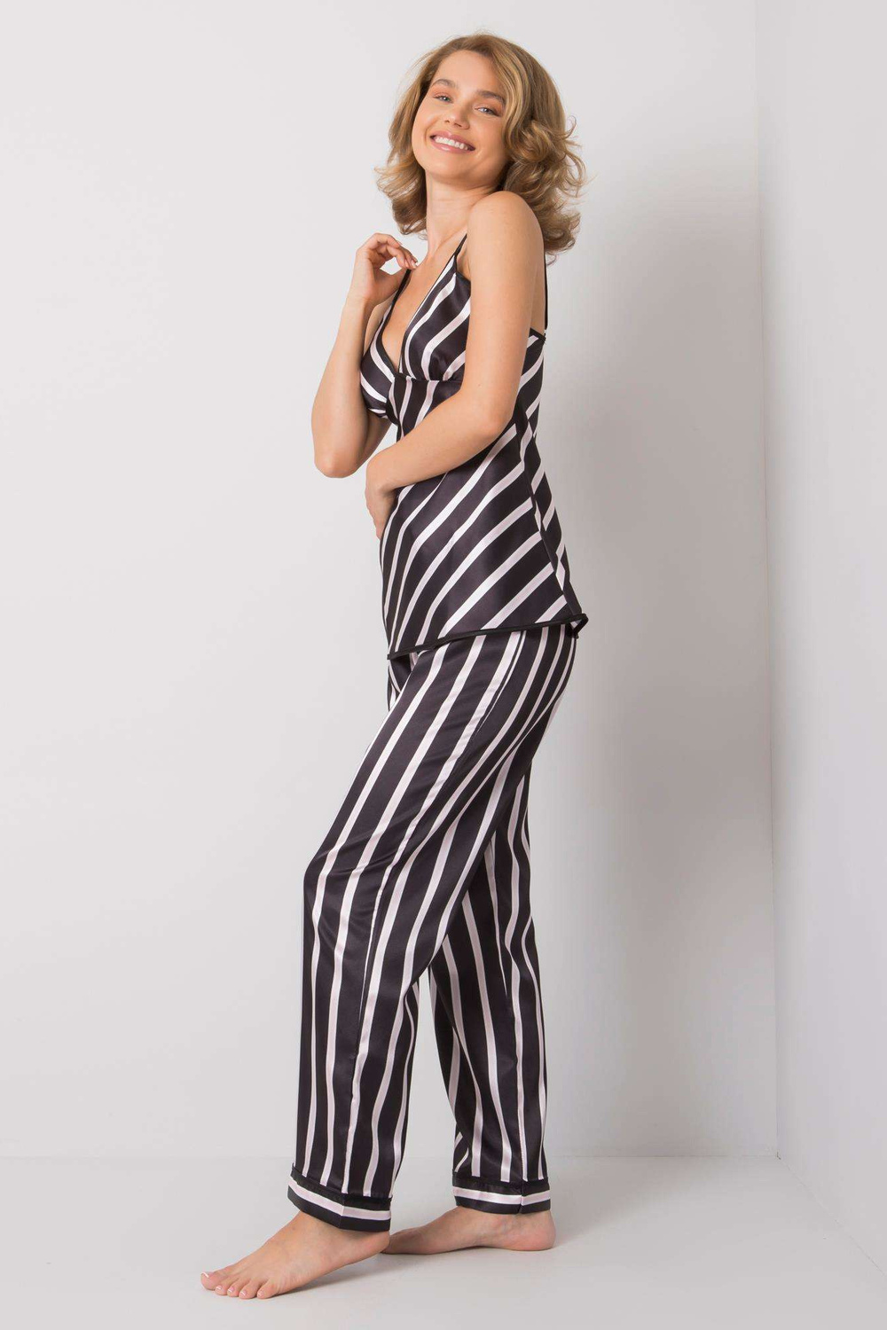 Juodų juostų lovos komplektas. į komplektą įeina: kelnės, viršus, lovatiesė, raištis akims Medžiaga: 100% poliesteris skalbimo būdas: skalbimas skalbimo mašinoje 30°C. Modelis dėvi S dydį. Modelio išmatavimai: aukštis 170 cm, krūtinė 89 cm, juosmuo 59 cm, klubai 85,5 cm.< /div>