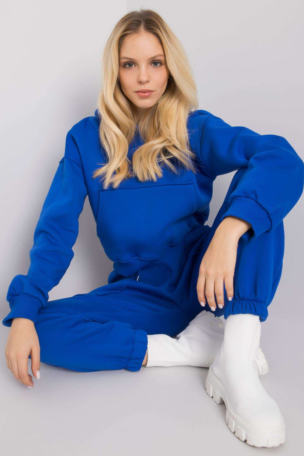 Tamsiai mėlynos spalvos medvilninio sportinio kostiumo komplektas Solange. Į šį rinkinį įeina: megztinis, kelnių medžiagasudėtis: 70% medvilnė, 30% poliesteris skalbimo būdas: skalbimas mašinoje 30°C Gaminio kodas: EM-KMPL-699.14 dominuojantis raštas: be rašto Stilius: kasdienis, megztinis progai