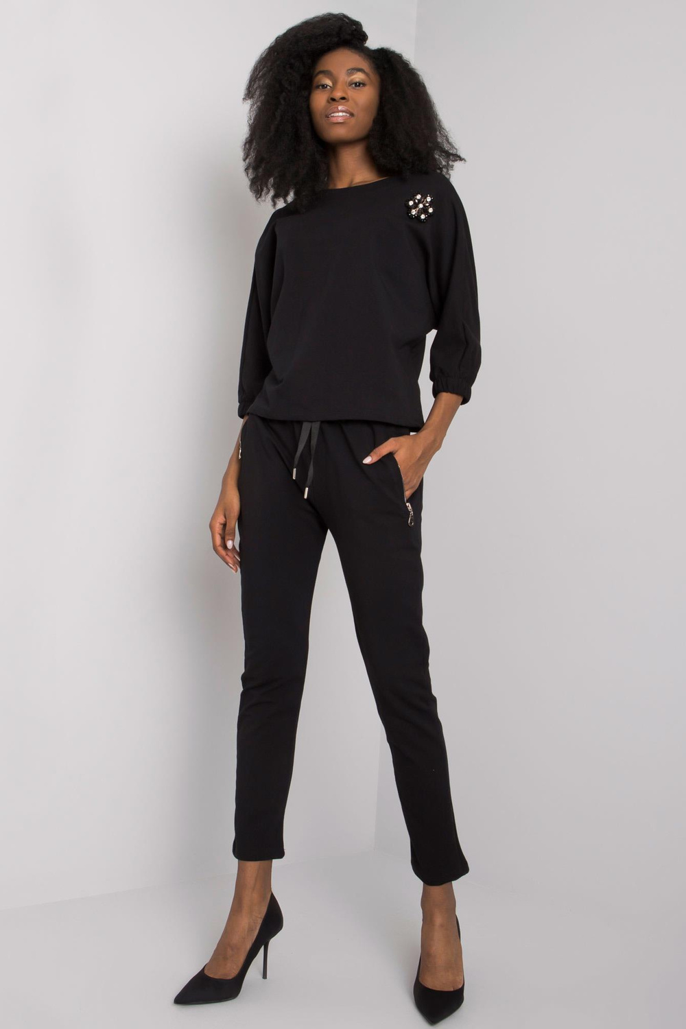 Juodos medvilnės rinkinys su Jane RUE PARIS aplikacijomis. aksesuarai: aplikacijos, kišenės Rinkinį sudaro: megztinis, kelnių medžiagasudėtis: 90% medvilnė, 10% elastanas skalbimo būdas: skalbimas mašinoje 30°C Gaminio kodas: RV-KMPL-7363.25P dominuojantis raštas: be pataisymo