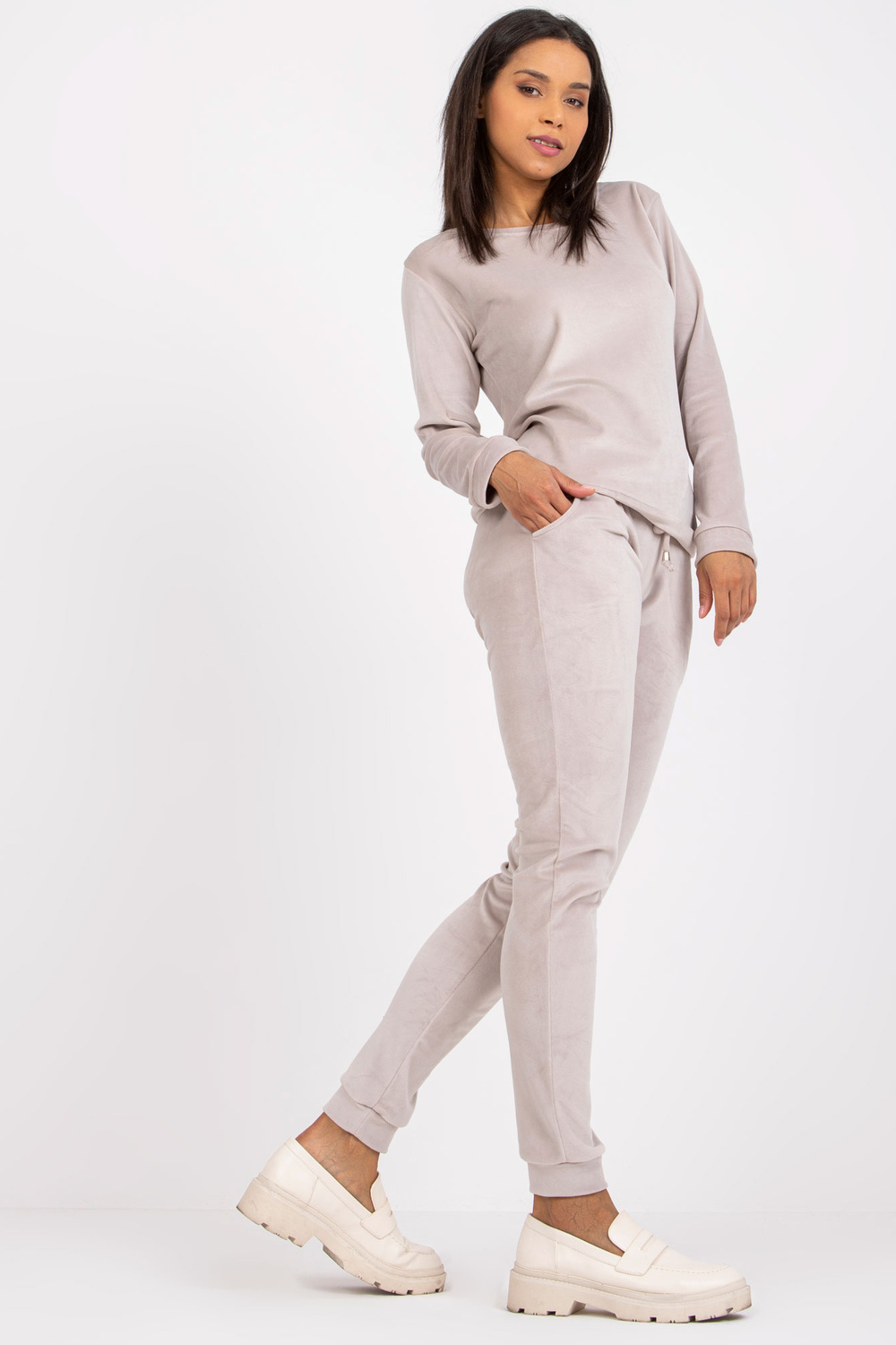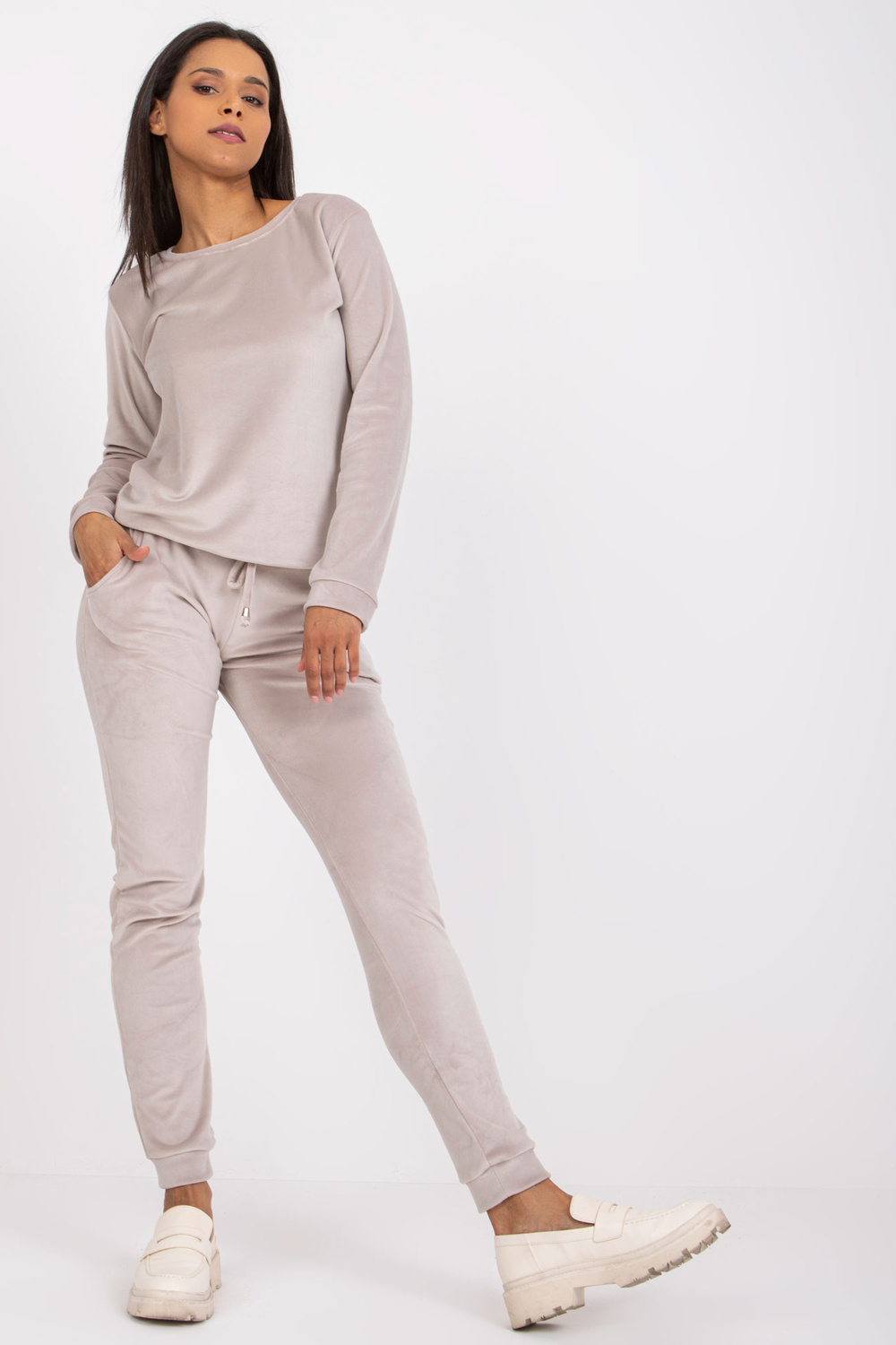 Šviesiai pilkas veliūrinis rinkinys su kišenėmis Clarisa RUE PARIS .
