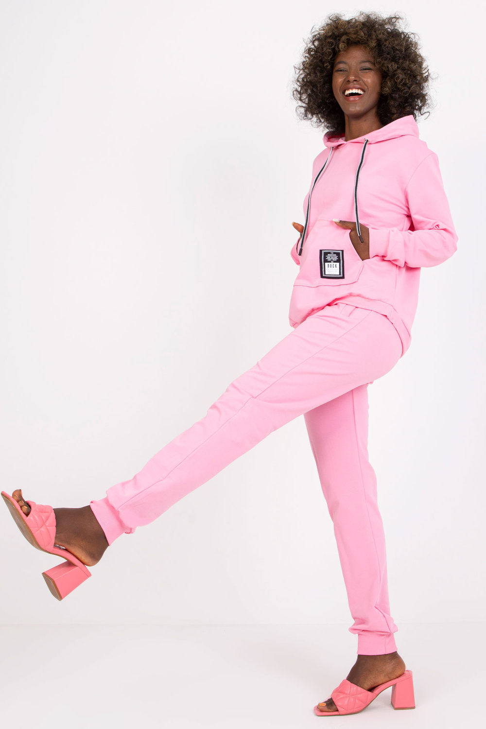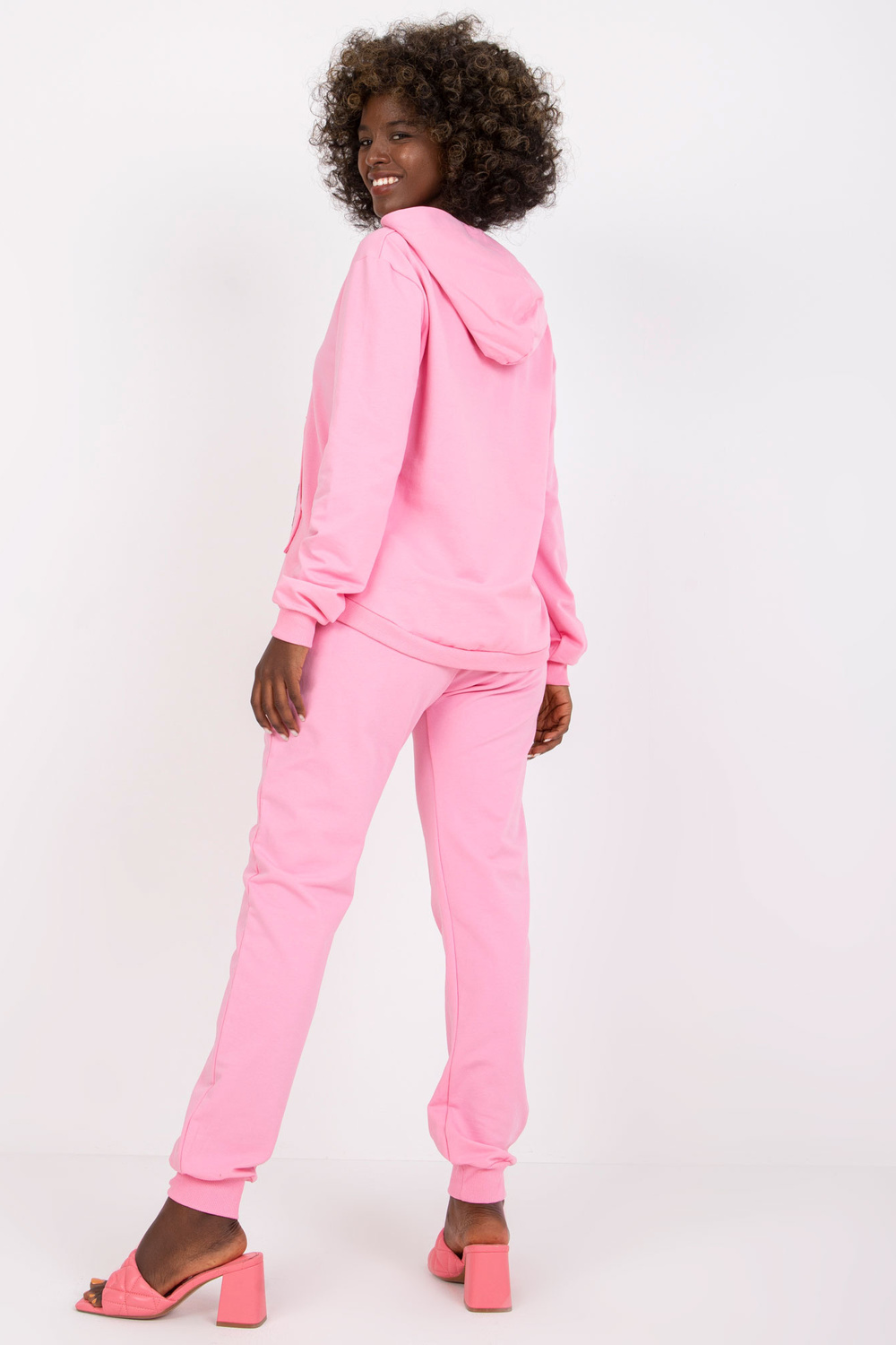 Šviesiai rausvos spalvos megztinių komplektas su Mariami gobtuvu.