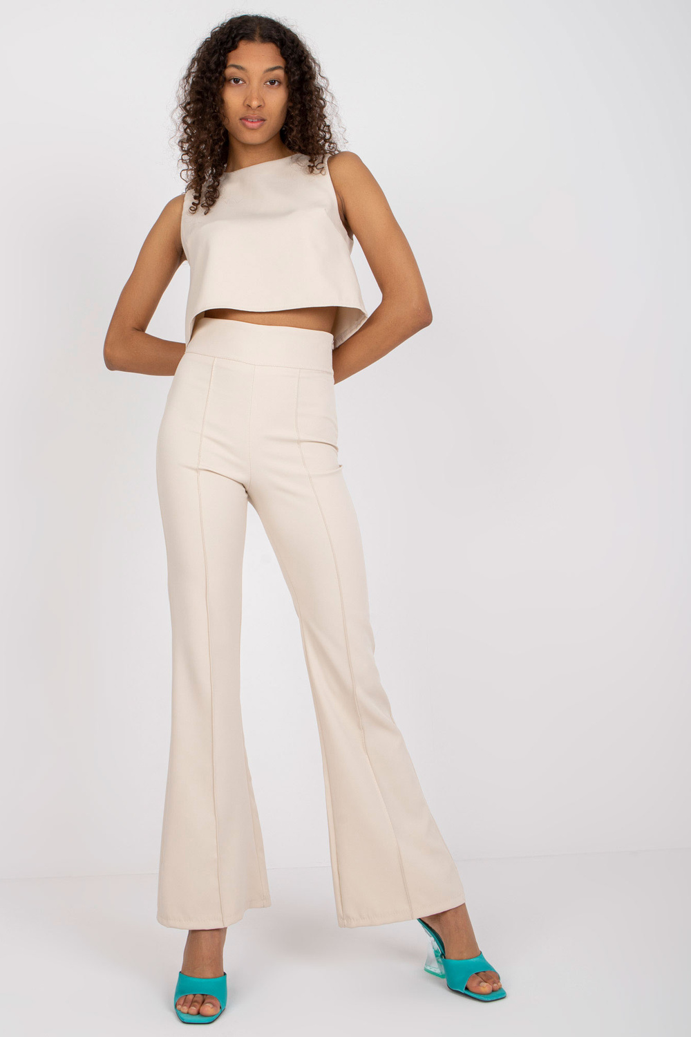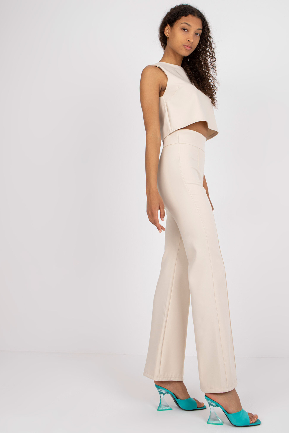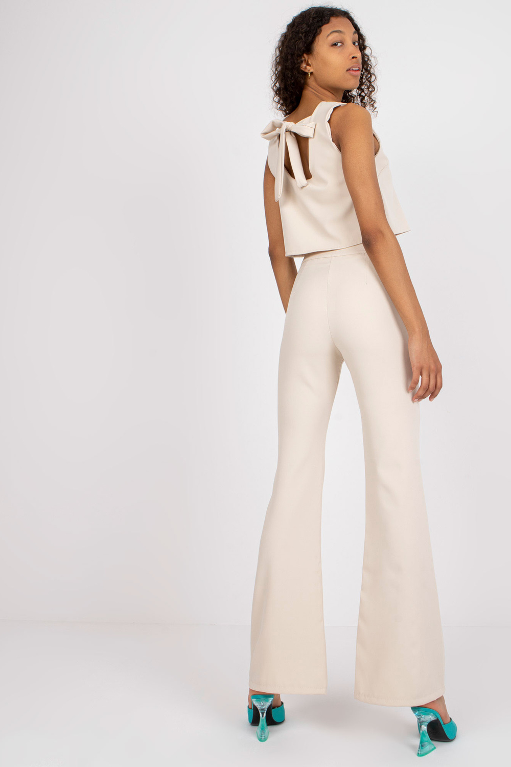 Šviesiai smėlio spalvos moteriškas elegantiškas komplektas su kelnėmis