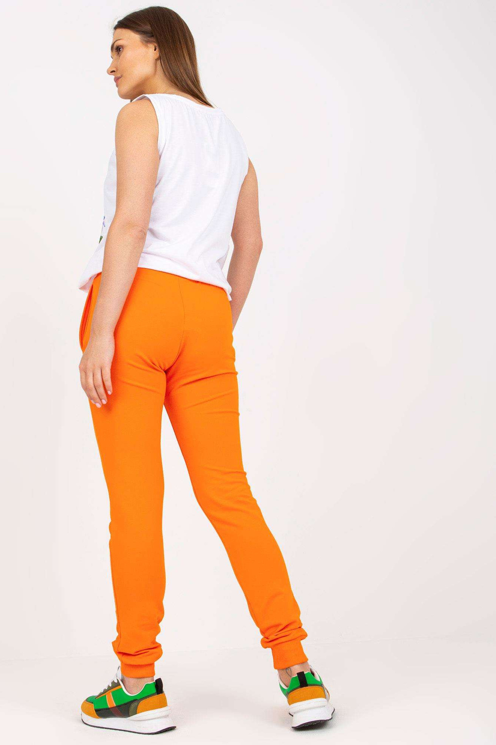 Baltos ir oranžinės spalvos dviejų dalių vasarinis rinkinys su viršutine dalimi .