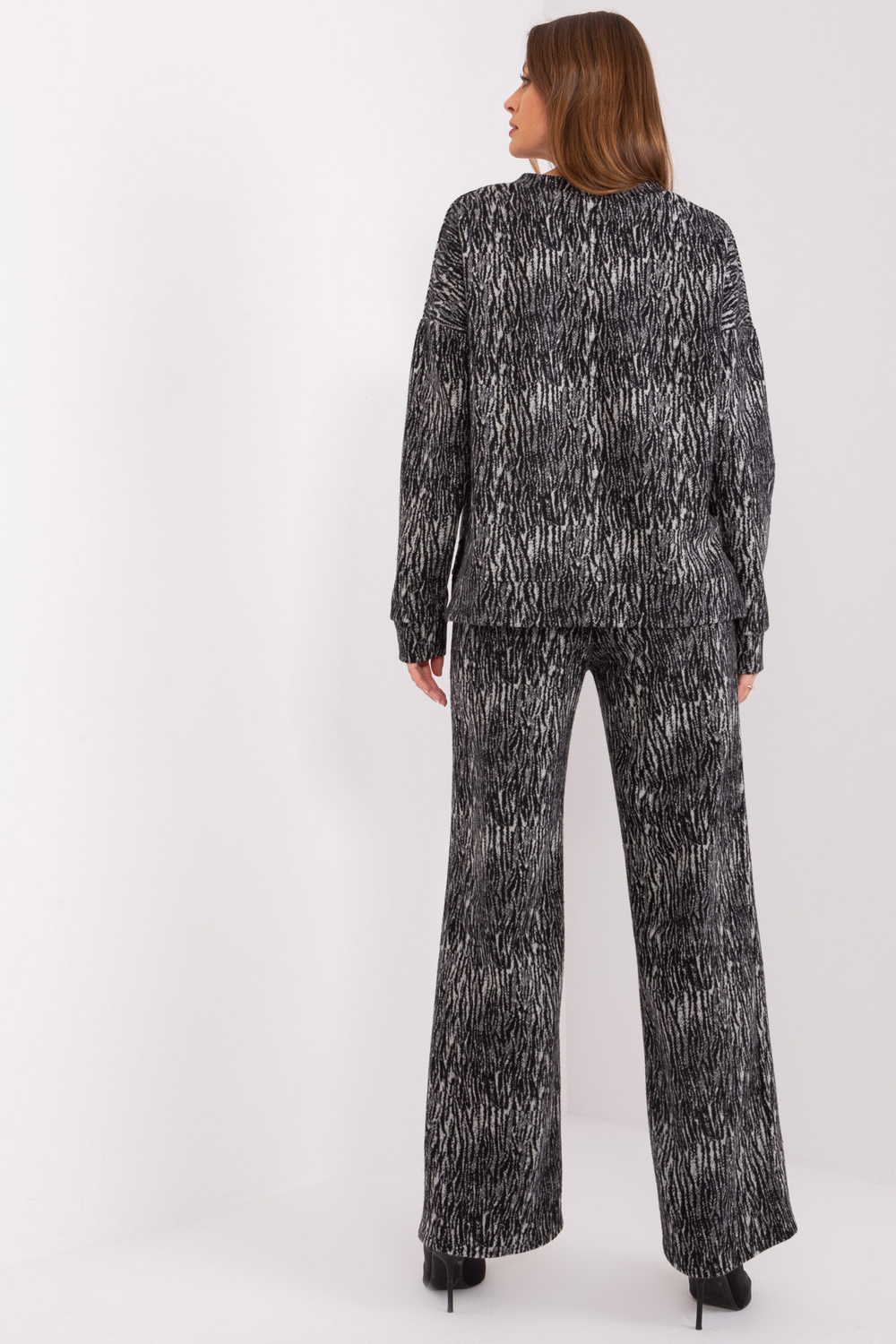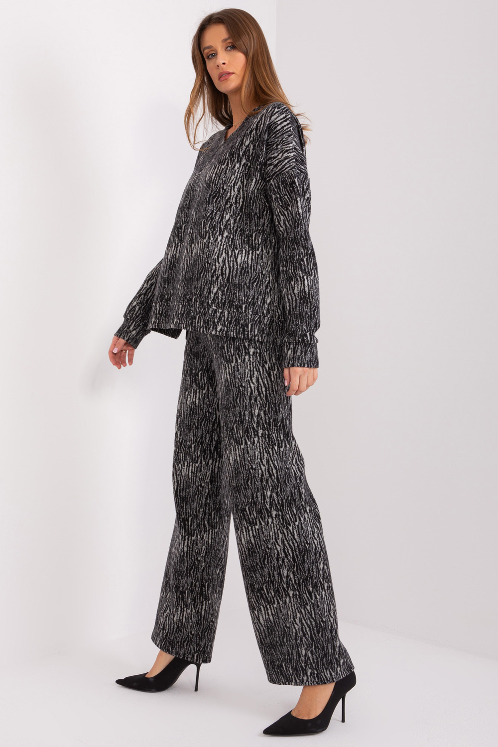 Pilkos ir juodos spalvos moteriškas laisvalaikio medvilninis komplektas .
