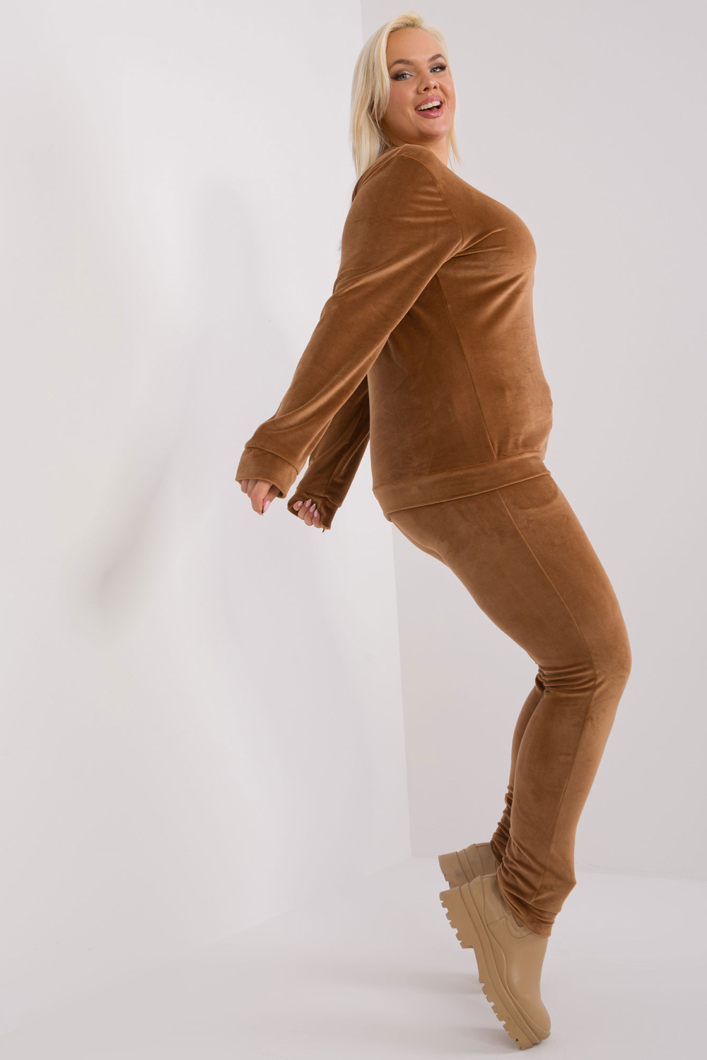 2XL dydžio rinkinio matmenys išmatuoti plokščiai: pažasties plotis - 54 cm, megztinio ilgis - 65 cm, rankovių ilgis - 64 cm, juosmens plotis - 42 cm, kelnių ilgis - 103 cm.