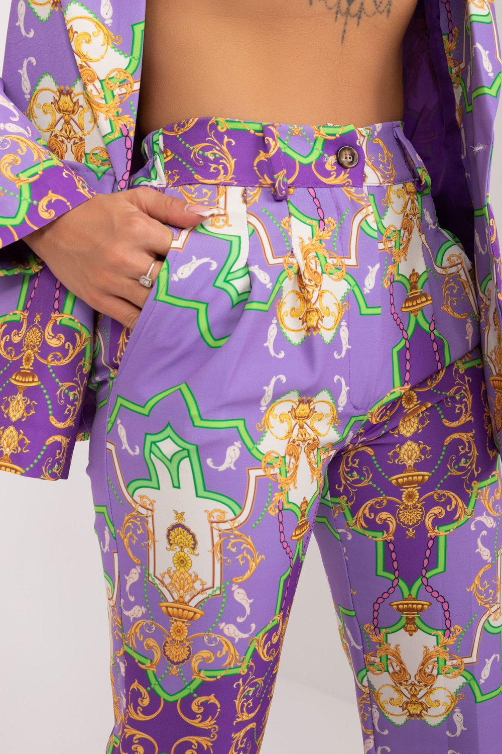 S dydžio rinkinio matmenys, matuojamas plokščias: striukės plotis po pažastimis - 48 cm, rankovių ilgis - 57 cm, striukės ilgis - 66 cm, kelnių plotis ties juosmeniu - 31 cm, juosmens aukštis - 29 cm, kelnių ilgis - 97 cm.