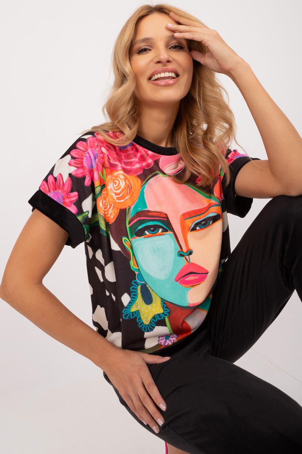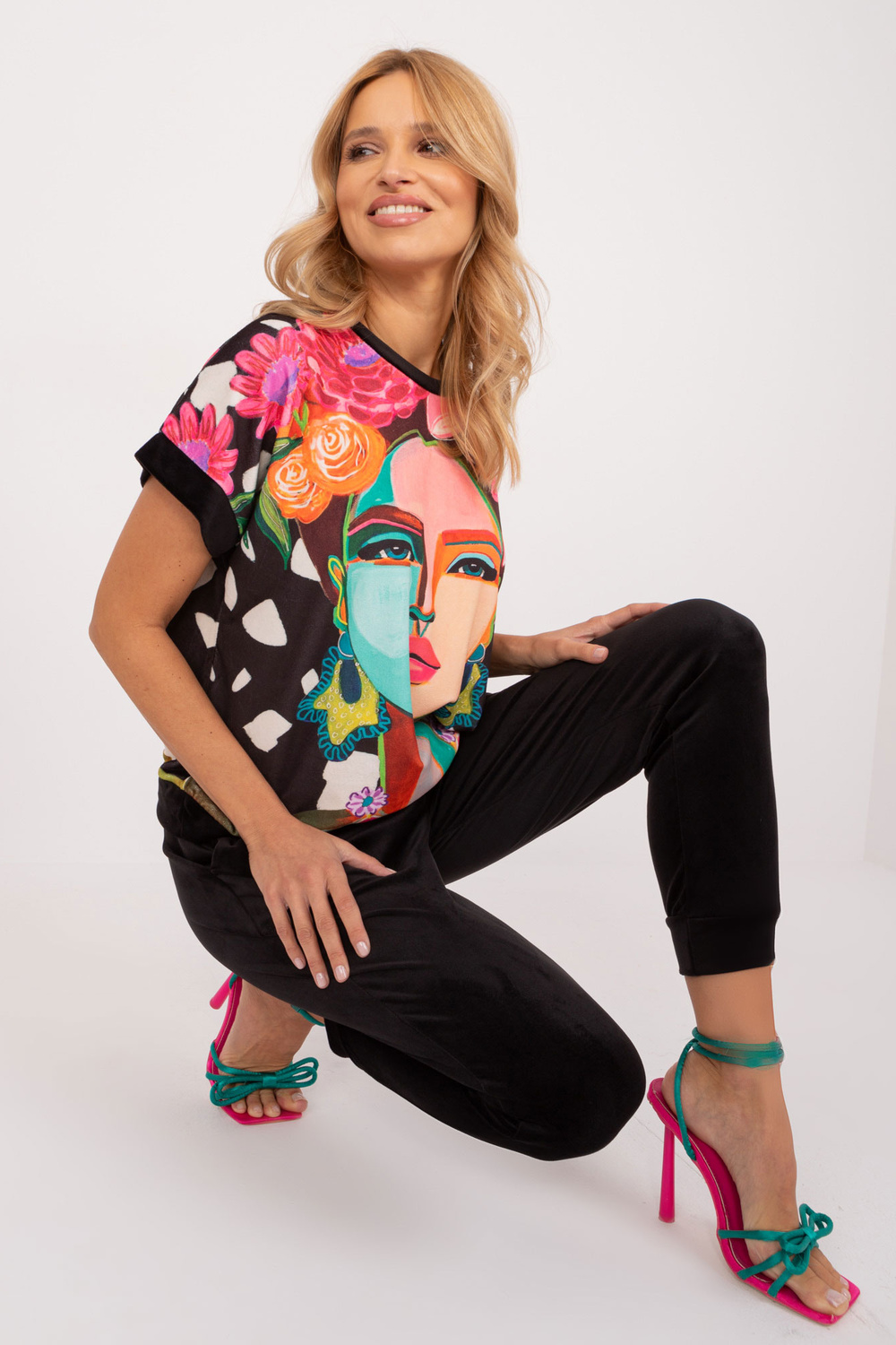 Vieno dydžio komplekto matmenys, matuojamas plokščias: palaidinės plotis po pažastimis - 64 cm, palaidinės ilgis - 65 cm, kelnių plotis ties juosmeniu - 36 cm, kelnių aukštis ties juosmeniu - 32 cm, kelnių ilgis - 94 cm.