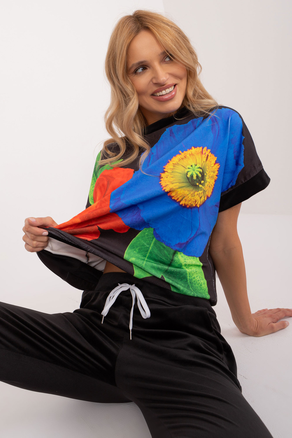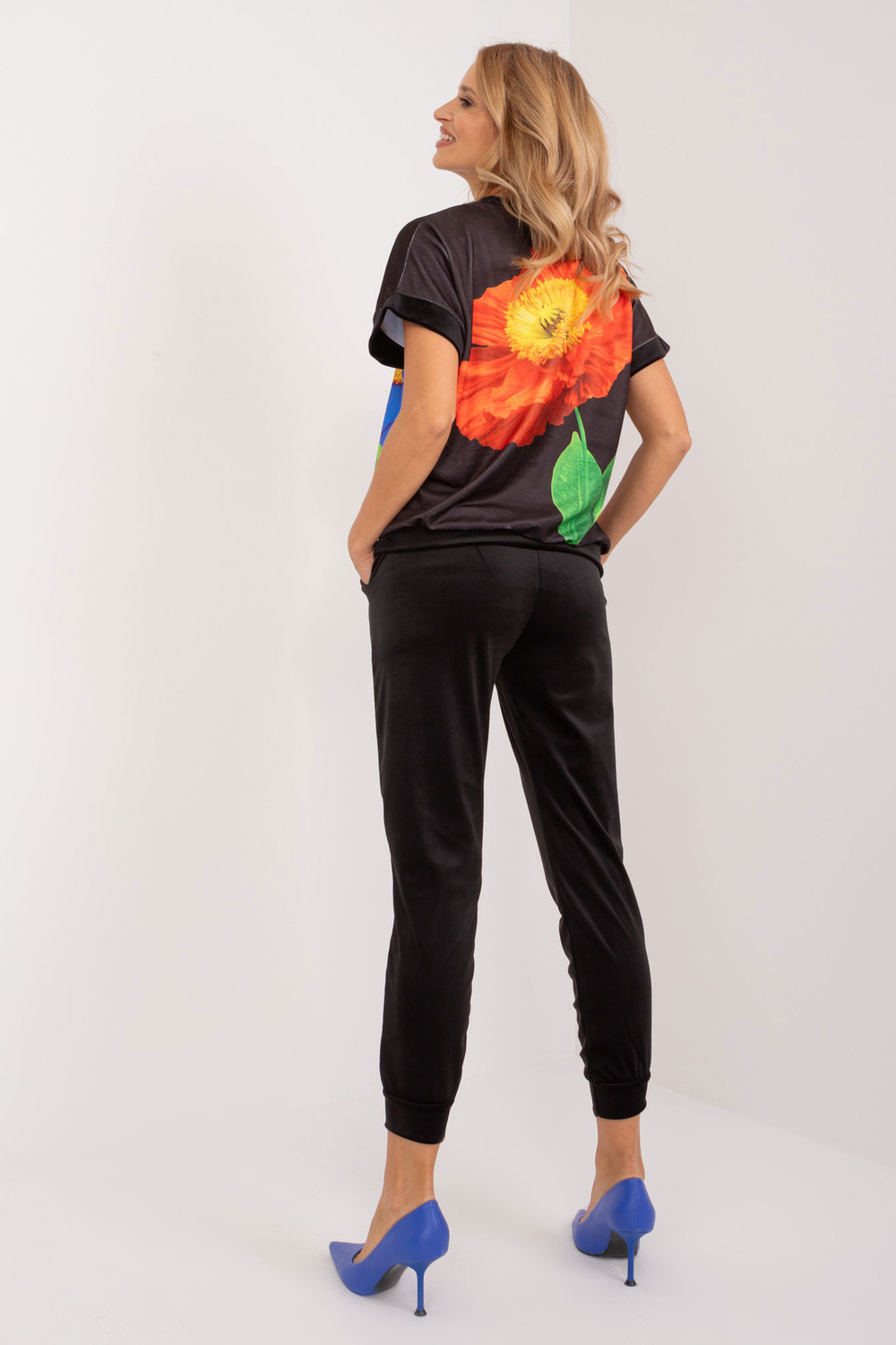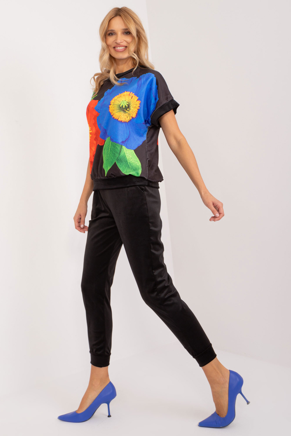 Vieno dydžio komplekto matmenys, matuojamas plokščias: palaidinės plotis po pažastimis - 64 cm, palaidinės ilgis - 65 cm, kelnių plotis ties juosmeniu - 36 cm, kelnių aukštis ties juosmeniu - 32 cm, kelnių ilgis - 94 cm.