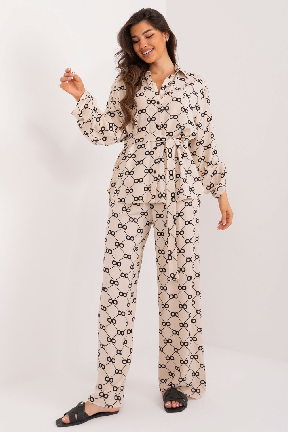 S/M dydžio rinkinio matmenys išmatuoti plokščiai: marškinių plotis po pažastimis - 62 cm, rankovių ilgis - 65 cm, marškinių ilgis (priekyje) - 68 cm, marškinių ilgis (nugaroje) - 77 cm, kelnių plotis ties juosmeniu - 34 cm, juosmens aukštis - 34 cm, kelnių ilgis - 113 cm.