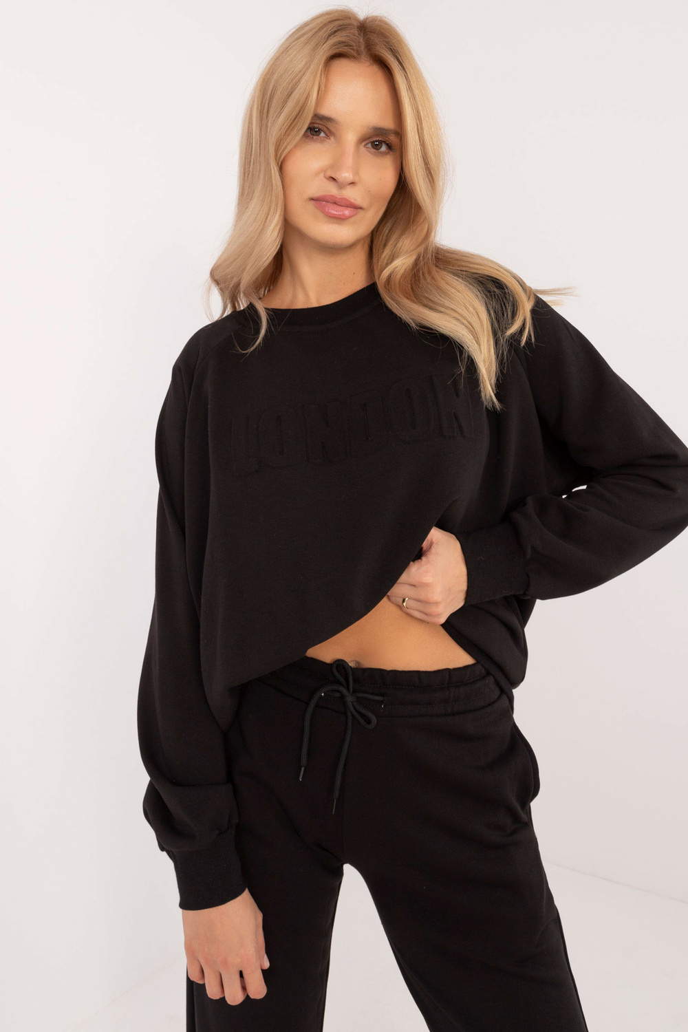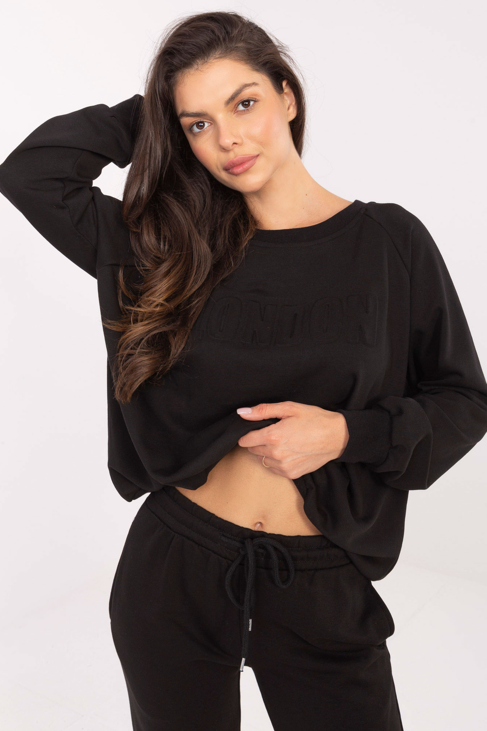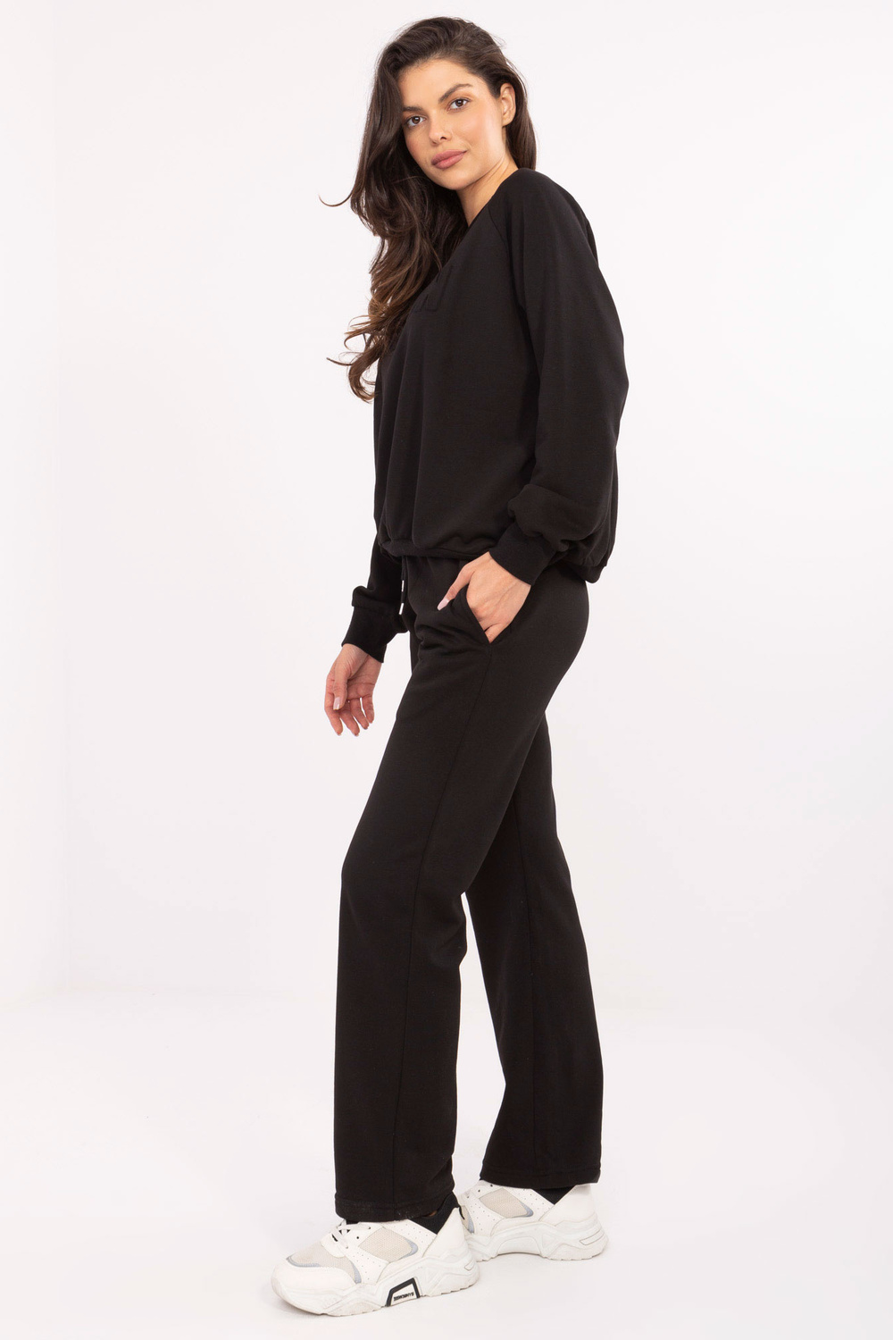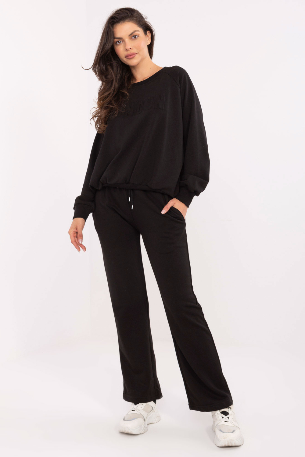 Vieno dydžio komplekto matmenys, matuojamas plokščias: megztinio plotis po pažastimis - 68 cm, megztinio ilgis - 67 cm, rankovių ilgis - 64 cm, kelnių plotis juosmens - 33 cm, juosmens aukštis - 34 cm. , kelnių ilgis - 105 cm.