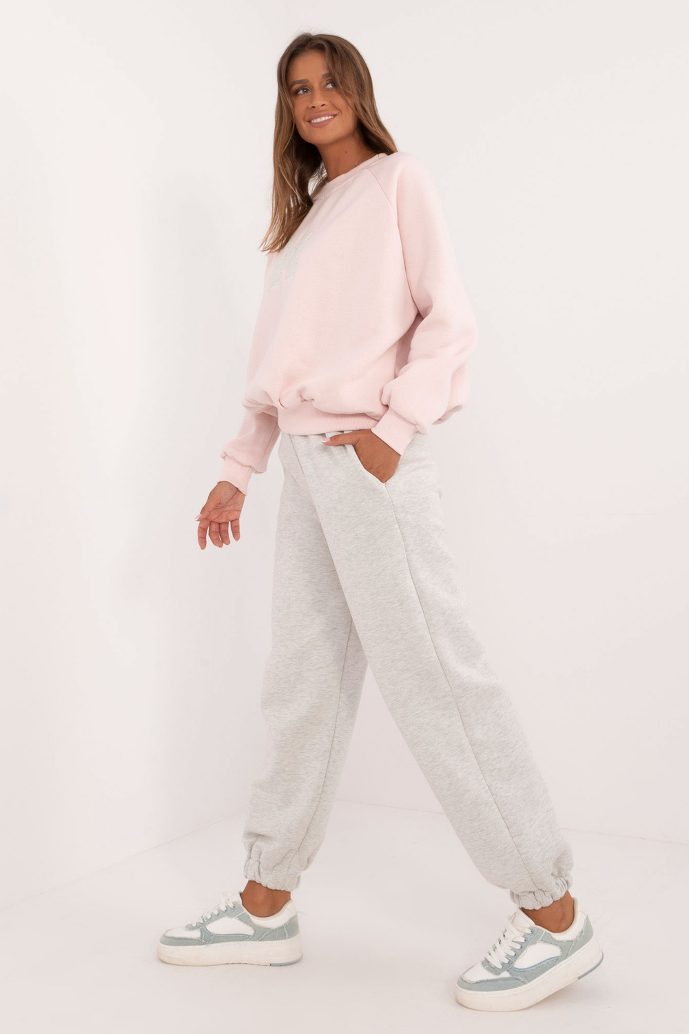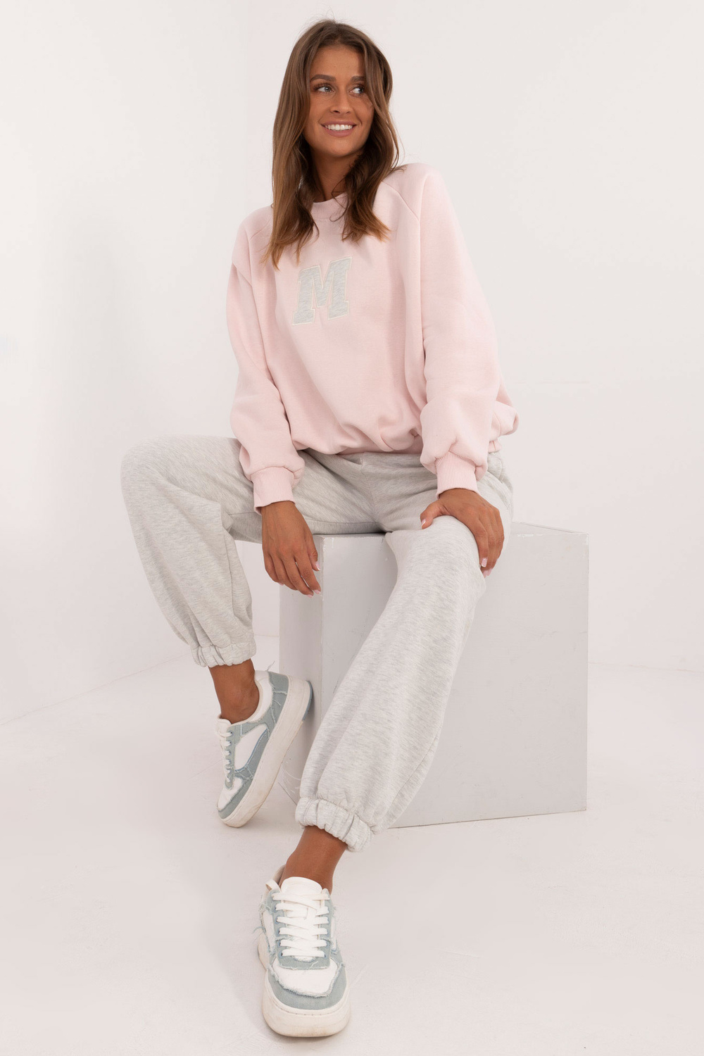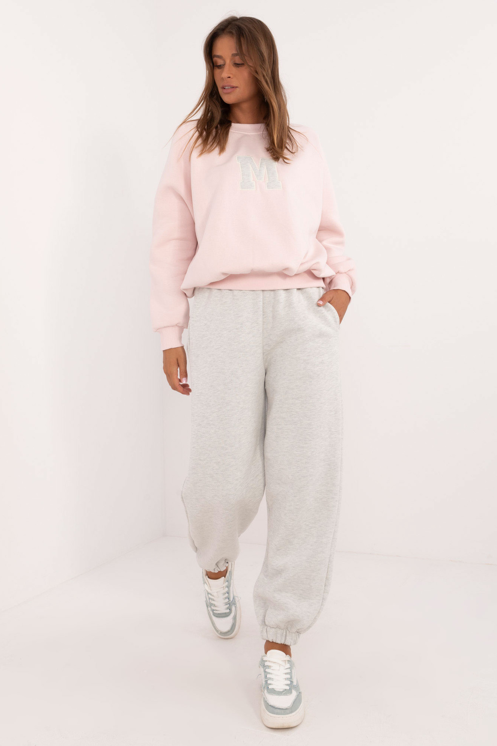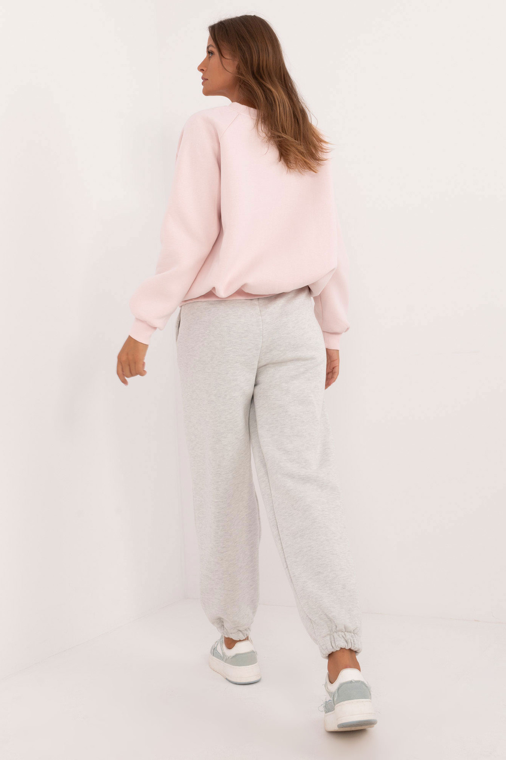 Vieno dydžio komplekto matmenys, matuojamas plokščias: megztinio plotis po pažastimis - 72 cm, megztinio ilgis - 62 cm, rankovių ilgis - 64 cm, kelnių plotis juosmens - 33 cm, juosmens aukštis - 37 cm. , kelnių ilgis - 107 cm.