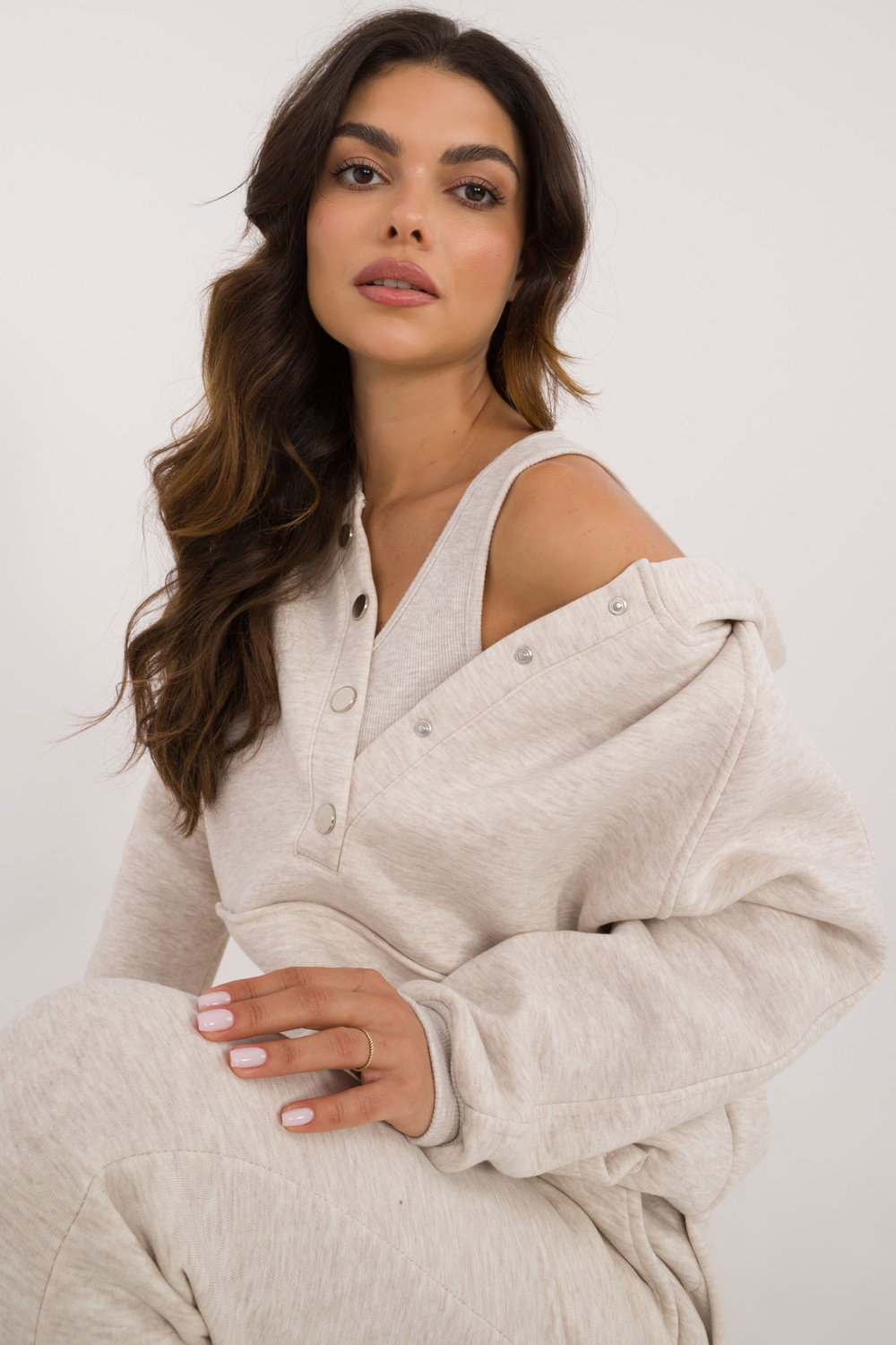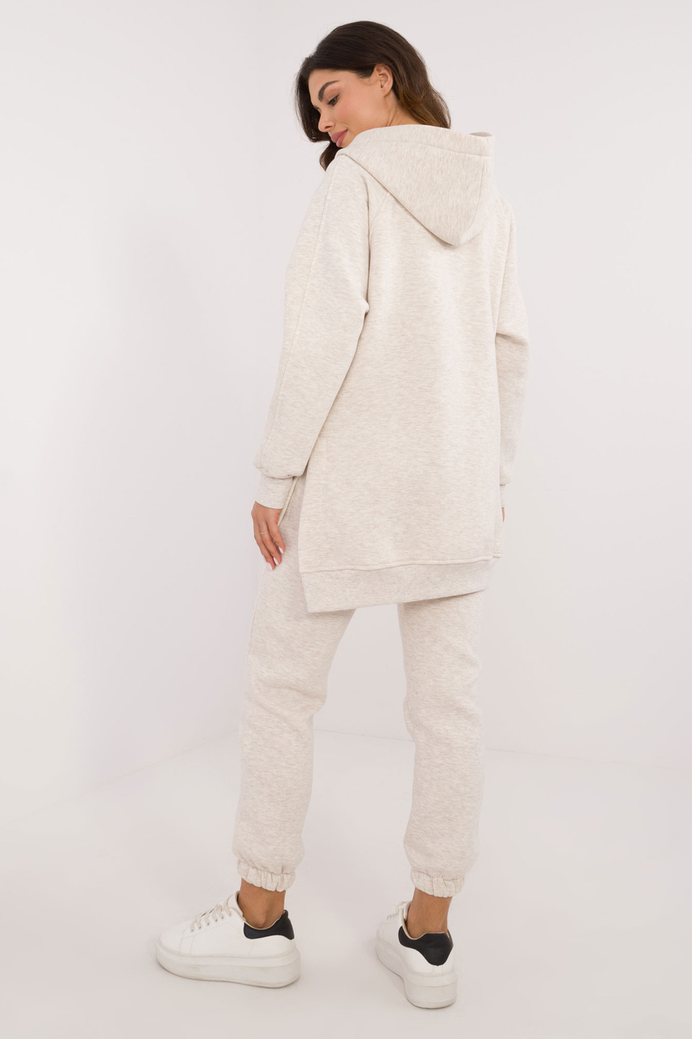 Vieno dydžio komplekto matmenys, matuojami plokščiai: megztinio plotis po pažastimis - 60 cm, megztinio ilgis - 81 cm, rankovių ilgis - 60 cm, viršutinės dalies plotis po pažastimis - 38 cm, megztinio ilgis viršus - 42 cm, kelnių plotis ties juosmeniu - 34 cm, kelnių ilgis - 96 cm.