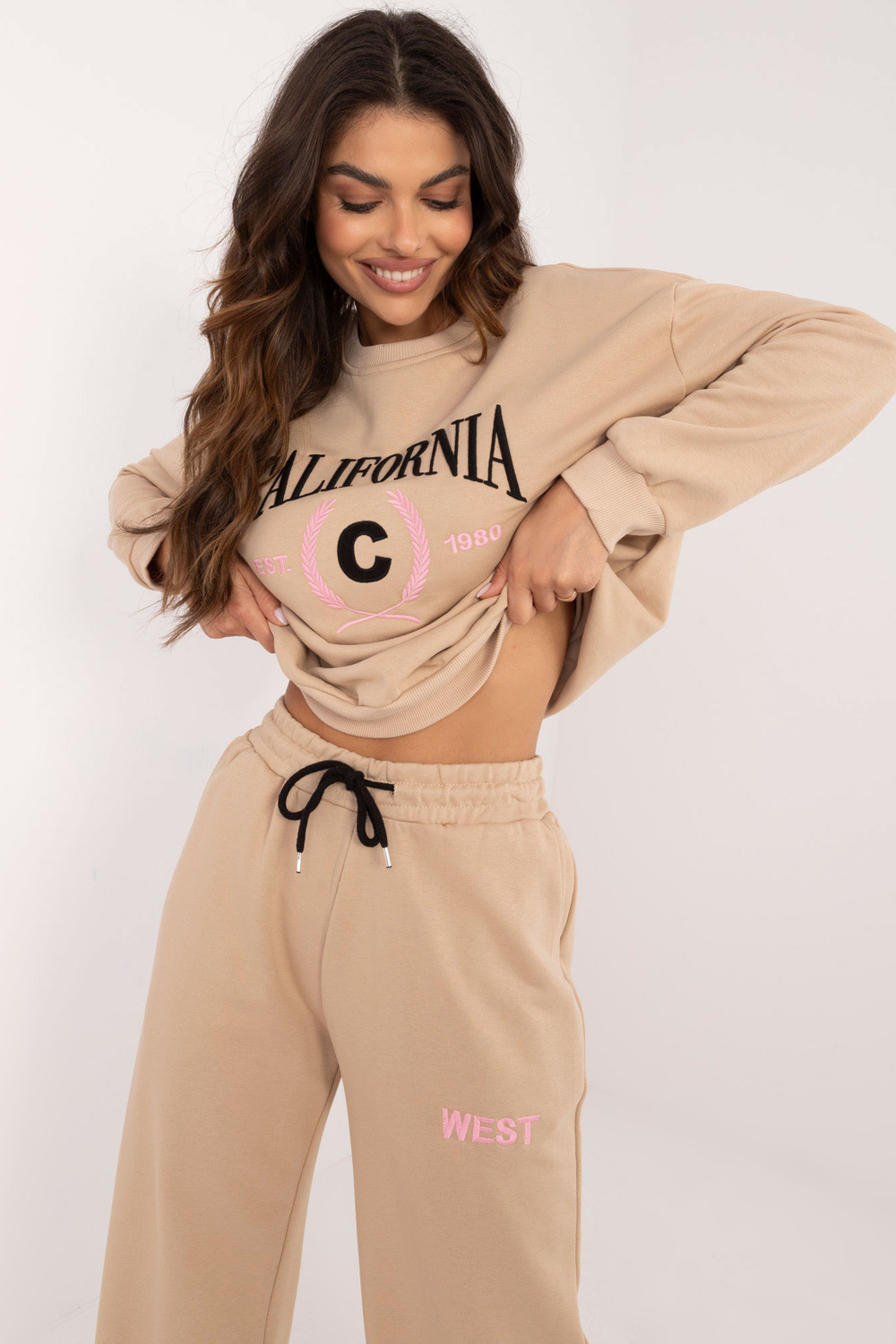 Vieno dydžio rinkinio matmenys, matuojamas plokščias: pažasties plotis - 60 cm, megztinio ilgis - 62 cm, rankovių ilgis - 58 cm, juosmens plotis - 32 cm, kelnių ilgis - 109 cm.