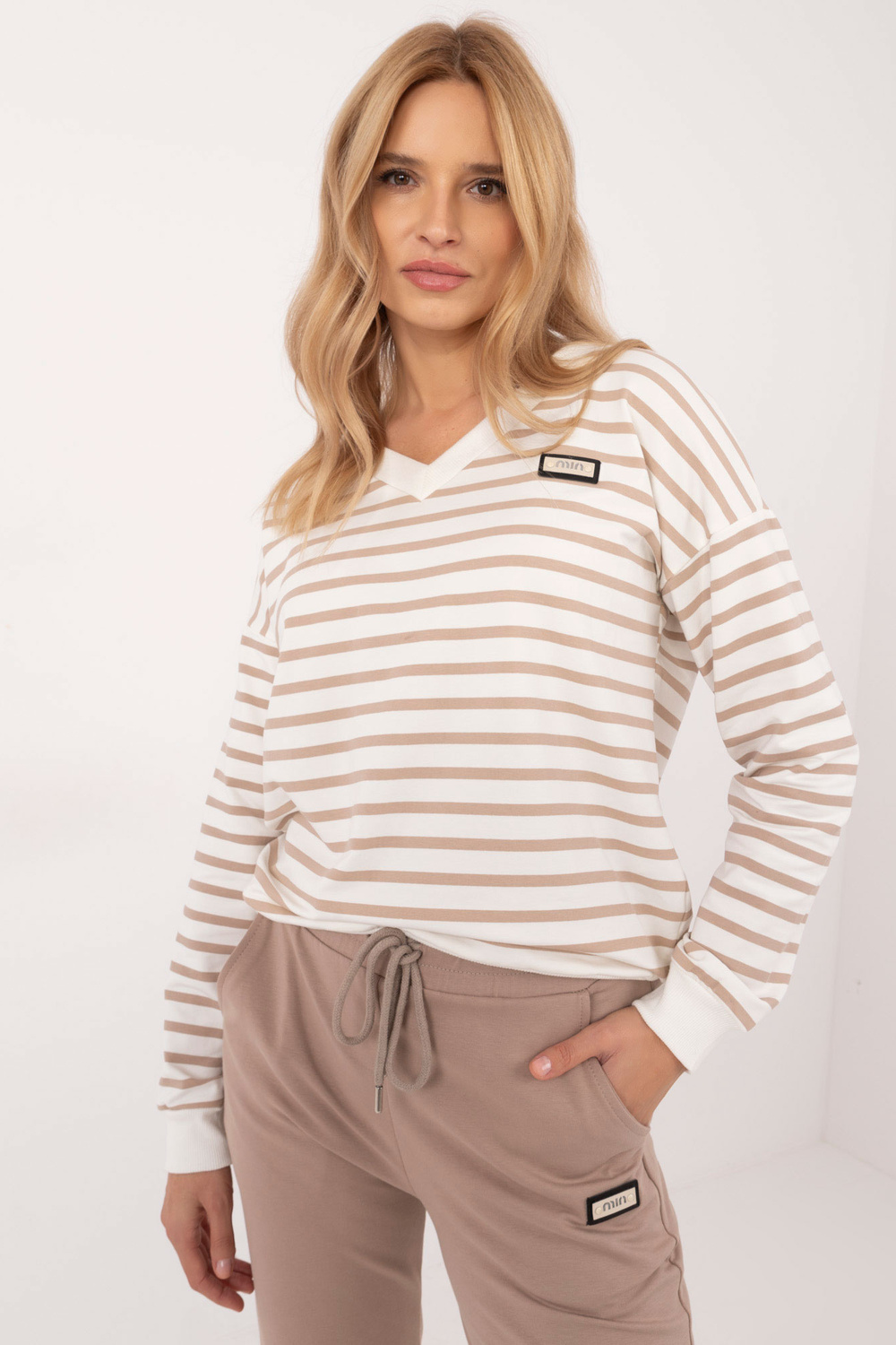 Modelis dėvi S/M dydį. Modelio išmatavimai: ūgis 175 cm, krūtinė 90 cm, juosmuo 66 cm, klubai 94 cm.