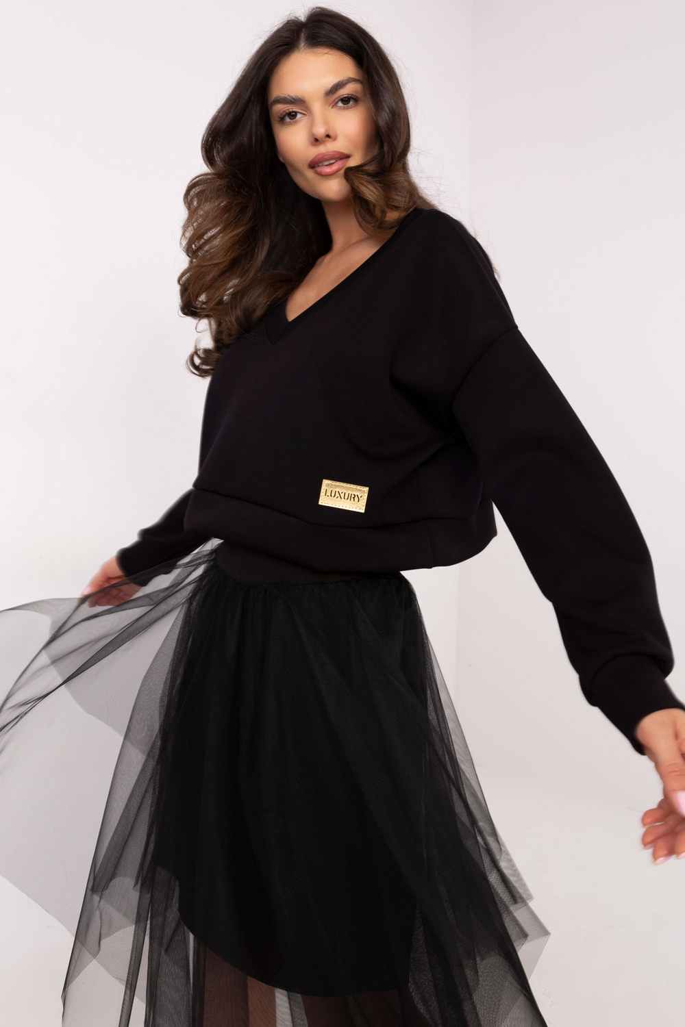 Modelis dėvi vieno dydžio dydį. Modelio išmatavimai: ūgis 173 cm, krūtinė 85 cm, juosmuo 62 cm, klubai 95 cm.