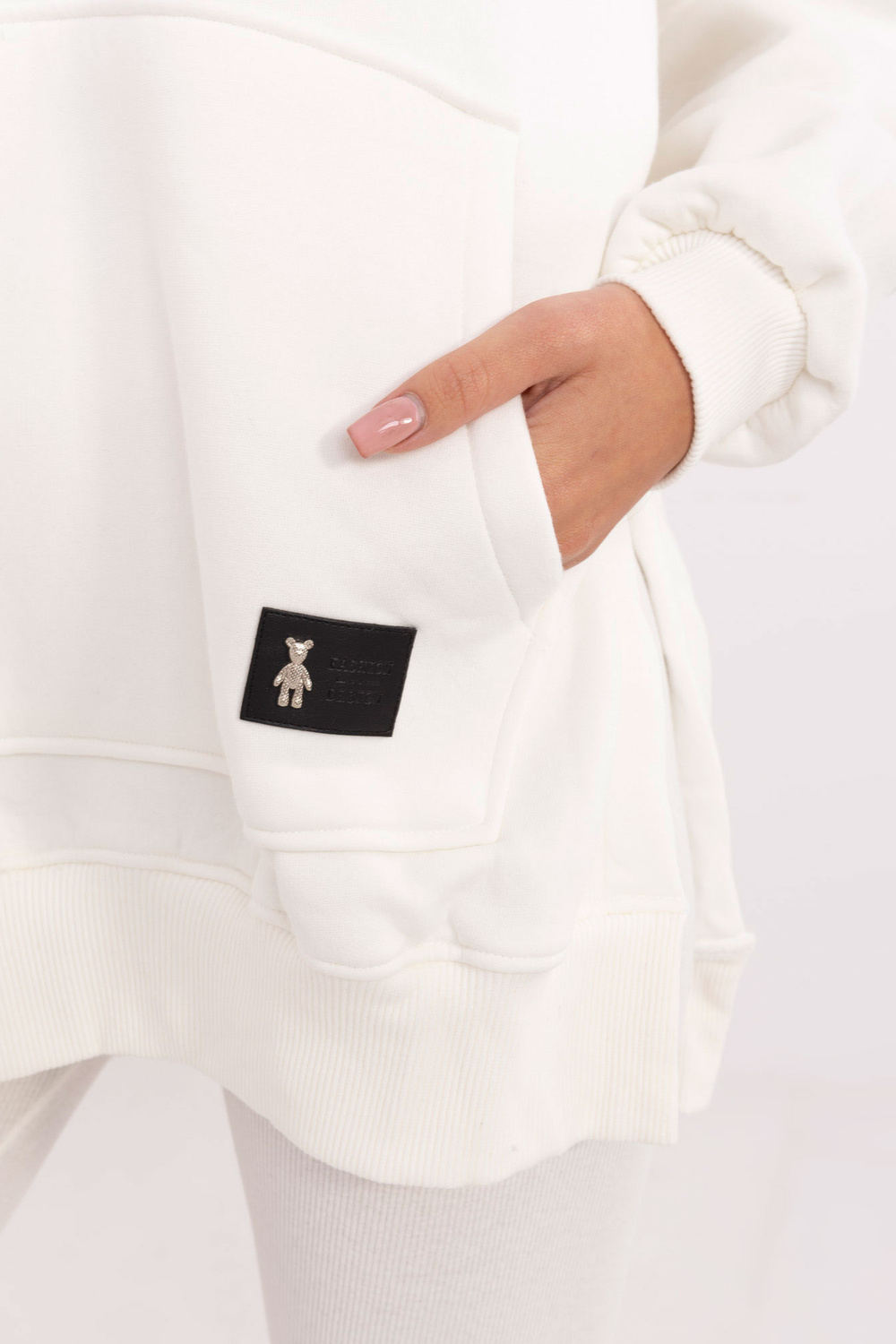 Mezginio matmenys vieno dydžio, matuojamas plokščias: megztinio plotis po apačia rankos - 65 cm, megztinio ilgis - 74 cm (priekyje), megztinio ilgis - 83 cm (nugaroje), rankovės ilgis - 52 cm, klubų apimtis - 112 cm.
