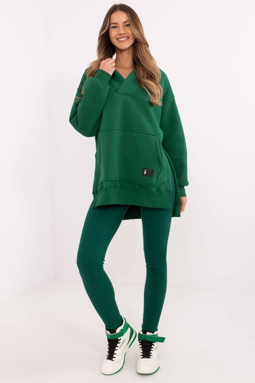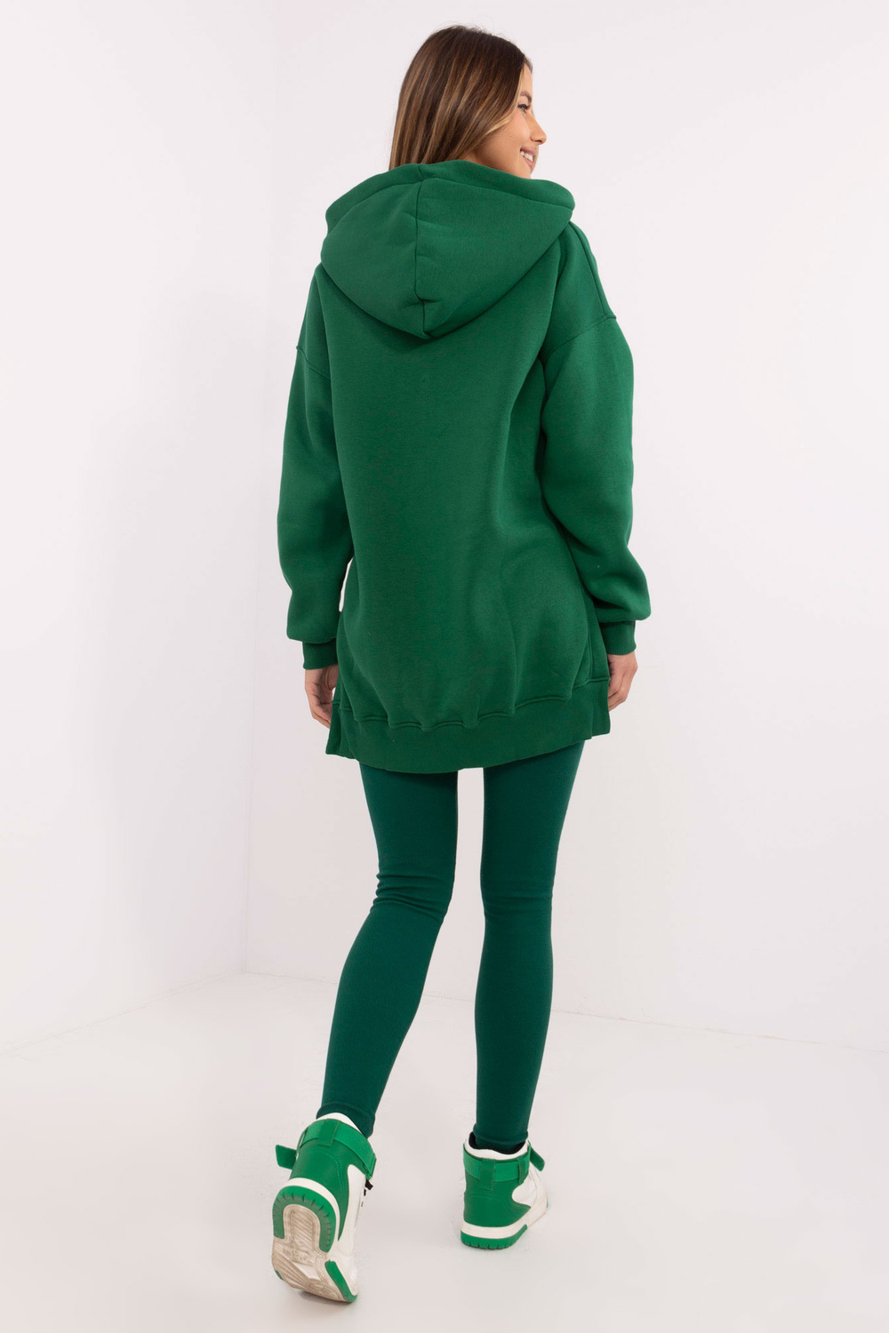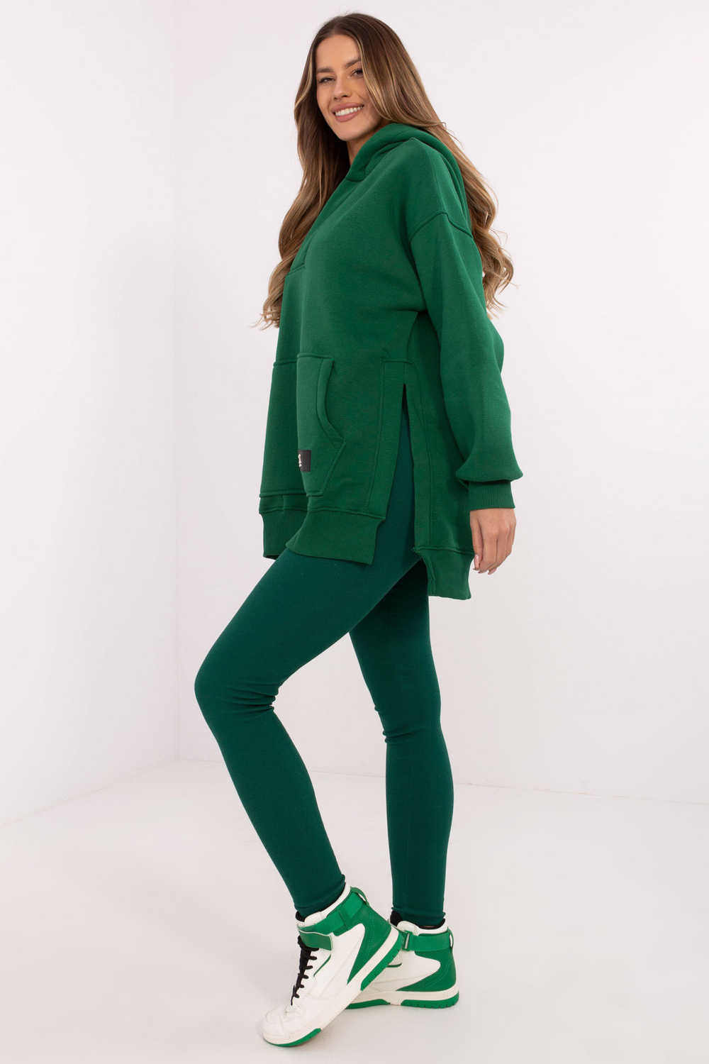 Mezginio matmenys vieno dydžio dydžiui matuojant plokščią: megztinio plotis po pažastimis - 65 cm, megztinio ilgis - 74 cm (priekyje), megztinio ilgis - 83 cm (nugaroje), rankovės ilgis - 52 cm, klubų apimtis - 112 cm.