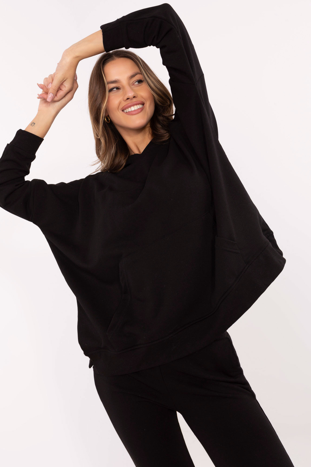 Modelis dėvi vieno dydžio dydį. Modelio matmenys: ūgis 176 cm, krūtinė 90 cm, juosmuo 62 cm, klubai 94 cm.