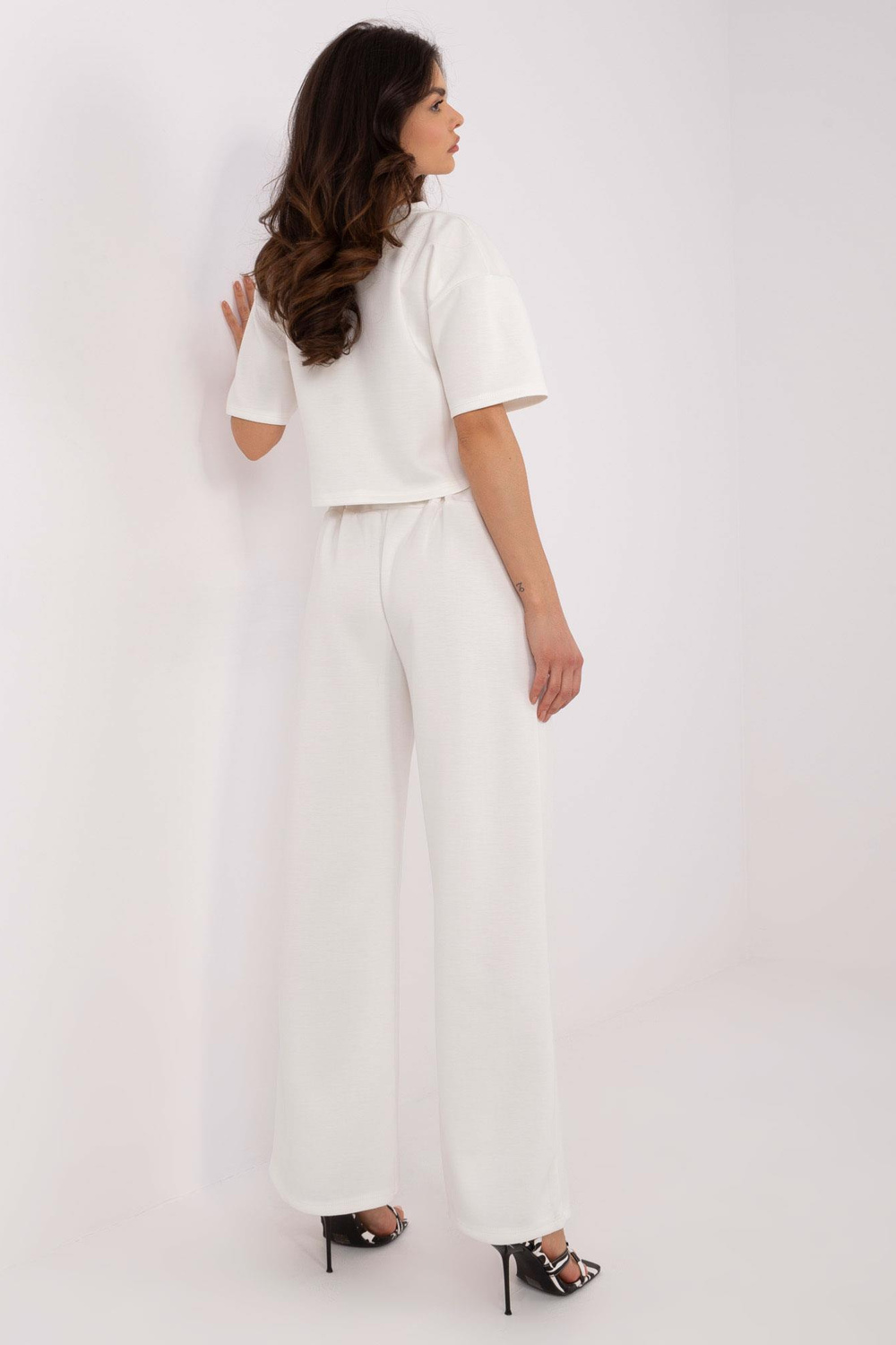 Vieno dydžio komplekto išmatavimai: palaidinės plotis po pažastimis - 49 cm, rankovės ilgis - 21 cm (nuo siūlės), bendras ilgis kelnaitės ties - .6 cm juosmuo - 58 cm (po tempimo), juosmens aukštis - 31 cm, kelnių plotis ties klubais - 53 cm, kelnių ilgis - 101 cm.
