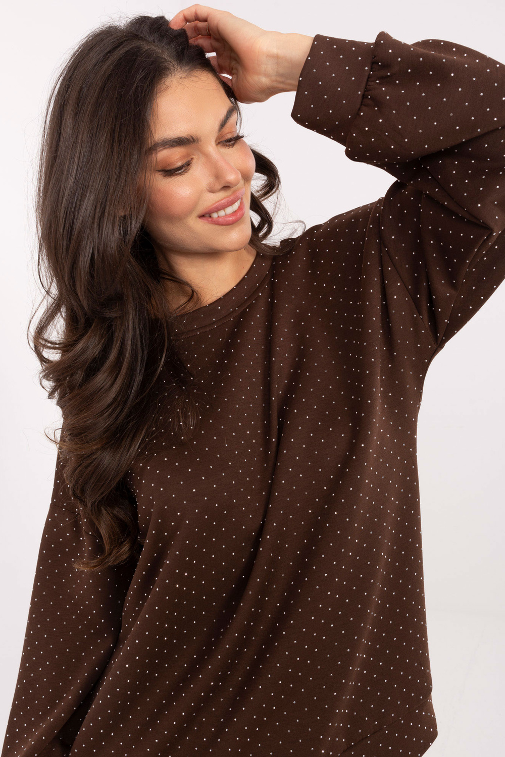 Modelis dėvi universalaus (one size) dydžio drabužį. Modelio matmenys: ūgis 173 cm, krūtinė 85 cm, liemuo 62 cm, klubai 95 cm.