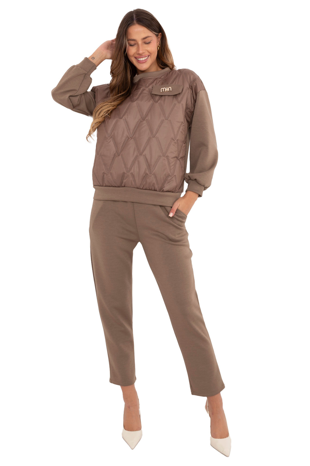 Vieno dydžio komplekto matmenys: plotis po pažastimis - 55 cm, džemperio ilgis - 62 cm, rankovės ilgis - 47 cm (nuo siūlės), apačios plotis - 47 cm, kelnių juosmens plotis - 34 cm (gulsčiai matuojant), kelnių juosmens plotis - 52 cm (ištemptas), klubų plotis - 51 cm, kelnių ilgis - 95 cm.