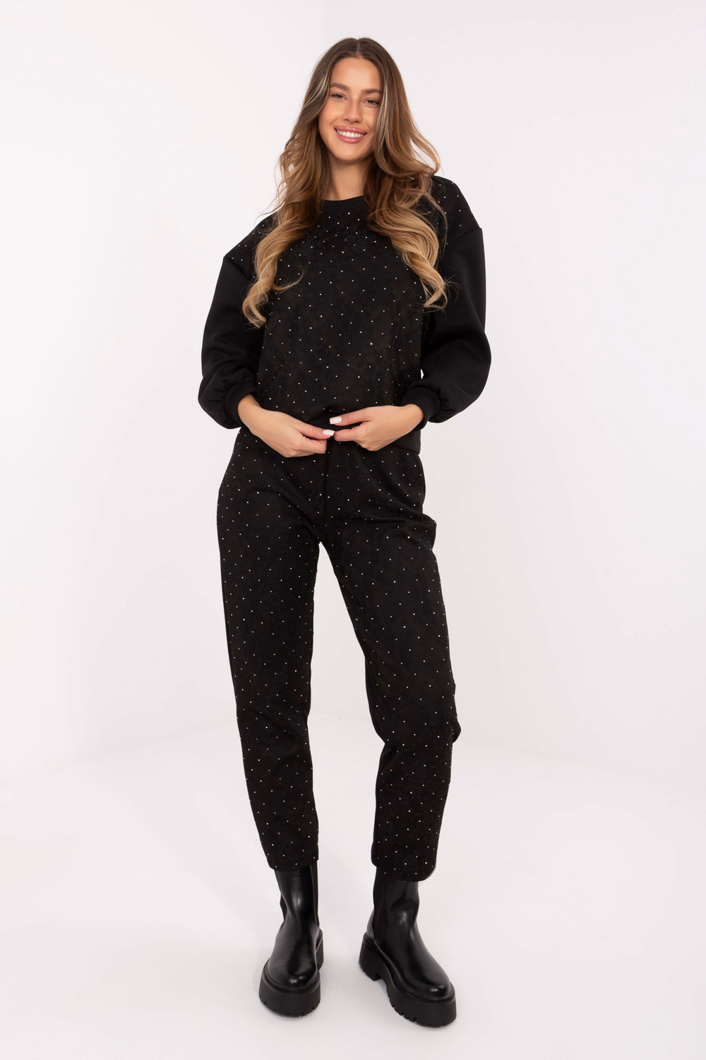 Vieno dydžio komplekto matmenys: plotis po pažastimis – 55 cm, megztinio ilgis – 65 cm, rankovės ilgis – 48 cm (nuo siūlės), klubų plotis – 45 cm, kelnių juosmens plotis – 37 cm (plokščias), kelnių juosmens plotis – 91 cm (ištempus), klubų plotis – 54 cm, kelnių ilgis – 99 cm.