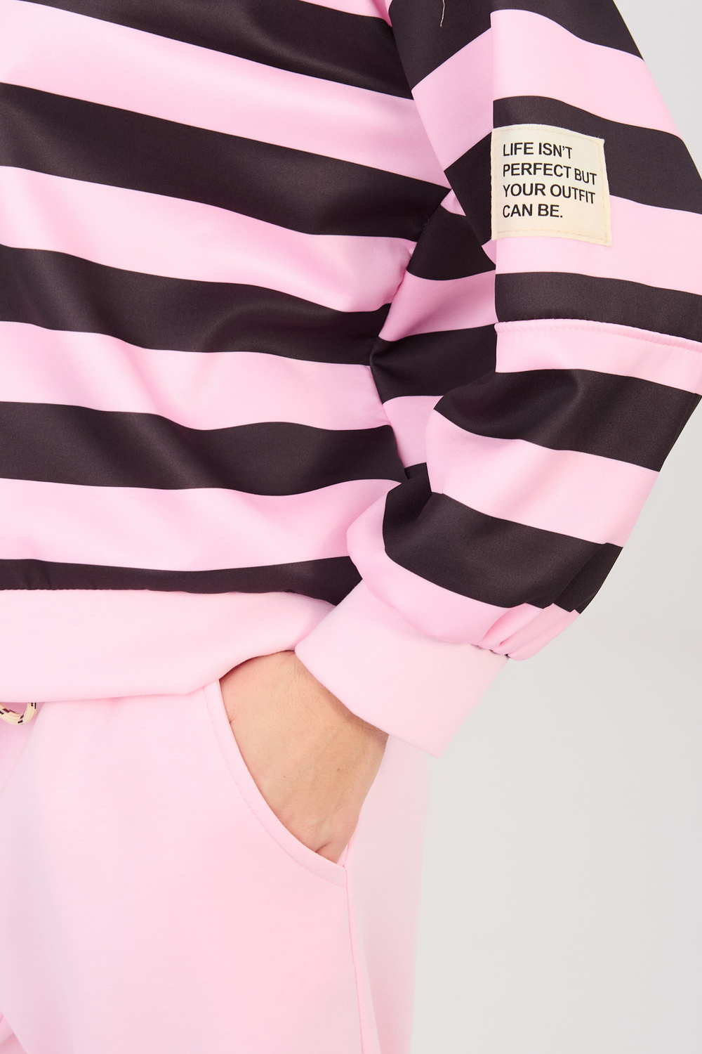 Modelis dėvi vieno dydžio drabužį. Modelio matmenys: ūgis 169 cm, krūtinė 88 cm, liemuo 68 cm, klubai 89 cm .