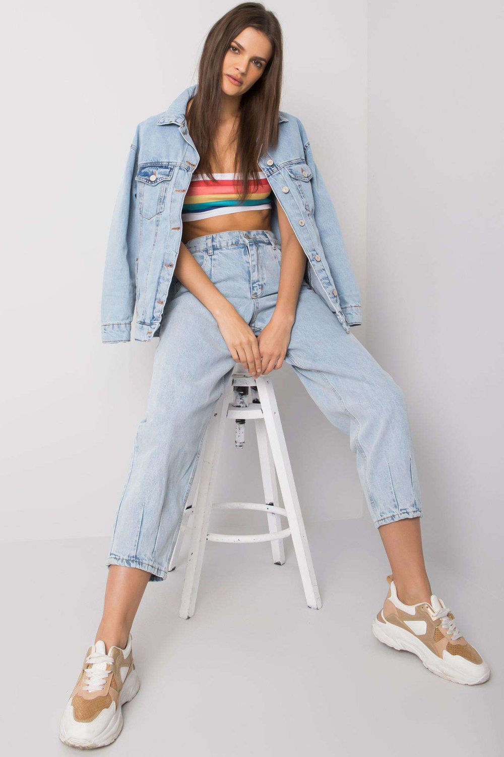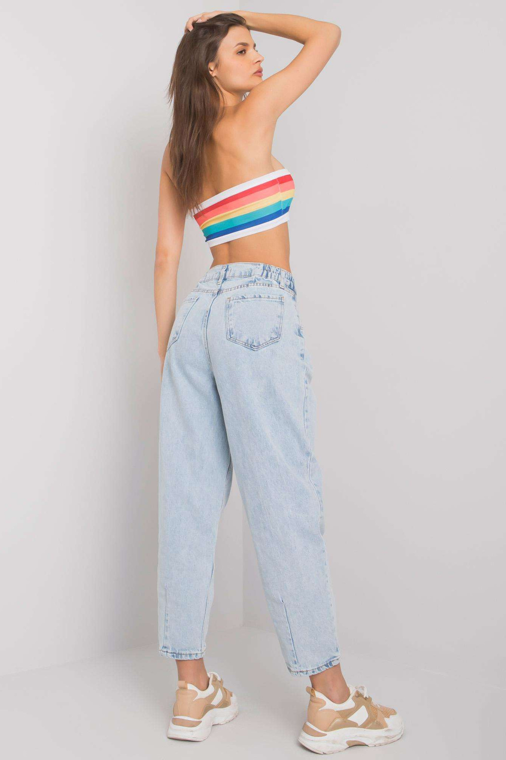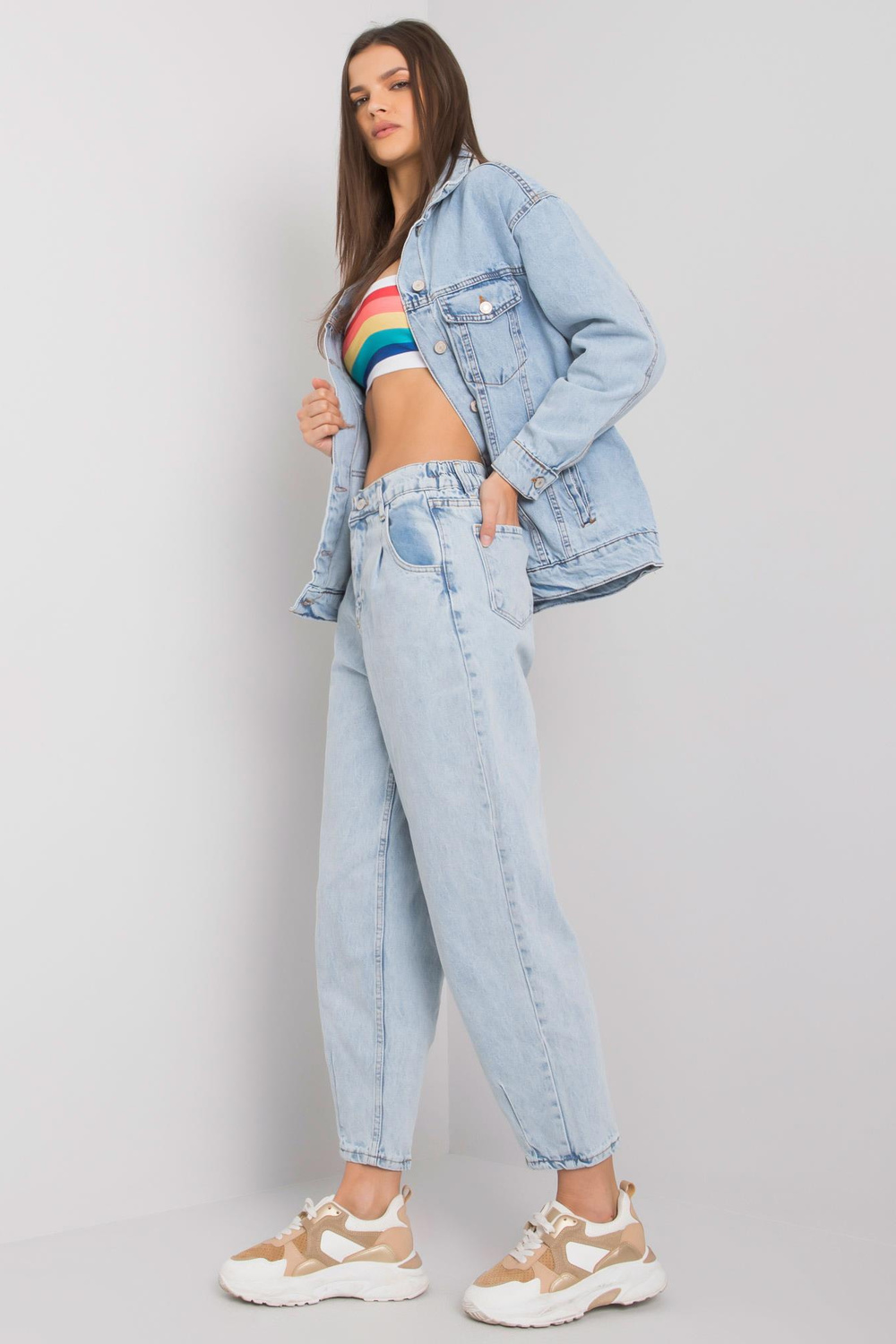 Šviesiai mėlynos džinsinės kelnės „MomJuney“ .