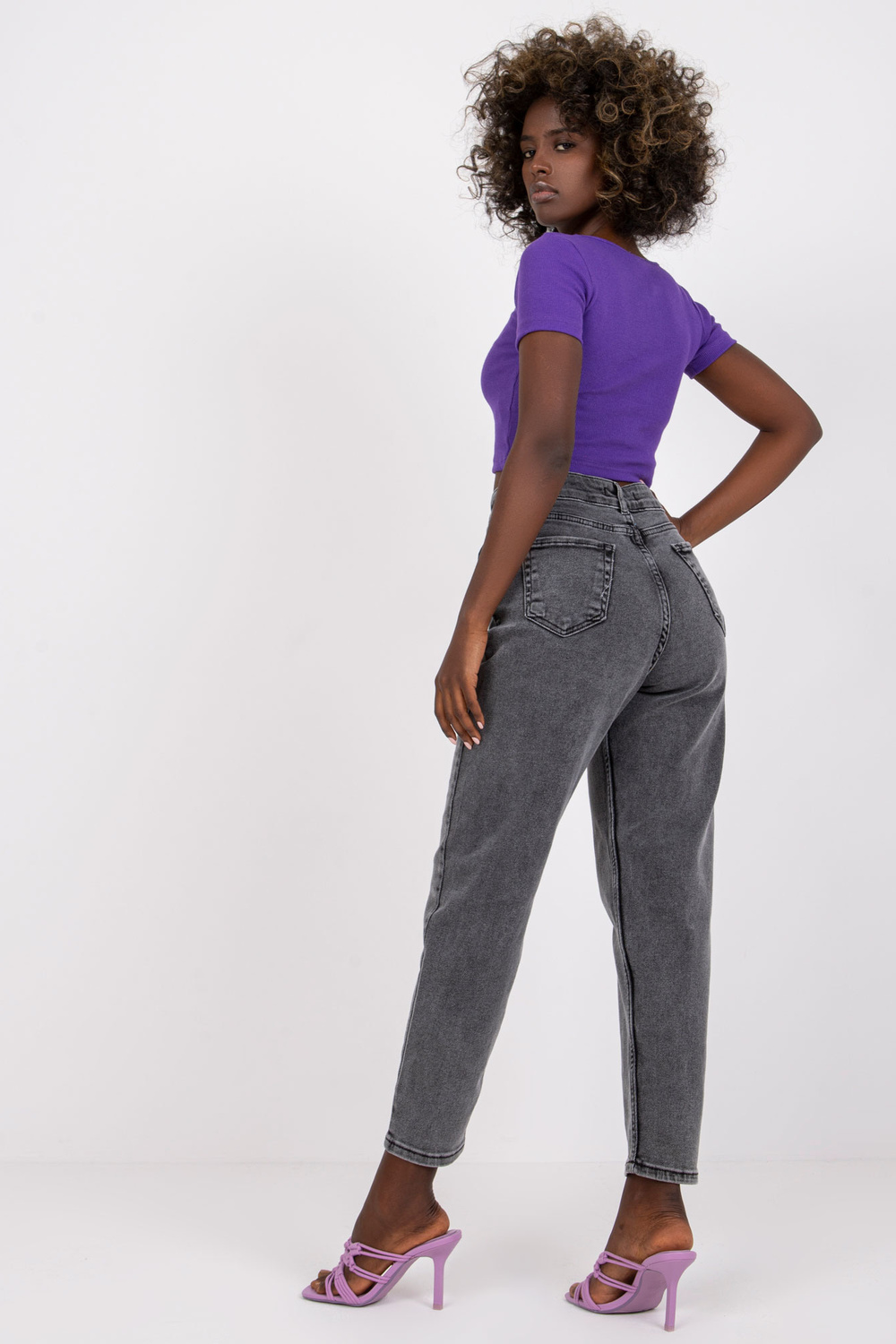 Tamsiai pilkos mamos džinsinės kelnės su aukštu juosmeniu Levante.