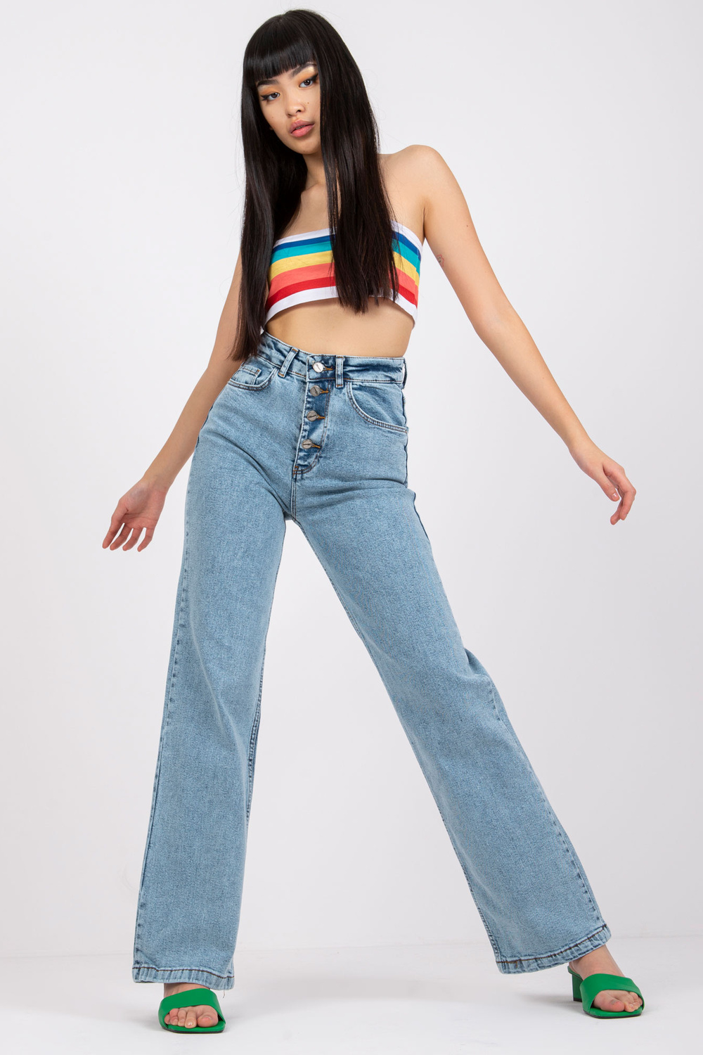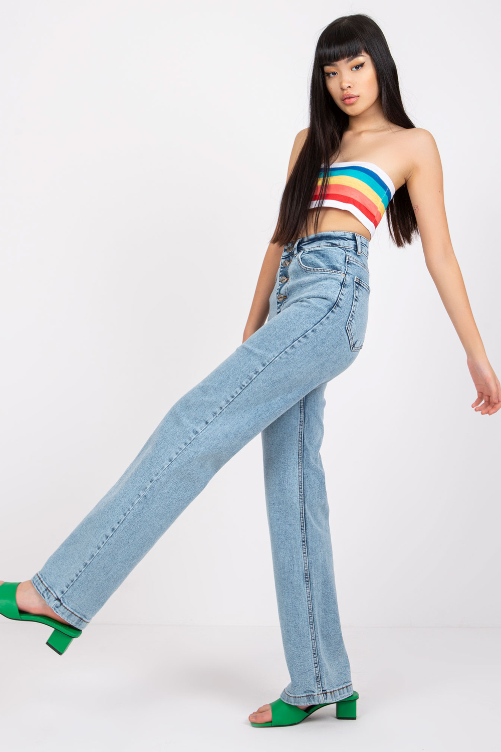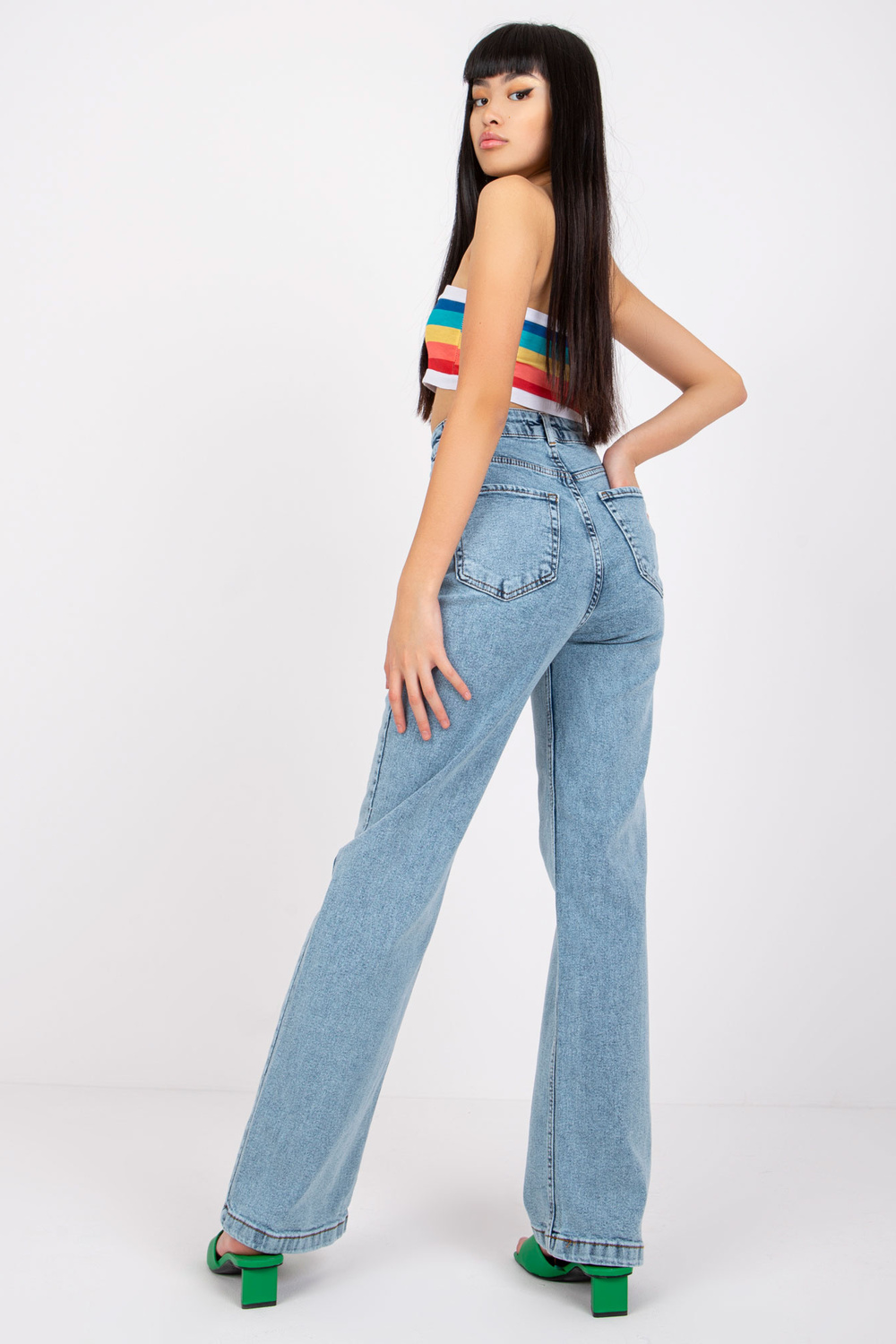 Mėlyni Sevilijos džinsai aukštu juosmeniu.
