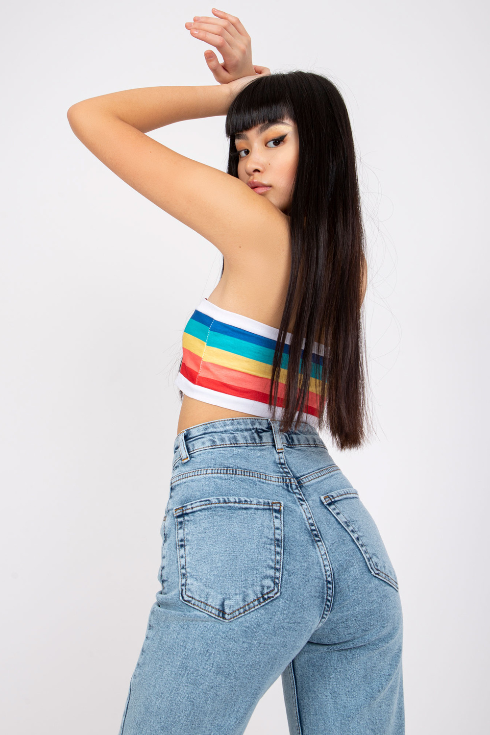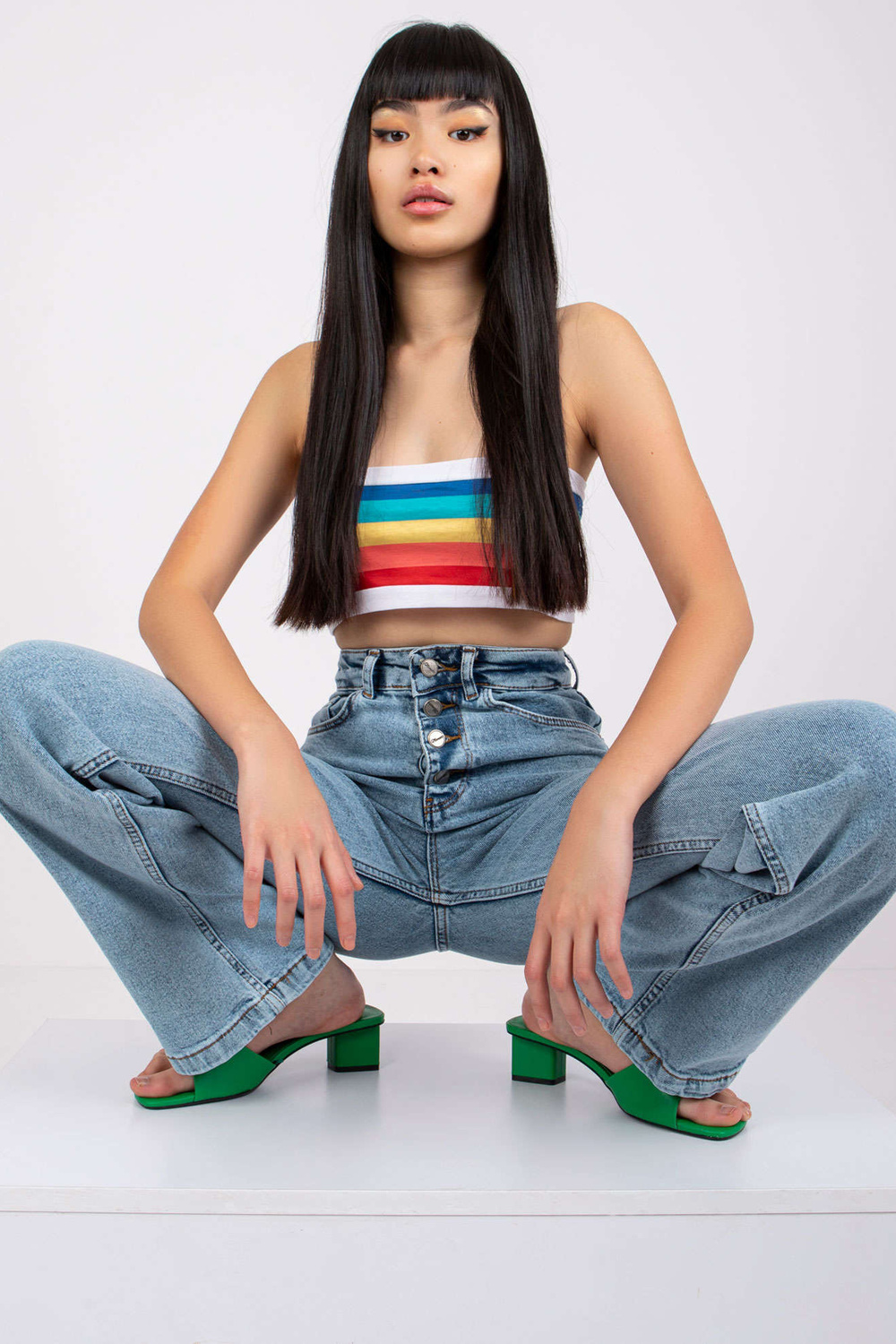 Modelis dėvi 27 dydį. modelio išmatavimai: ūgis 167 cm, krūtinė 73 cm, juosmuo 64 cm, klubai 91 cm.