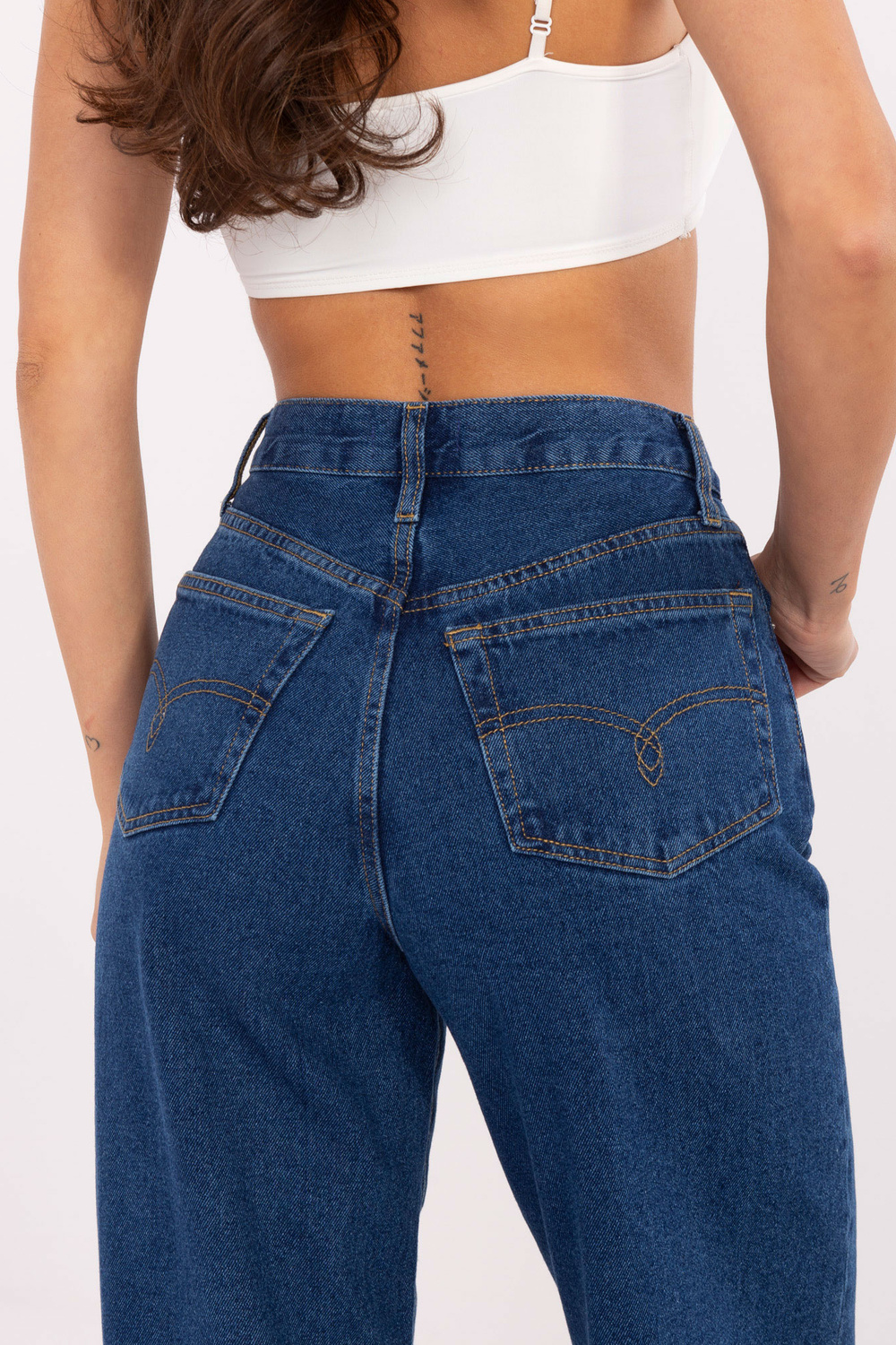 Tamsiai mėlynos džinsinės kelnės aukštu juosmeniu Azalea RUE PARIS .
