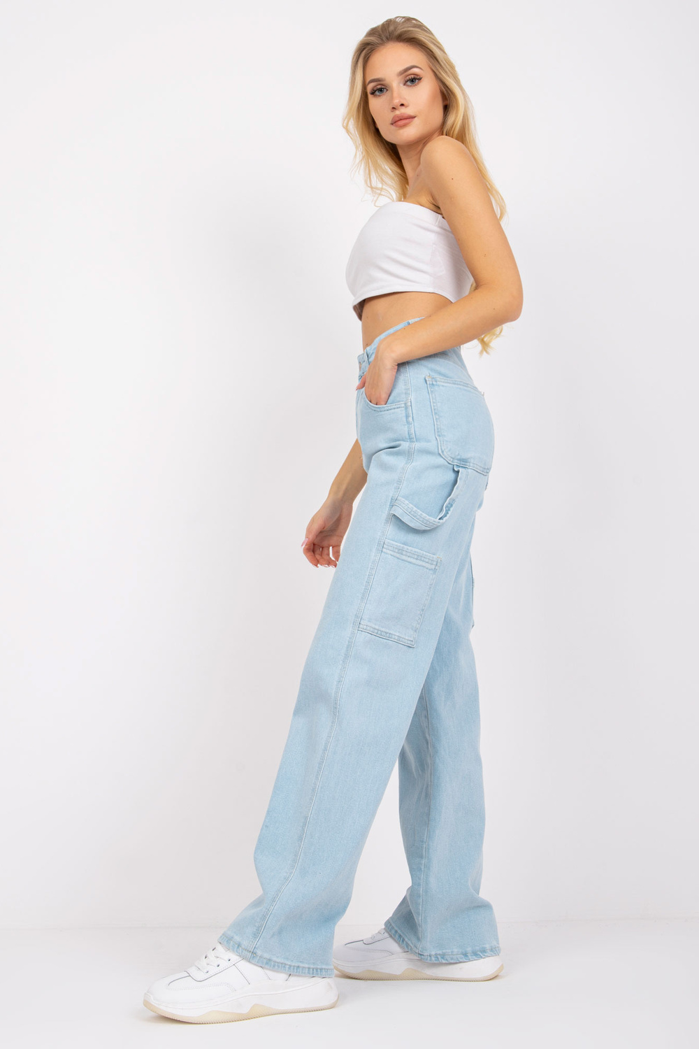 Jess šviesiai mėlyni moteriški džinsai aukštu juosmeniu.