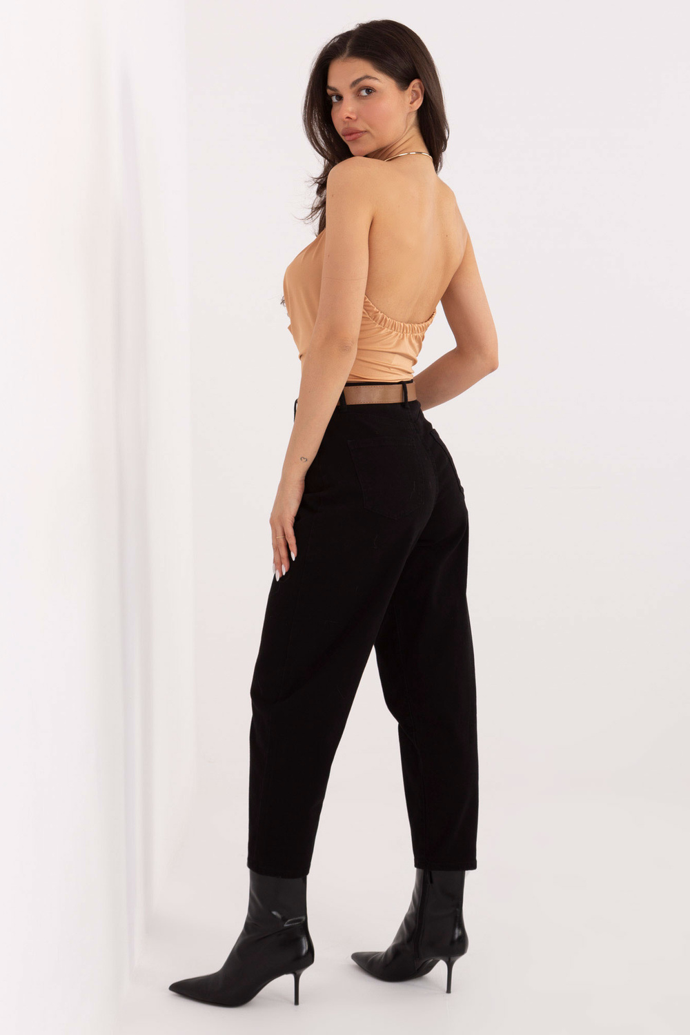 S dydžio kelnių matmenys: matuojant plokščiai: juosmens plotis – 34 cm, klubų plotis – 50 cm, liemens aukštis – 32 cm, bendras ilgis – 92 cm.