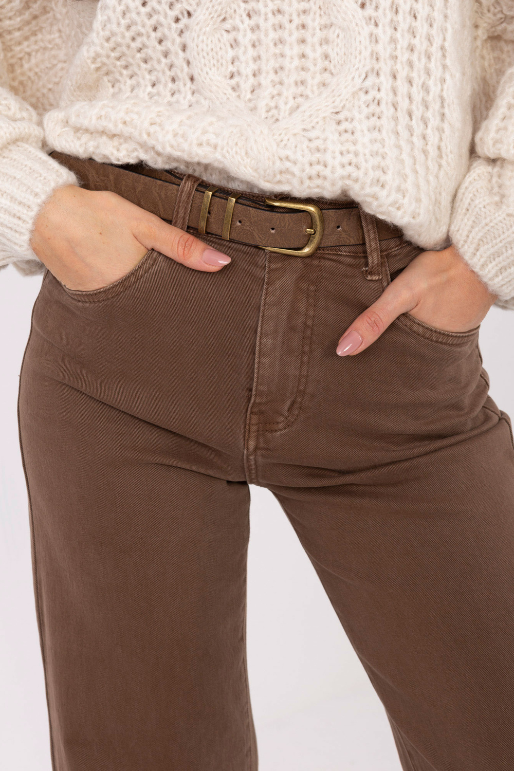 S dydžio kelnių išmatavimai: išmatuota gulint plokščiai: juosmens plotis – 34 cm, klubų plotis – 47 cm, liemens aukštis – 29 cm, bendras ilgis – 102 cm.
