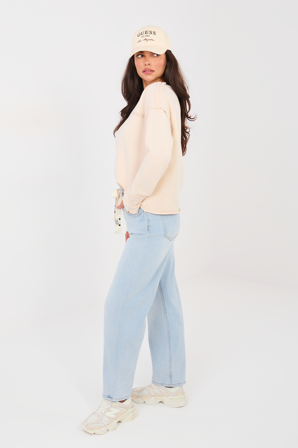 Modelis dėvi S dydį. Modelio matmenys: ūgis 173 cm, krūtinė 85 cm, liemuo 62 cm, klubai 95 cm.