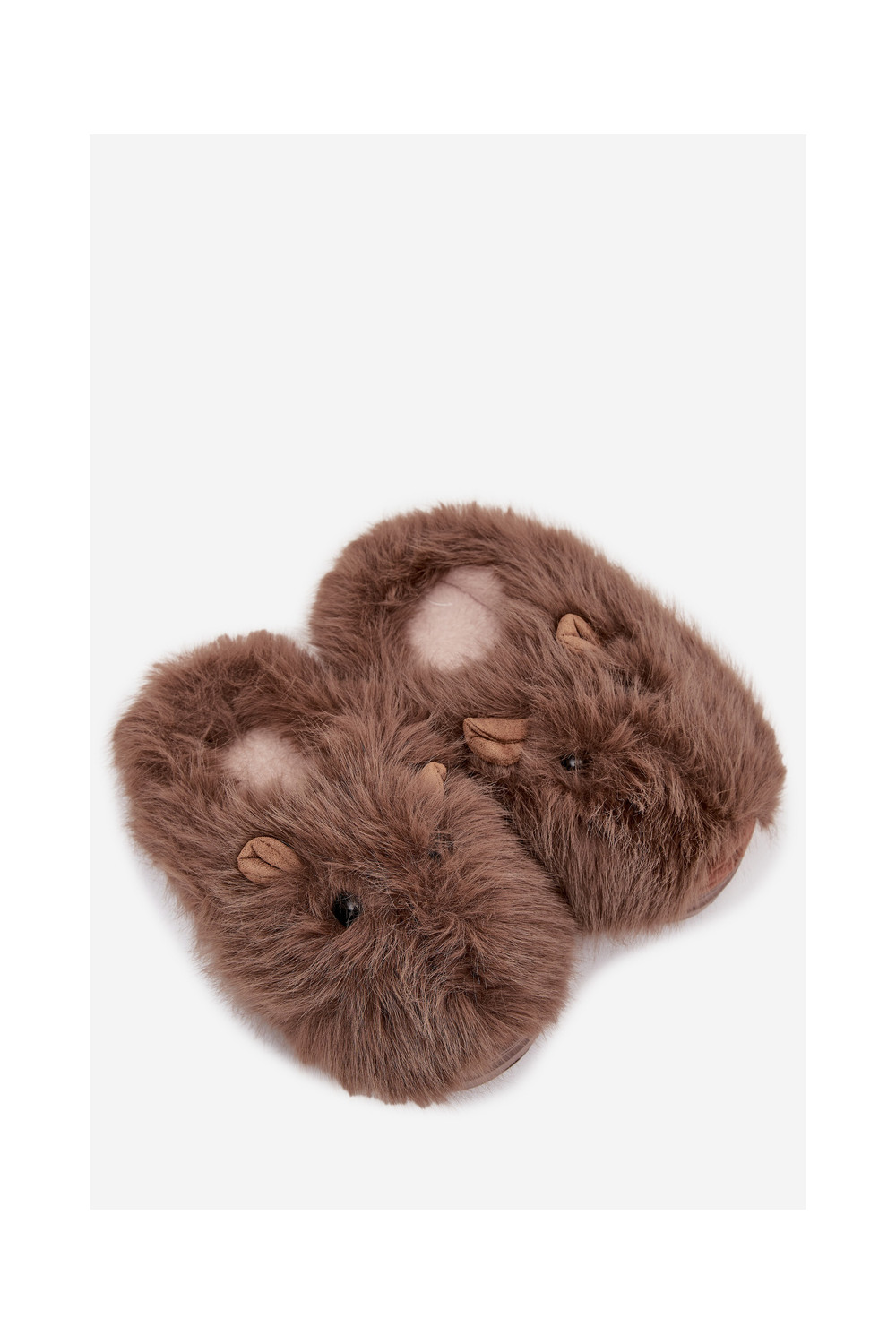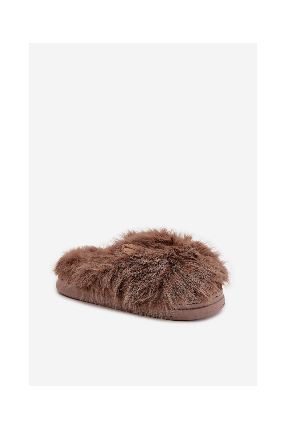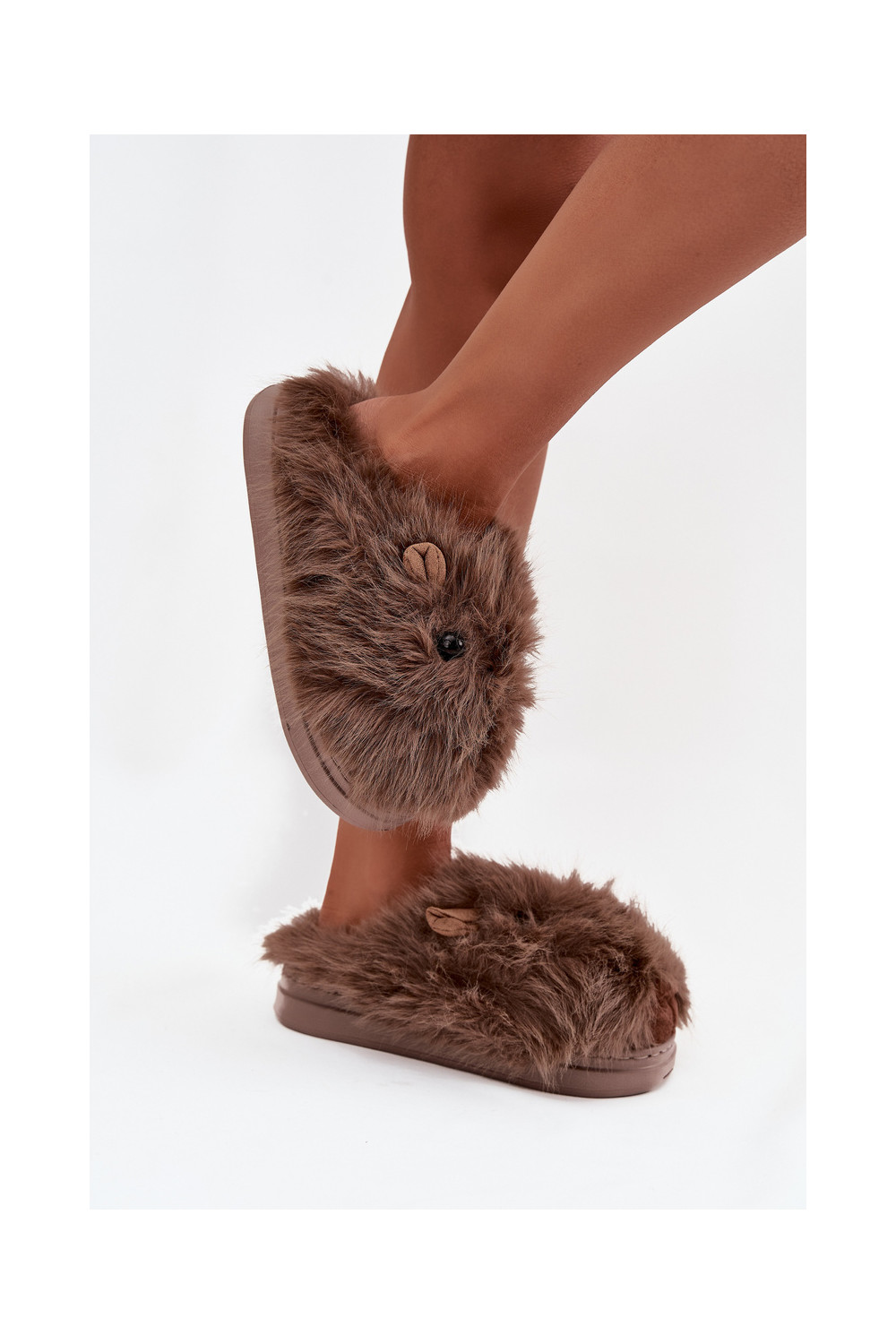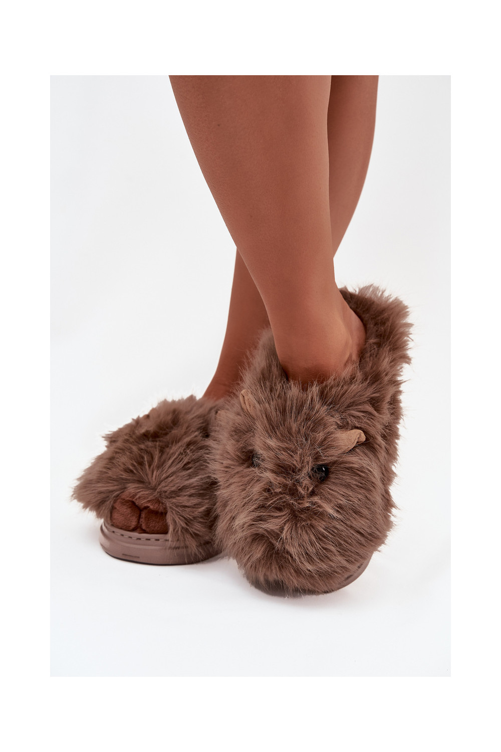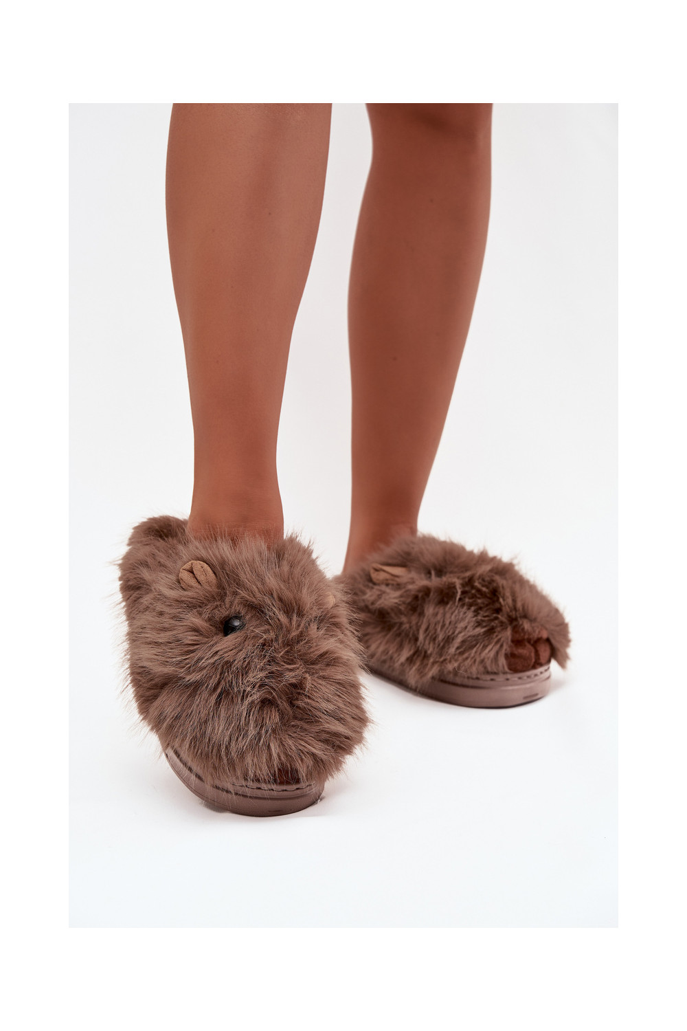 Rudos spalvos moteriškos kapibaros formos šlepetės su kailiuku „Pravelle"
