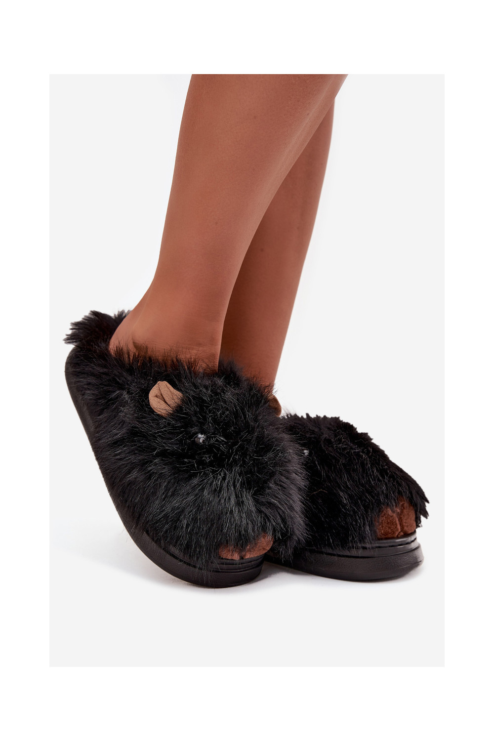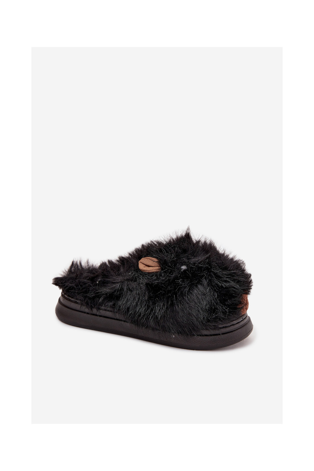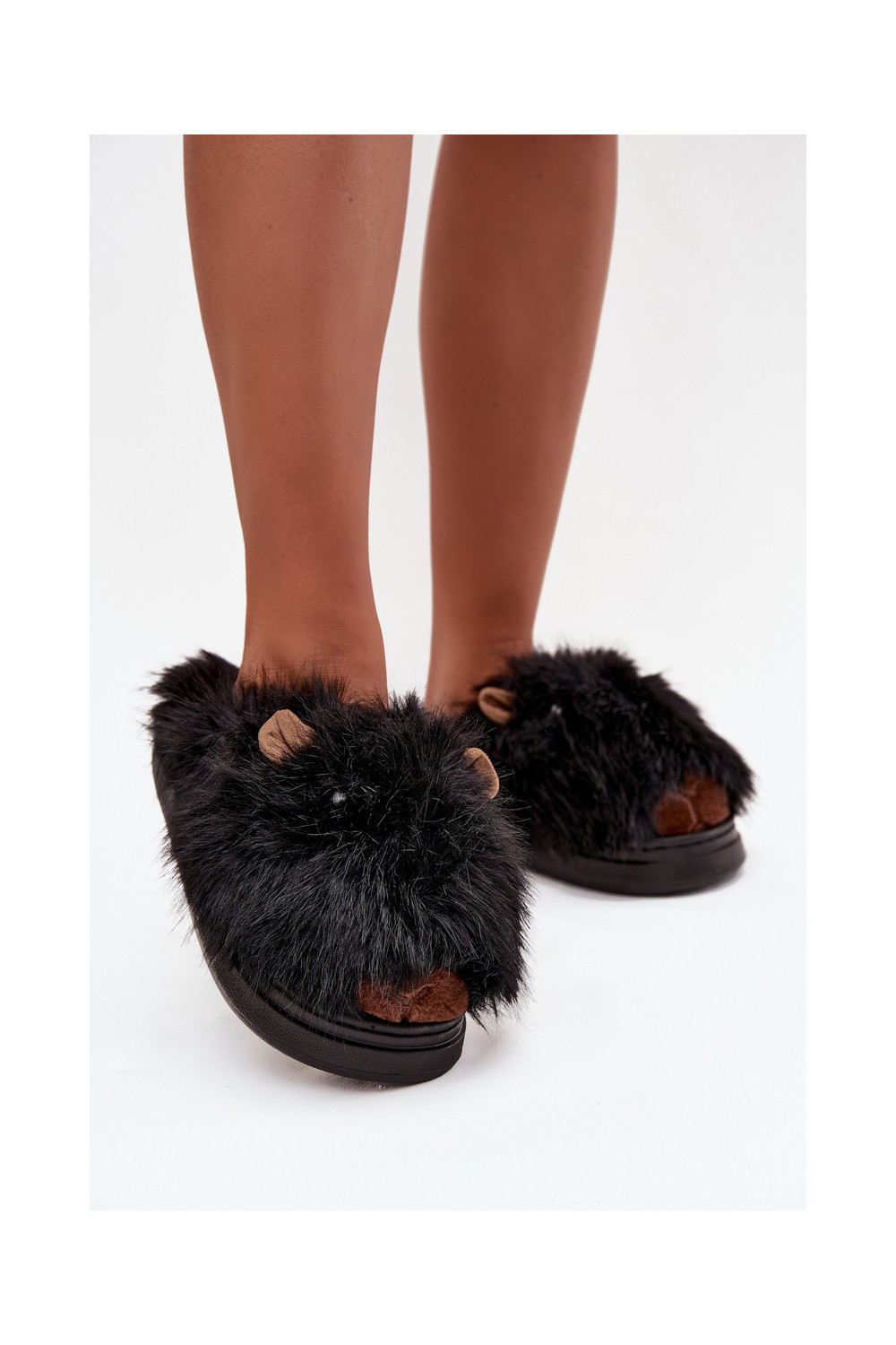 Moteriškos kailinės šlepetės „Pravelle" juodos spalvos