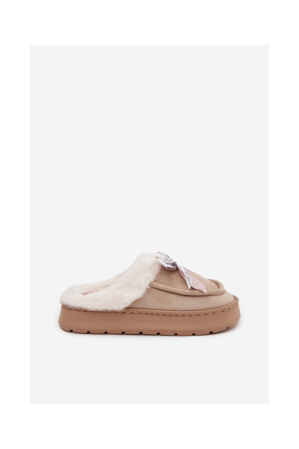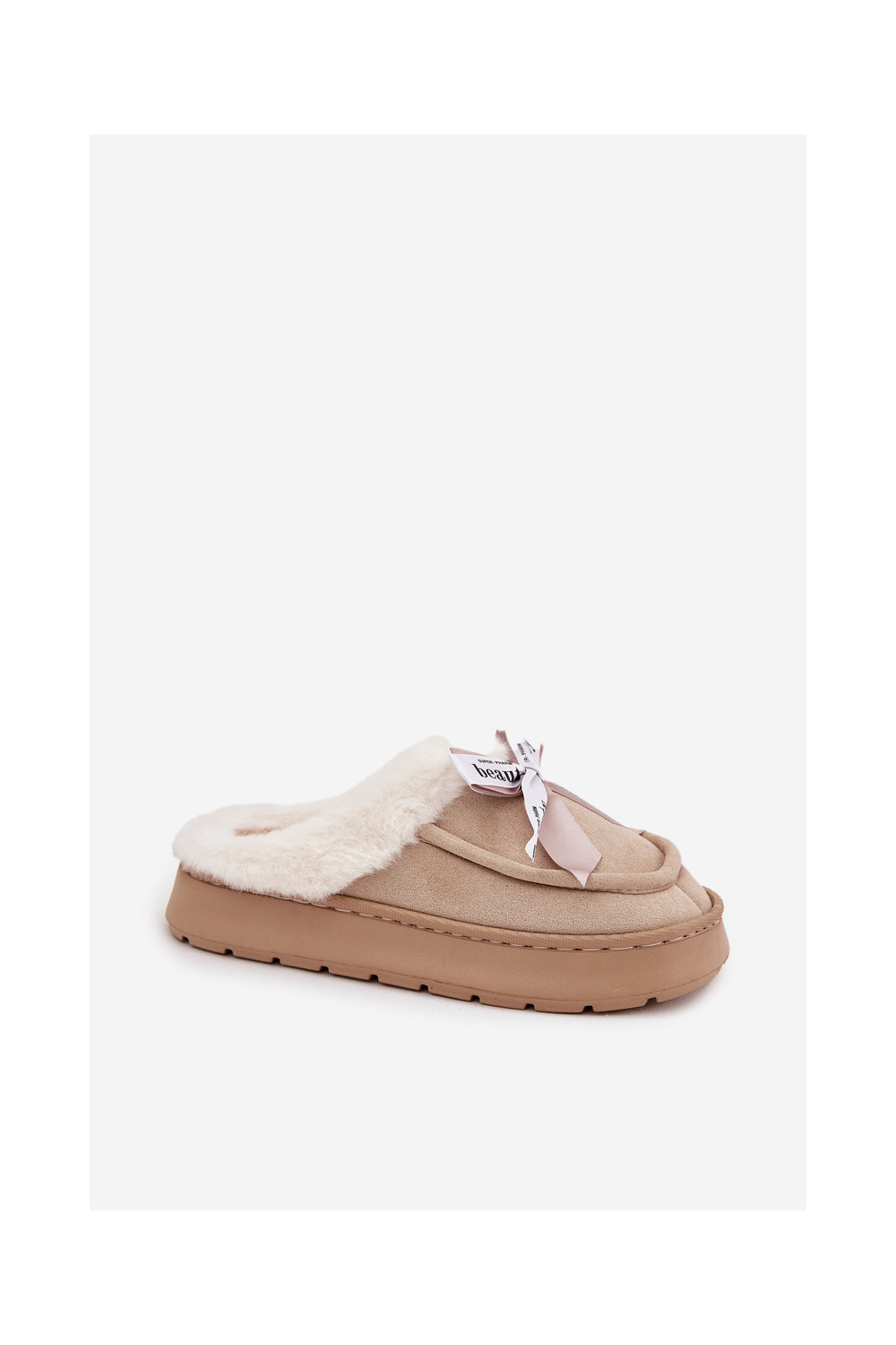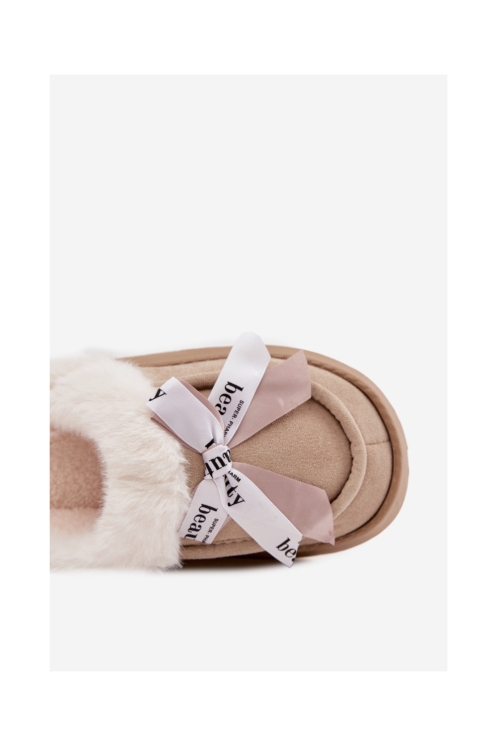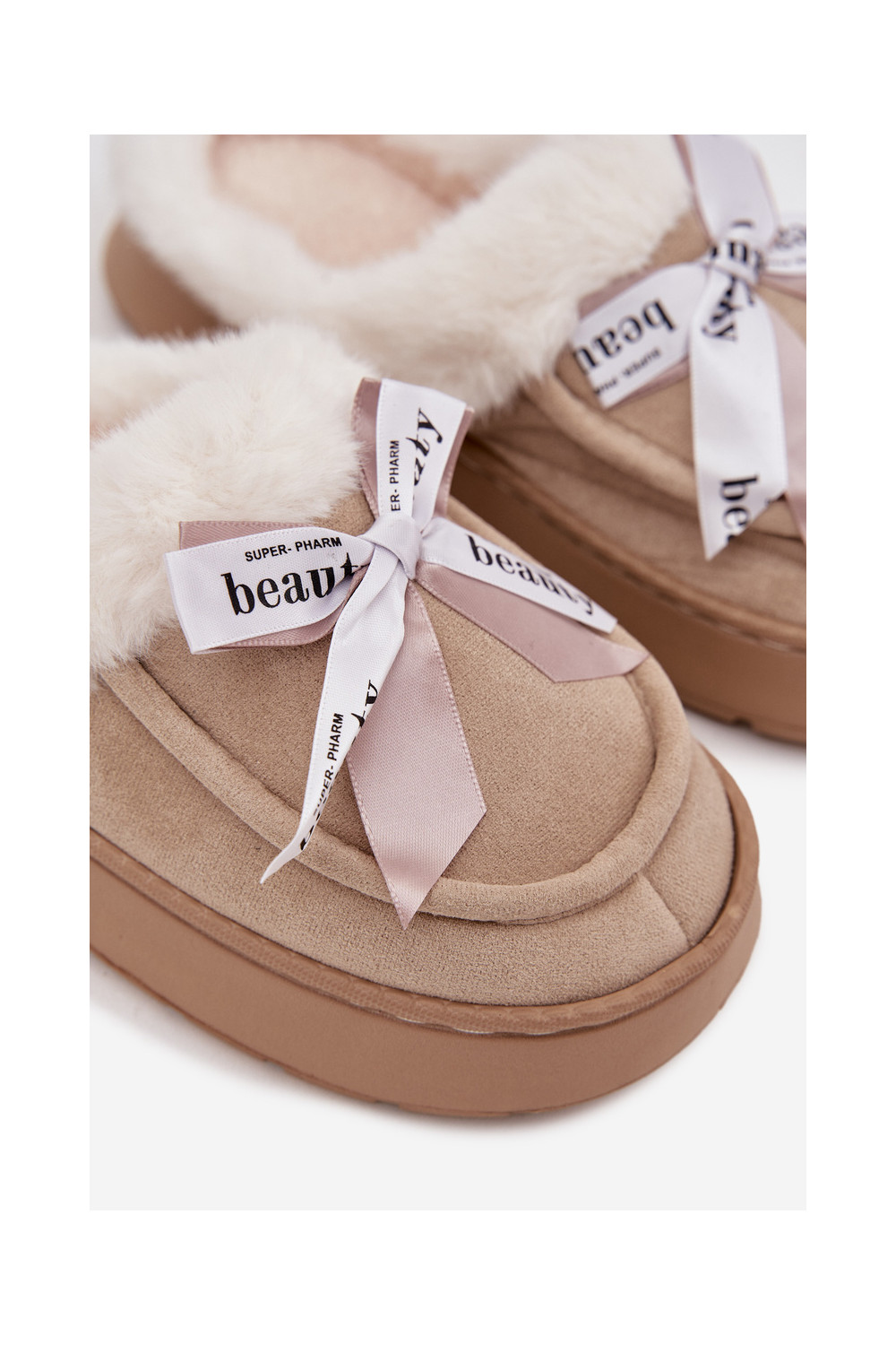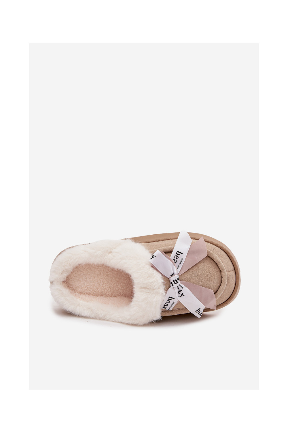 Moteriškos šlepetės su kailiuku ir kokarda, smėlio spalvos „Fenella"