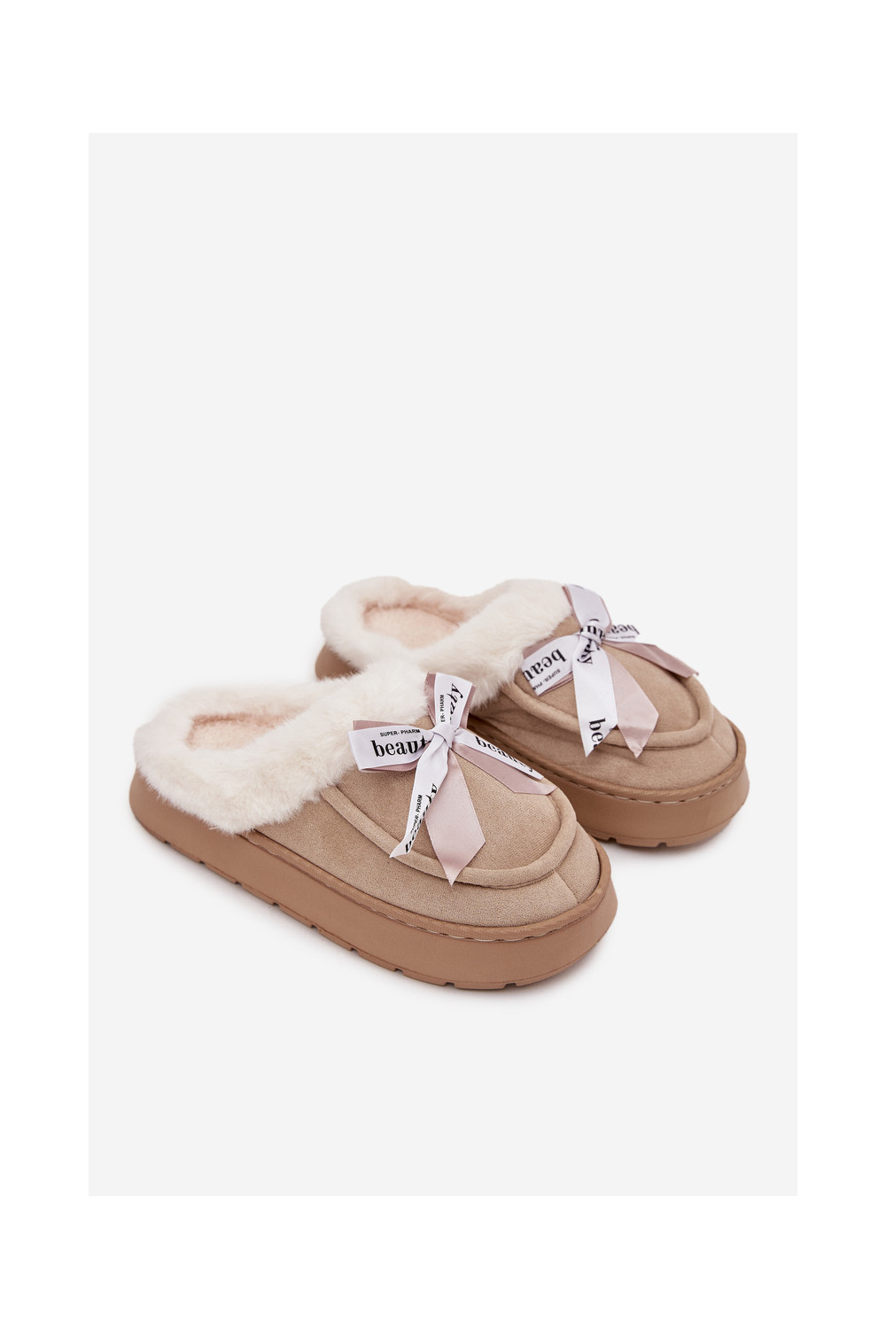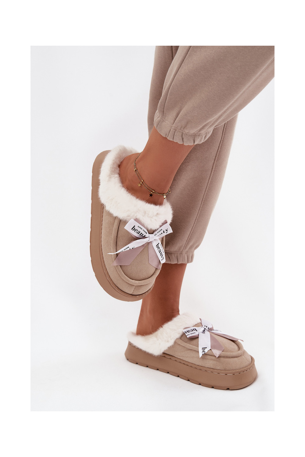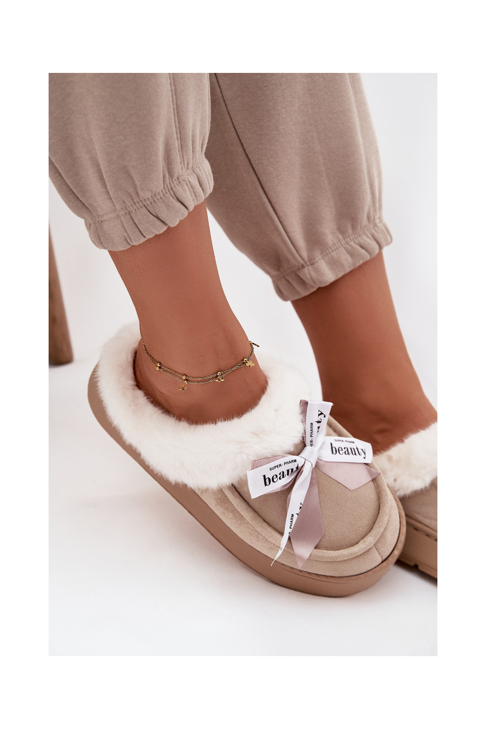 Moteriškos šlepetės su kailiuku ir kokarda, smėlio spalvos „Fenella"