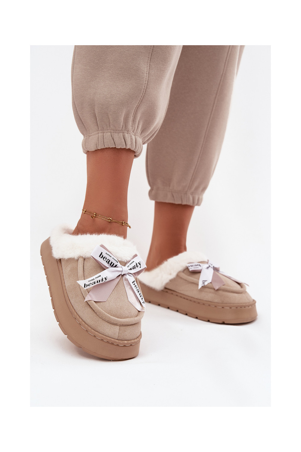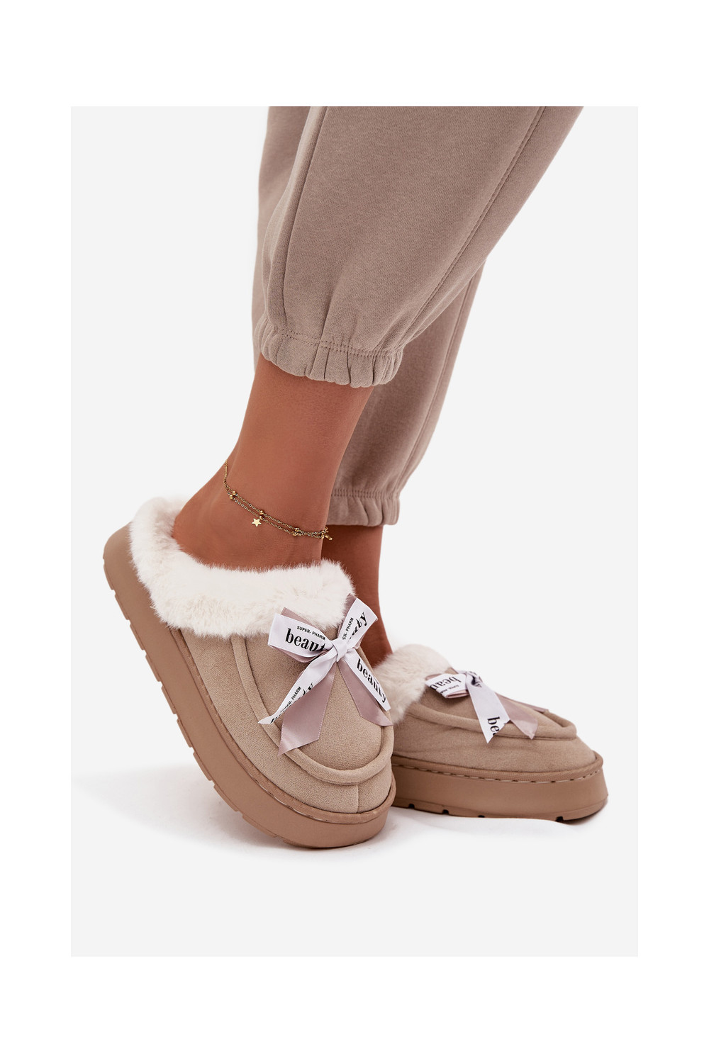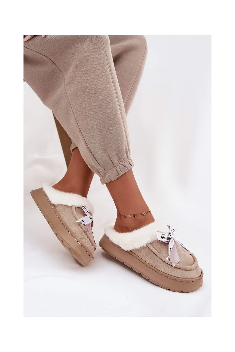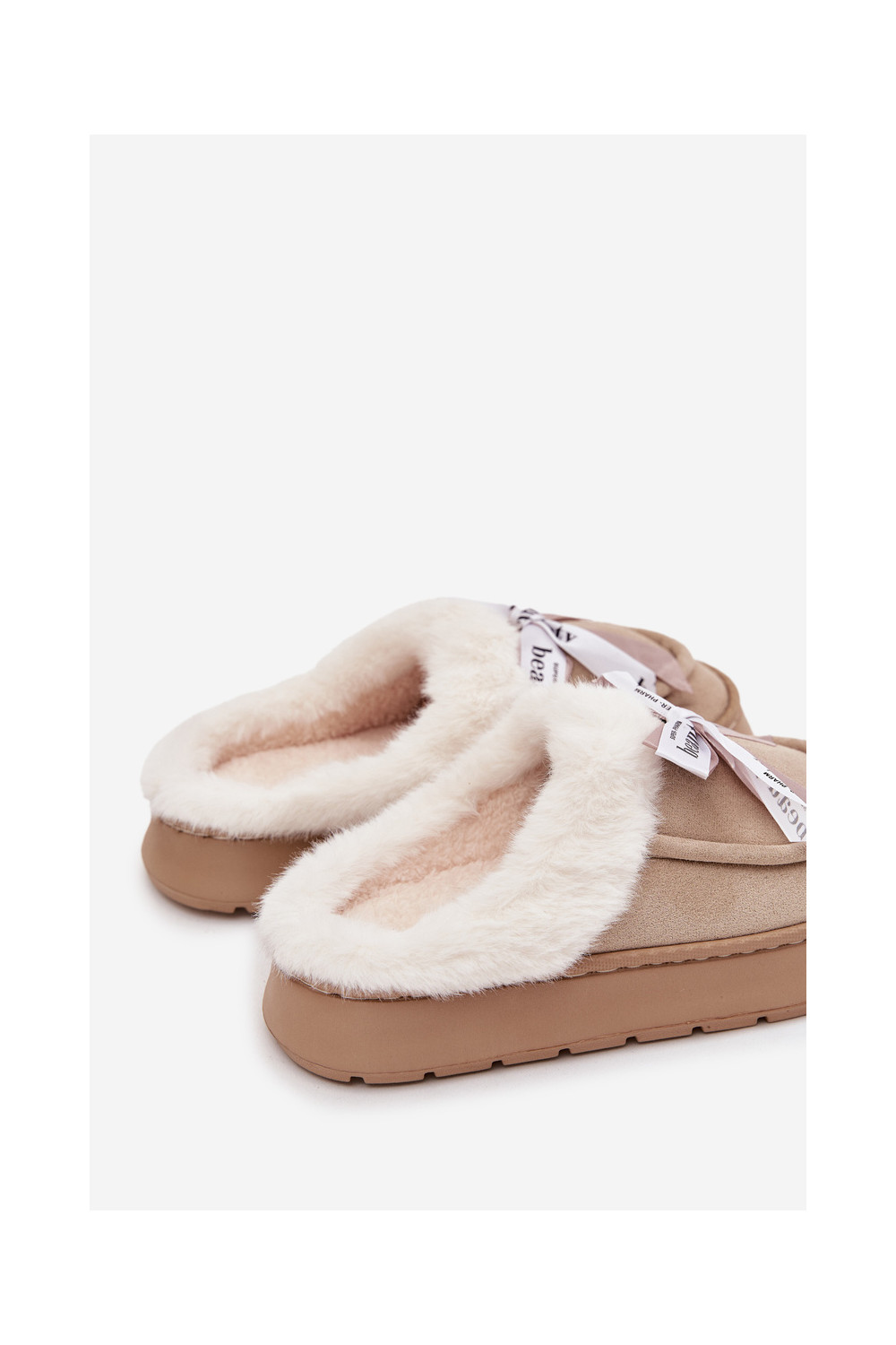 Moteriškos šlepetės su kailiuku ir kokarda, smėlio spalvos „Fenella"