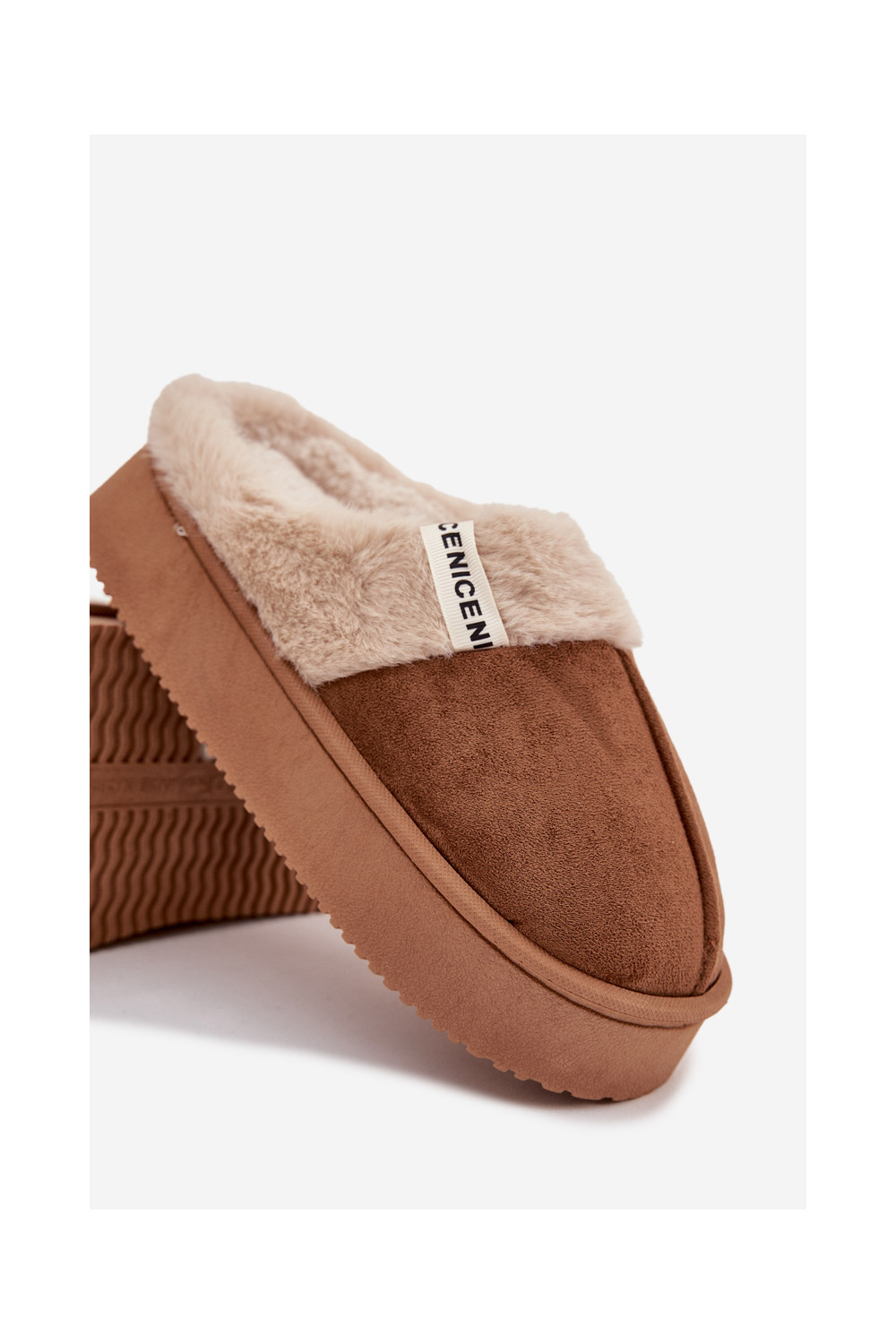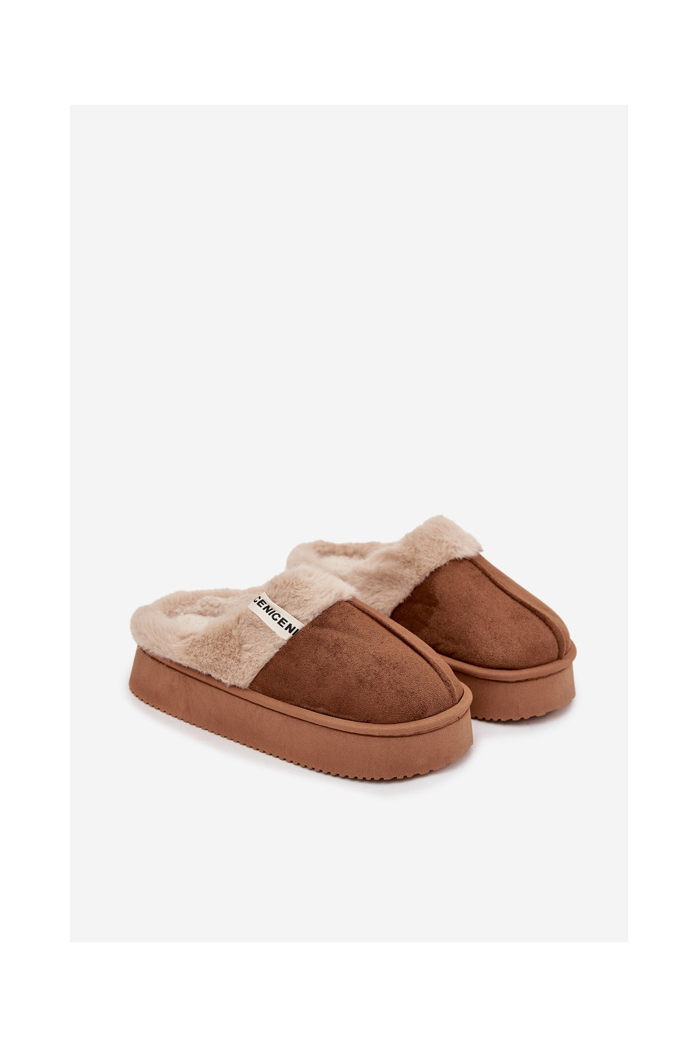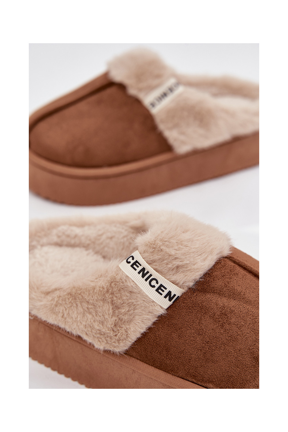 Moteriškos šlepetės su kailiuku, rudos spalvos „Parisse"