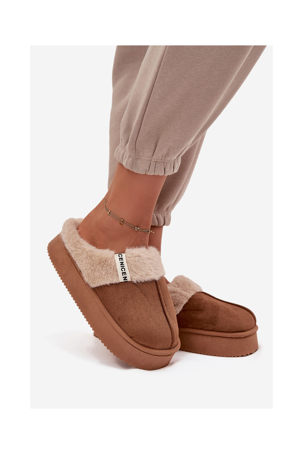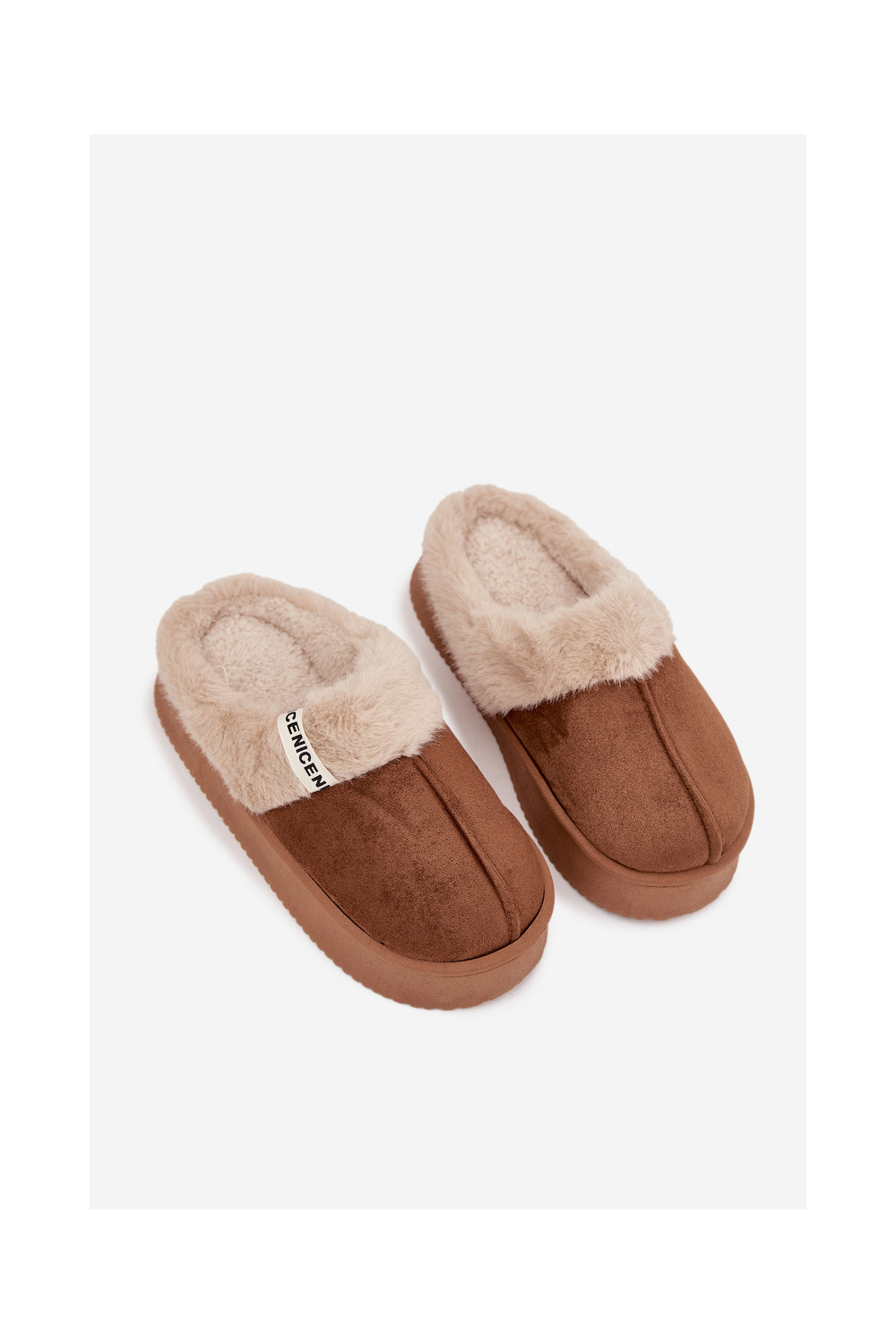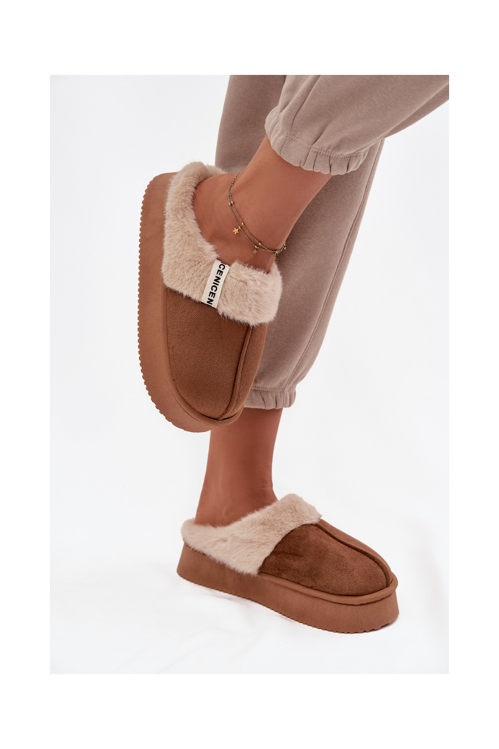 Moteriškos šlepetės su kailiuku, rudos spalvos „Parisse"