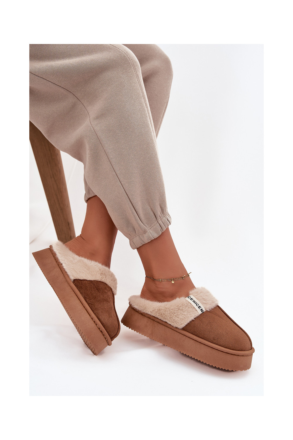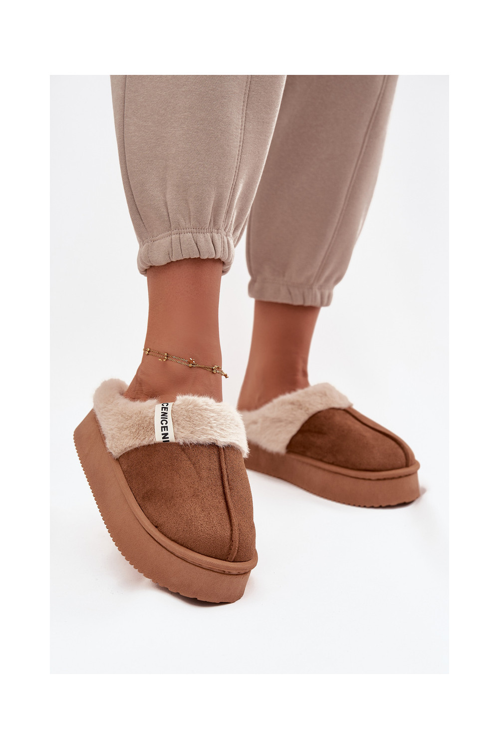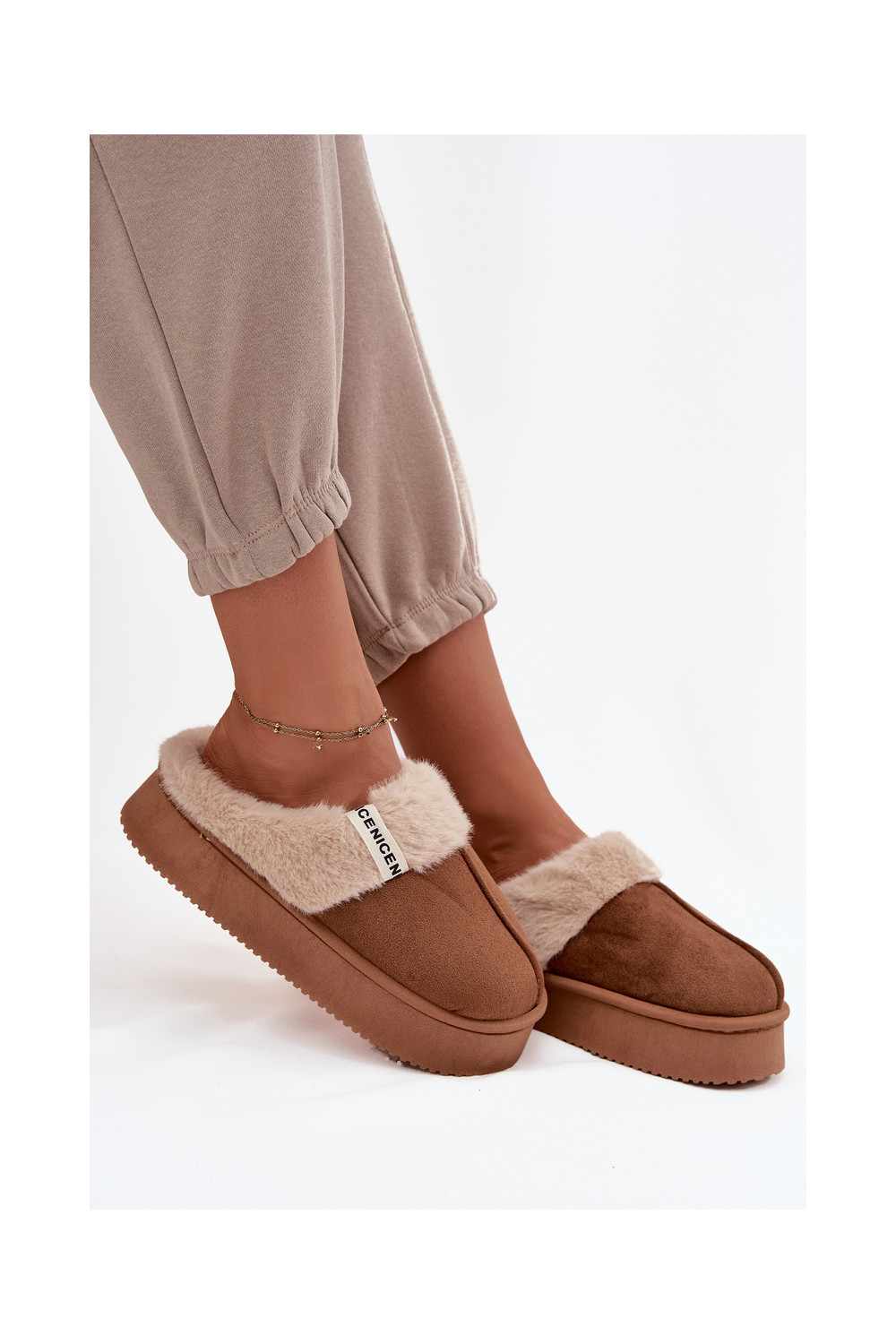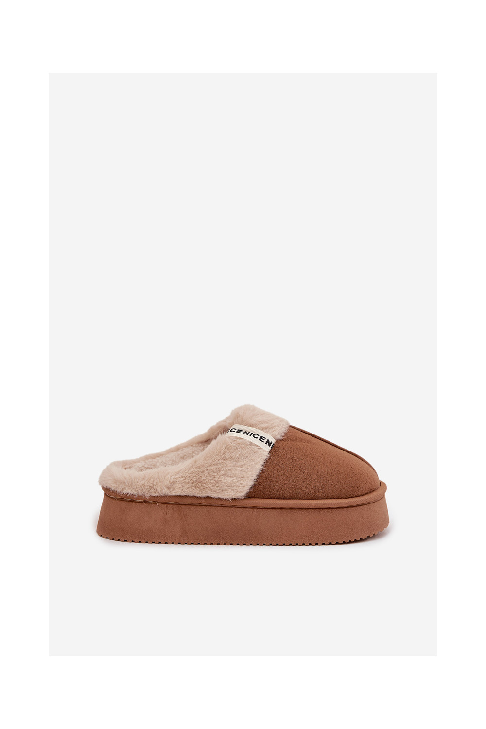 Moteriškos šlepetės su kailiuku, rudos spalvos „Parisse"