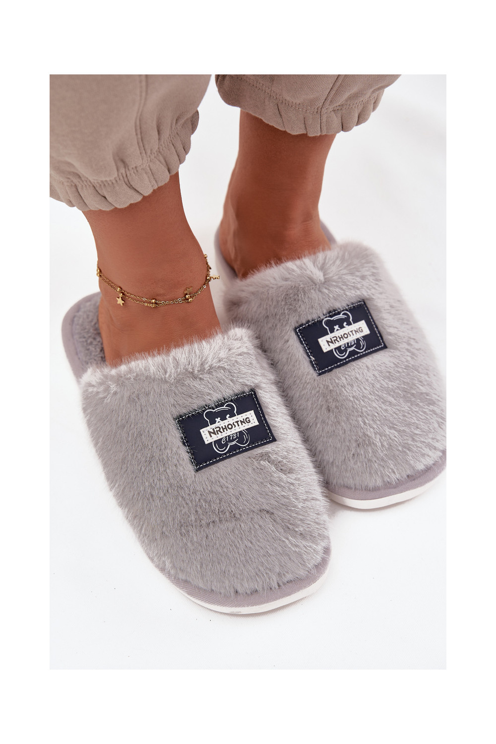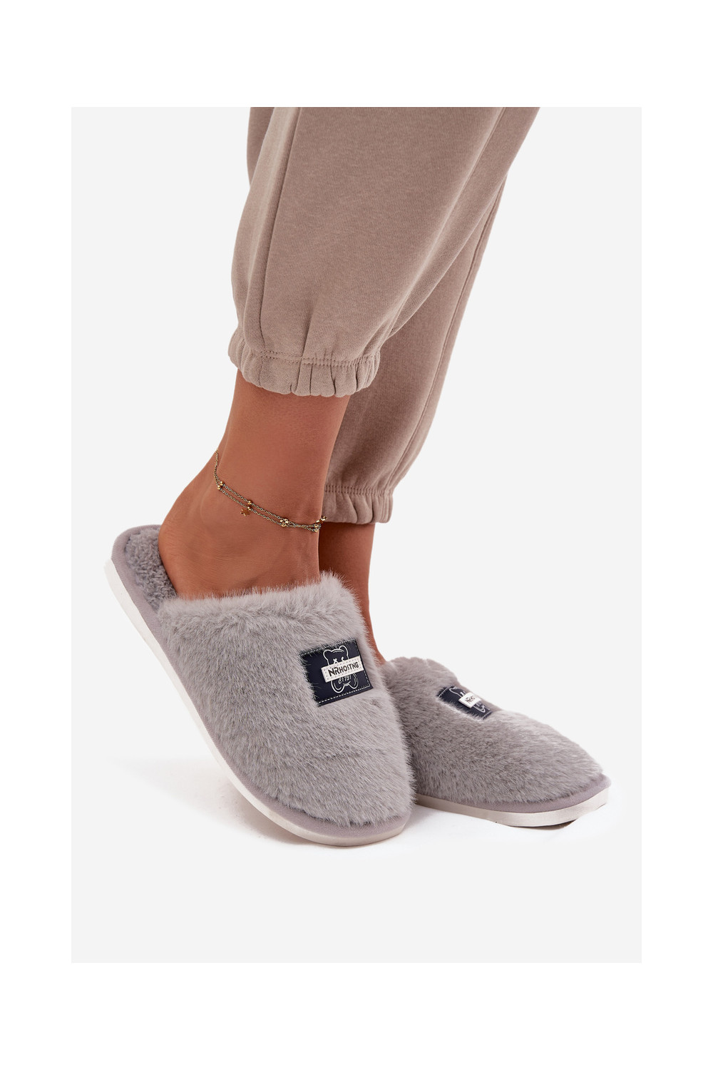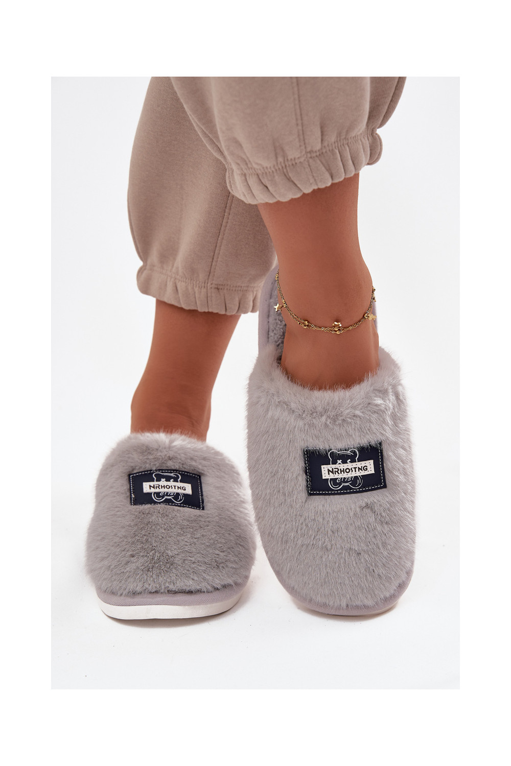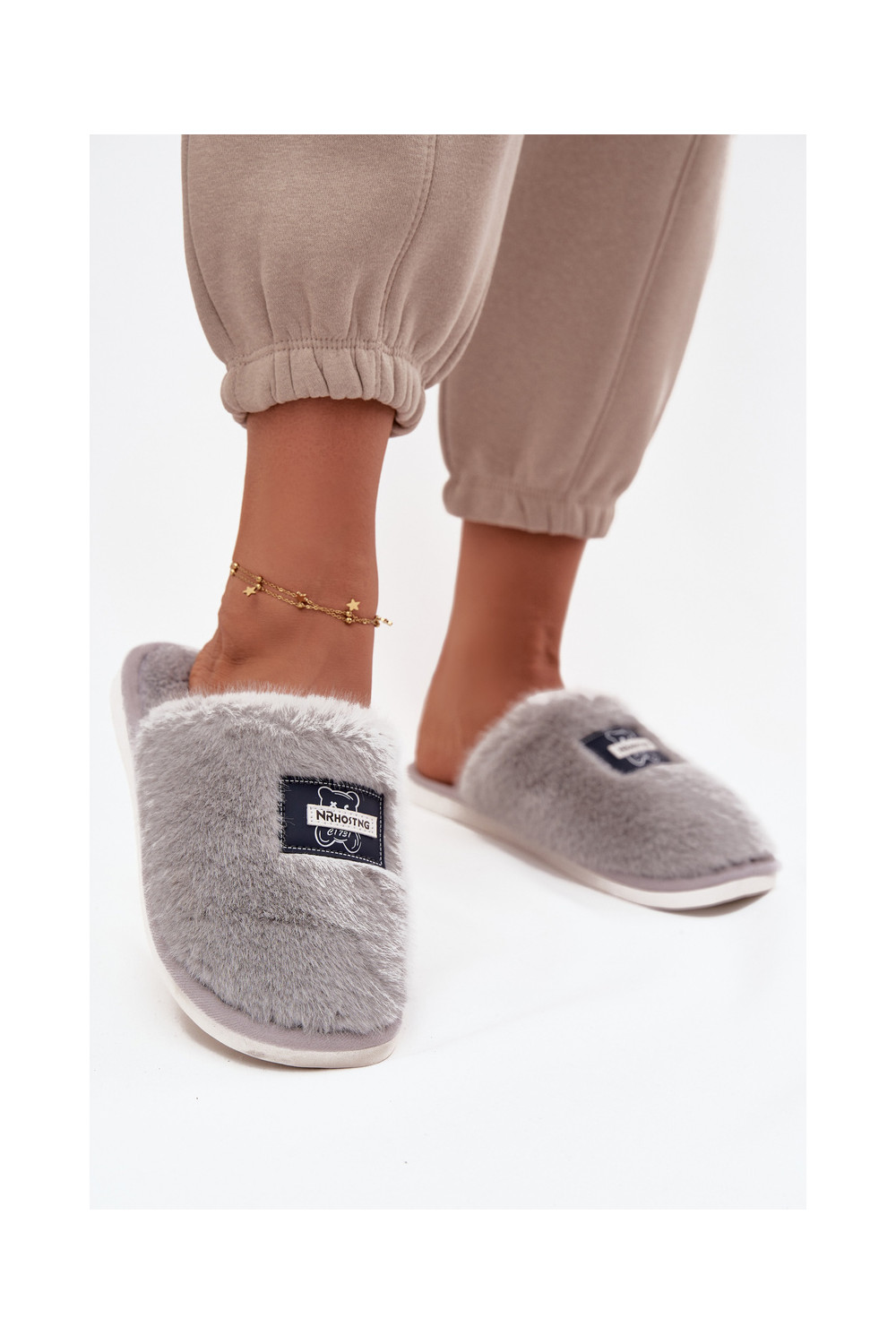 batai naminės Šlepetės Moteriškas su kailiuku pilkos spalvos Tai turielis